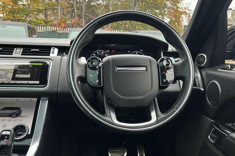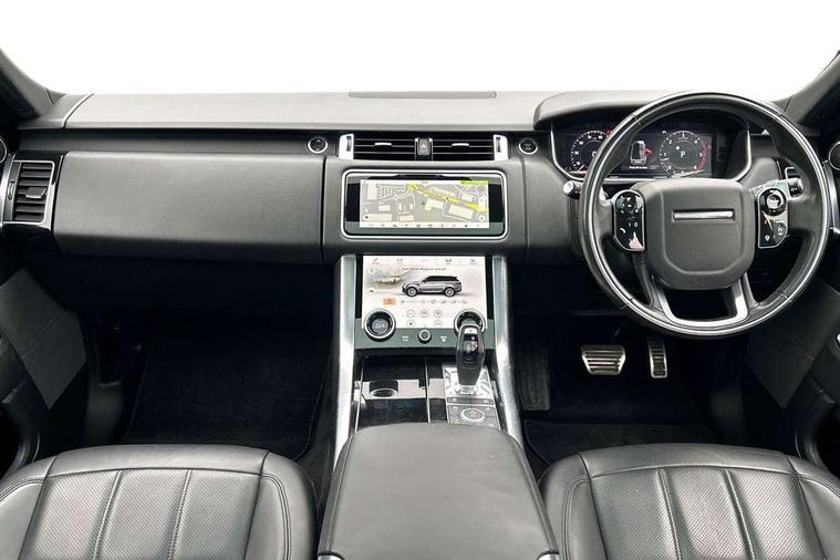 Grand black veneer, Black Exterior pack - Range Rover Sport, Smartphone pack - Range Rover Sport, Immobiliser, Intrusion sensor, Keyless entry, Locking wheel nuts, Perimetric and volumetric anti theft alarm, Remote locking, Bluetooth audio streaming, DAB Radio (Digital Audio Broadcasting), Incontrol protect - SOS emergency call with automatic collision detection, optimised assistance call and Incontrol remote app essential, USB/aux input socket, 3 point seatbelts on all seats, Anti-lock braking system (ABS), Brake pre-fill technology, Cornering brake control (CBC), Curtain airbags, Customer configurable autolock, DSC - Dynamic Stability Control, Dual stage driver/passenger airbags, EBD - Electronic brakeforce distribution, Electric parking brake, Electronic traction control, Emergency braking includes city, urban AEB and pedestrian, Front seatbelt pretensioners, Gradient acceleration control, Grey anodised brake calipers, Height adjustable front seatbelts, Hill descent control, Hill launch assist, Low traction launch, Passenger seat occupant detector with front airbags, Power operated child locks, Roll stability control, Seatbelt warning, TPMS (Tyre pressure monitoring system), Acoustic front and toughened rear side glass, Acoustic laminated front windows, Adaptive brake lights, Auto dimming interior rear view mirror, Automatic headlights, Body coloured side sills and bumpers corners, Electric windows with one touch open/close and anti trap, Electrical towing preparation, Follow me home lighting, Front and rear recovery eyes, Front fog lights, Headlight power wash, Heated rear window, Heated windscreen includes heated washer jets, Illuminated metal tread plates with brand name script, LED rear lamps, Privacy glass (Tinted glass rear of B pillar), Rain sensing windscreen wipers, Rear fog lights, Rear wash/wipe, Remote window closing, Side repeater indicators in mirror, Sport Badge in black, Standard bonnet, Trailer stability assist, Twin bright tailpipes, 2 way active front head restraints, 2 way rear head restraints, Auto air recirculation, Bright metal foot pedals, Centre console with armrest, Climate control memory, Customer configurable single point entry, Driver's footrest, Extended leather upgrade includes door top rolls and leather instrument panel mid section, Front and rear cupholders, Front door storage space, Front map lights, Front seat back map pockets, Front stowage pocket, Front/rear passenger grab handles, Heated steering wheel, Isofix child seat preparation, Leather steering wheel with Atlas inserts, Loadspace light, Loadspace mounting provisions, Lockable glovebox, Multifunction steering wheel, Perforated Windsor leather upholstery, Pollen filter, Power socket, Reach/rake electric adjustable steering column + entry/exit tilt away, Rear centre armrest, Rear ISOFIX, Roller blind loadspace cover, Satin chrome gearshift paddles, Sports pedals, Three 12V accessory power outlets, All Terrain Info Centre, Android Auto, Apple car play, Bluetooth connectivity, Electric power assisted steering (EPAS), Incontrol apps in vehicle touchscreen, Interactive Driver display instrument cluster, Mist sensor, Navigation pro system with 10" touch screen, app interface and media storage, Pro services and wifi hotspot, Push button start, Remote premium - Upgraded Incontrol remote app including remote climate control (engine dependent), remote lock + Unlock and remote beep + flash, TFT Virtual Instrument Panel, Touch pro duo system, Trip computer, Adaptive dynamics, All terrain progress control, Electronic active differential with brake torque vectoring, Electronic air suspension with dynamic response (active roll control), Engine cover, Gradient release control (GRC), Terrain Response 2 with dynamic program, Twin speed transfer box,