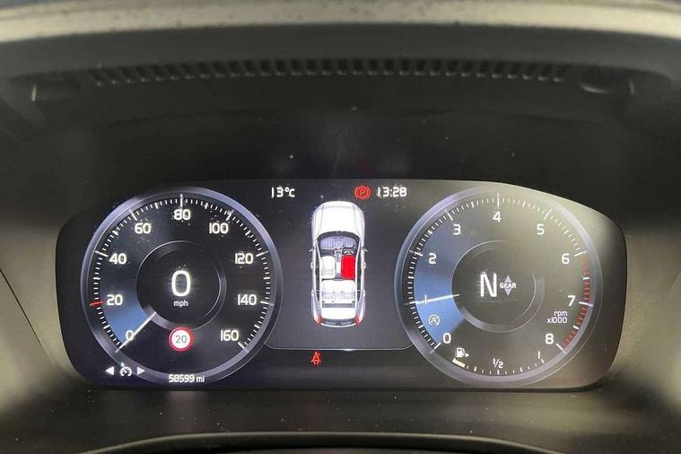 Cutting edge aluminium inlay, Anti-theft alarm including immobiliser/volume sensor + level sensor, Fuel flap with deadlocking system, Key integrated remote control central locking, Locking wheel nuts, Private locking, DAB Digital radio, Steering wheel mounted remote controls, ABS/EBD, City safety, Drivers knee airbag, DSTC-Dynamic Stability and Traction Control, Dual stage driver/passenger airbags, EBA, Electronic parking brake with auto hold, Fasten seatbelt reminder, First aid kit, Front seat side impact airbags, Hill descent control, Hill start assist, Inflatable curtain, Passenger airbag cut-off device, Road sign information display, Run off Road Mitigation, Run off Road Protection, Seatbelt pre-tensioners, Side impact protection, Tyre pressure monitoring system, Warning triangle, WHIPS whiplash protection system - front, Adaptive brake lights, Auto dimming interior mirror, Automatic headlamp levelling, Black stone door mirrors, Black stone roof, Dark tinted glass for rear windows + rear screen + side luggage area window, Dual integrated exhaust pipes with high gloss black surround, Electrically adjustable and heated door mirrors, Embossed rear side roof pillar, Front and rear electric windows, Front tread plates, High gloss black front and rear skid plate, High gloss black lower front bumper, High gloss black mesh grille, High gloss black roof rails, High gloss black window trim, Home safe and approach lighting, LED front fog lights, LED Headlights + Active high beam incorporating daytime running lights, Rain sensor windscreen wipers, Rear wiper, Roof antenna, Roof spoiler, Visible VIN plate, 12V socket in front tunnel console, 2 zone electronic climate control with air quality system, 3 spoke leather steering wheel with chrome trim, 60/40 split folding rear seat, A-pillar parking ticket holder, Ambient lighting in door panels, Black headlining, Bright metal luggage threshold, Centre console cupholders, Centre console storage box, Contour sports seats with leather/nubuck upholstery, Cooled glovebox, Courtesy lights, Driver's lower storage shelf, Extended front seat cushions, Front and rear headrests, Front door pockets, Front footwell illumination, Front/rear reading lights, Glovebox bag hook, Glovebox illumination, Height adjustable drivers seat with lumbar support, Height/reach adjustable steering column, Illuminated driver/passenger vanity mirrors, Illuminated front cupholder, Illuminated luggage compartment, Illuminated tailgate, Isofix attachments on rear seats, Multicolour theatre lights, Passenger seat adjustable for lumbar support, Perforated leather gearknob, Perforated Leather Key Integrated Remote, Perforated leather steering wheel, Pollen filter, Rear armrest / integral cup holders / storage tray, Sports pedals, Underfloor stowage compartment, 12.3" Active TFT crystal driver's instrument display, 9" Touch screen, Adjustable steering wheel force, Bluetooth hands free telephone kit, Drive mode selector, Lane keep assist with driver alert control, Oncoming Lane Mitigation, Sensus navigation system, Speed limiter, Speed sensitive steering, Voice control system, Volvo on call,