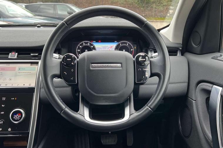 Online pack - Discovery sport, Battery Back Up System (BBUS) with tilt sensor, Intrusion sensor, Locking wheel nuts, Bluetooth connectivity including audio streaming, Digital Audio Broadcast radio-DAB, Steering wheel mounted audio controls, 3 point seatbelts on all seats, ABS, Brake hold function, Collision mitigation braking system, Cornering brake control (CBC), Driver/Front Passenger airbags, Drivers knee airbag, Electronic brake force distribution, Electronic parking brake, ESP + traction control, Hill descent control, Hill launch assist, Pedestrian airbag system, Roll stability control, Side and curtain airbags for front and 2nd row seats, Tyre pressure monitoring system, Automatic headlight levelling, Door mirror memory, Electric front/rear windows, Power fold, auto-dimming, heated door mirrors with approach lights, Rain sensing windscreen wipers, Rear wiper, Front passenger isofix child seat attachment, Illuminated vanity mirrors, Rear headrests, Third row dual adjustable individual seats, Tilt/reach adjustable steering wheel, Android Auto, Apple CarPlay, Blind spot assist, Connected navigation pro, Driver condition monitor, InControl remote premium, Interactive driver display, Lane keep assist, PAS, Powered tailgate/boot lid, Service interval indicator, Traffic sign recognition with adaptive speed limiter, Trip computer, All terrain progress control, Coil suspension system, Diesel particulate filter, Terrain Response 2,