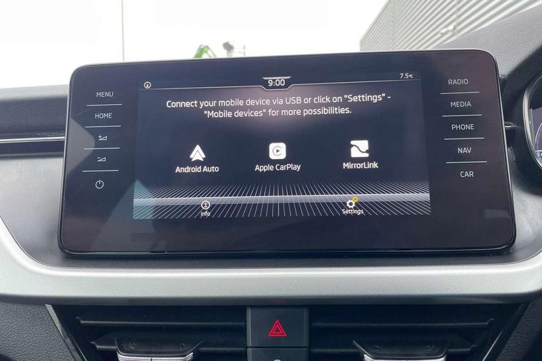 Alarm with interior monitoring, back up horn and tilt sensor with safe function and towing protection, Anti-theft wheel bolts, Immobiliser, Remote central locking with SAFE system, 2 USB - C ports with 1x adaptor cable, Auxiliary input socket, DAB Digital radio, 3x3 point rear seatbelts, Airbags - driver and front passenger, ESP, Front passenger airbag deactivation switch, Front side airbags with curtain airbags, Hill hold control, Manual parking brake, One tone horn, Rear disc brakes, Seatbelt reminder for driver an co-driver, Traction control, Tyre pressure monitor, Auto dimming rear view mirror, Body colour bumpers, Body colour door mirrors and handles, Chrome grille surround, Electric folding door mirrors, Electrically adjustable and heated door mirrors, Front and rear electric windows, Headlight range control, Heated rear window, High functionality rear led lights with dynamic indicators, Privacy glass, Rear fog lights, Rear wiper, 12V Accessory socket in centre console, Chrome inner door handles, Dual zone climate control, Front gesture control, Front head restraints, Glove compartment with illumination, Ice scraper, Isofix child seat fittings on outer rear seats, ISOFIX on front passenger seat, Manual lumbar support for front seats, Pollen filter, Rake/reach adjustable steering wheel, Reading lights for driver and front passenger, Sun visor with make up mirror for front passenger, Textile floor mats, Third rear headrest, Top tether for front passenger seat, Umbrella in driver's door, Amundsen satellite navigation with 9.2" touchscreen display, voice control, virtual cockpit and web radio, Bluetooth system, E-call, Front assist system, Lane assist, PAS, Service indicator, Speed limiter, Trip computer, Virtual cockpit with 10.25"display, Wireless SmartLink for apple car play, android auto and mirrorlink,