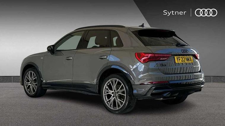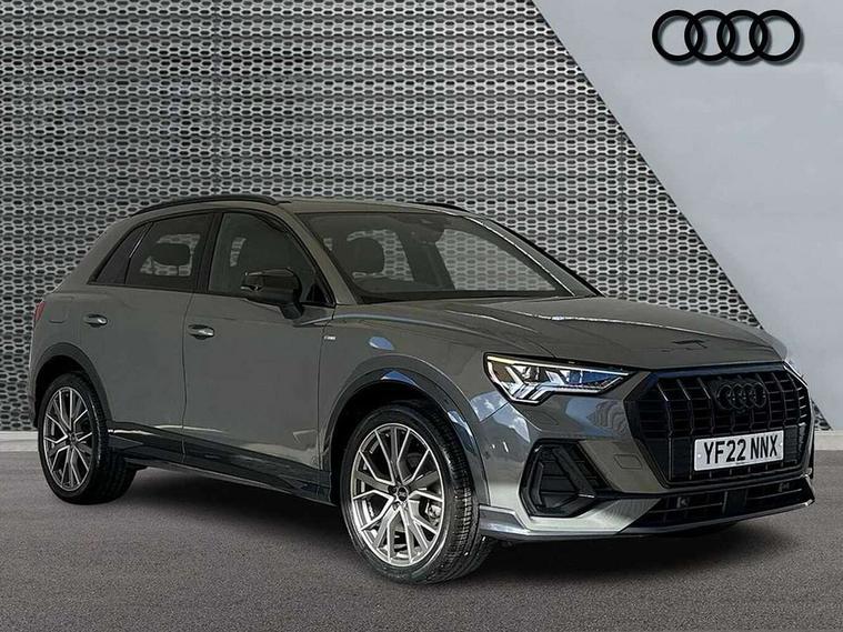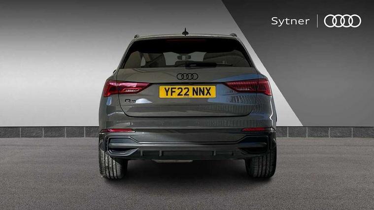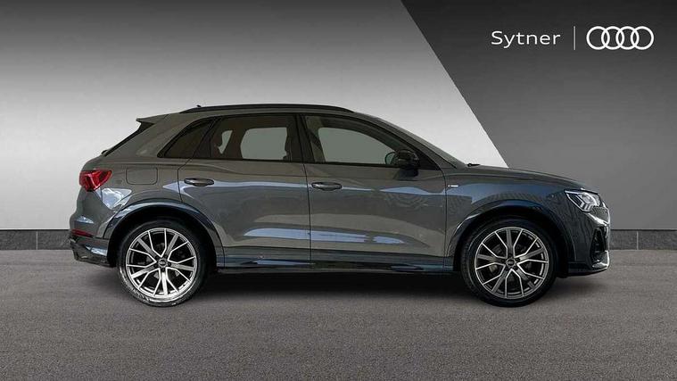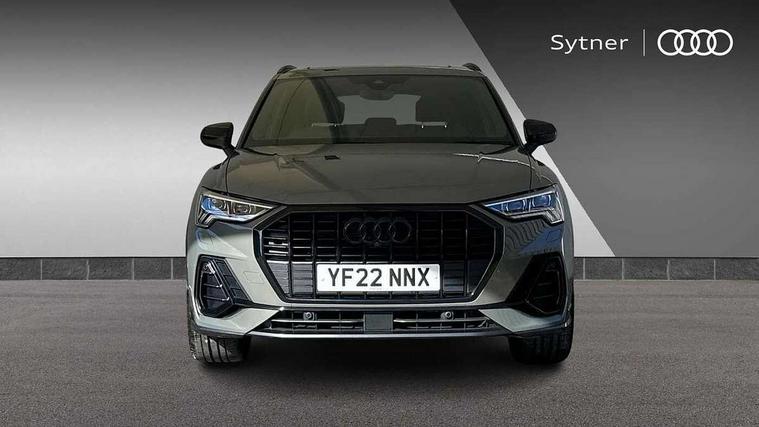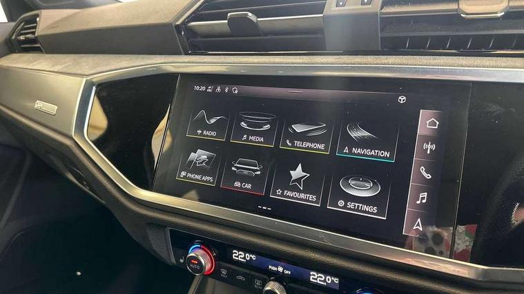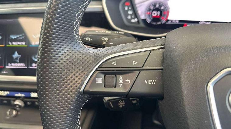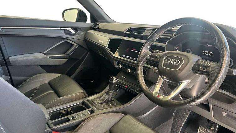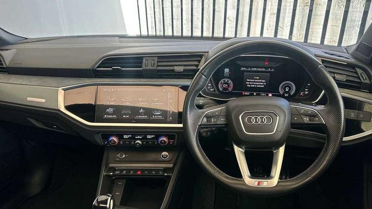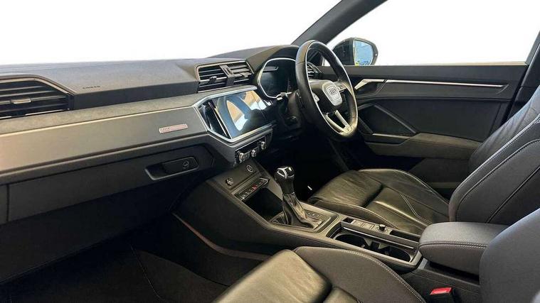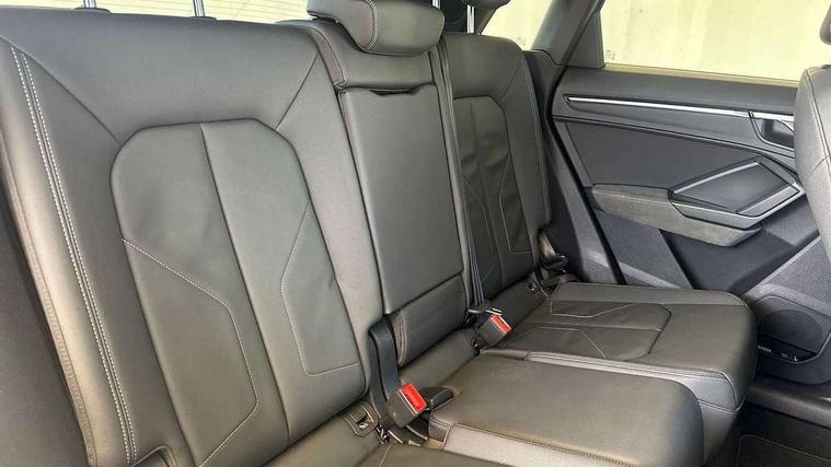 Leatherette door armrest, MMI touch colour display in glass look, black with surround in aluminium look, Black styling pack - Q3 vorsprung, Driver Assistance Pack - Q3, Multi coloured extended ambient interior lighting pack - Q3, Non smoking pack - Q3, Advanced key, Anti theft alarm, Anti theft wheel bolts, Audi pre-sense front with pedestrain and cyclist recognition, Remote central locking, 2 USB-C ports with charge and data functions, DAB digital radio module, SONOS premium sound system, 3x3 point rear seatbelts, 6 airbags - Driver, front passenger, curtain and side windows, Electrically operated child locks on rear doors, Electromechanical parking brake, Electronic stabilisation control including ABS, ASR and EDL, Hill descent control, Hill hold assist, Pre sense basic, Seatbelt monitoring, Tyre pressure warning, Warning triangle and first aid kit, Acoustic windscreen, Audi Beam uses LEDs to project Vorsprung logo, Auto dimming door mirrors, Auto dimming frameless rear view mirror, Black roof rails, Electrically folding, adjustable and heated door mirrors with integrated LED side indicators and kerb view function for passenger side, Front and rear electric windows, Front fog lights, Grille vertical bars in aluminium silver/Matt, Headlight washers, High gloss black finish B and C pillars, LED daytime running lights, Matrix LED headlights with LED rear lights and dynamic front and rear indicator, Panoramic opening glass sunroof, Privacy glass dark tinted rear and rear-side windows (from B-pillar backwards), Rain and light sensors, Rear diffuser strip in matt titanium black, Rear side wing doors, Rear wiper, S line bumpers in contrasting Manhattan grey, Third brake light, 12V socket in rear centre console, 3 seat bench in 2nd row, 3-spoke design with leather multifunction plus and gear shift paddles features S badging and grips in perforated leather with contrast stitching, 4 way electric lumbar support for driver and front passenger, 40:20:40 folding with manual adjustment for 60:40 forwards/backwards position and backrest angle, Adjustable rear seat bench/backrest with centre armrest and cupholder, Black cloth headlining, Dual zone electronic climate control, Electrically adjustable front seats, Front and rear black floor mats with contrast stitching in rock grey, Front and rear headrests, Front and rear roof module including reading lights, Front centre armrest, Glove compartment lighting, Heated front seats, Height and reach adjustable steering wheel, Illuminated door sill trims with S logo, ISOFIX child seat mounting for front passenger with airbag deactivation and outer rear seat including top tether attachment point for outer rear seats, Luggage compartment light, Perforated leather gearknob, Single front passenger seat, Stainless steel luggage compartment sill finisher, Stainless steel pedals, 360 degree parking camera, Amazon alexa Integration, Audi connect safety and service (e-call), Audi drive select, Audi lane departure warning, Audi phone box with wireless charging, Audi smartphone interface includes wireless Apple carplay/Android Auto, Audi virtual cockpit plus, Bluetooth interface, Camera based traffic sign recognition, MMI Navigation Plus with high resolution 10.1 inch touchscreen colour display, Power operated tailgate, Progressive steering, Rear cross traffic assist, Service interval indicator, Start stop system with recuperation, Voice control system with natural language interaction, Adaptive suspension with damping control, Diesel particulate filter,