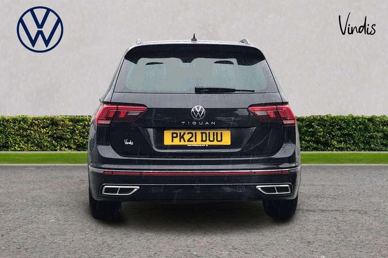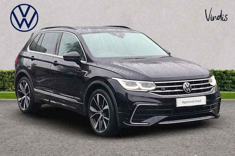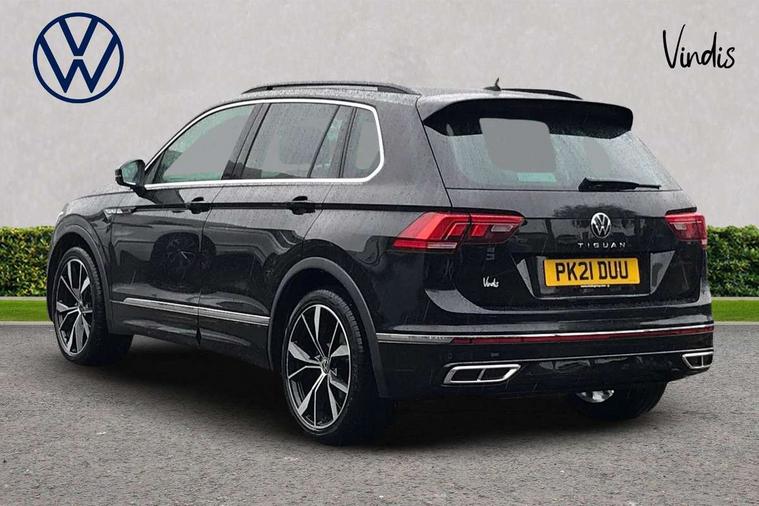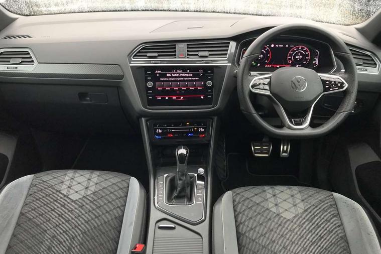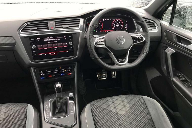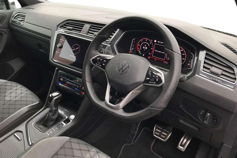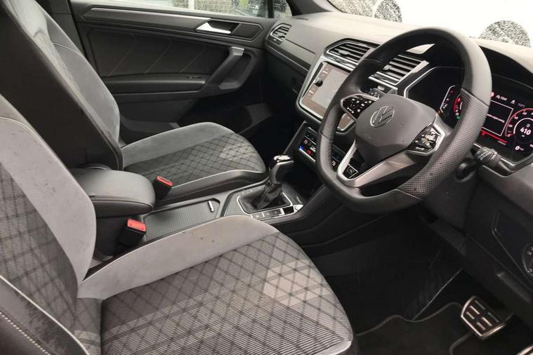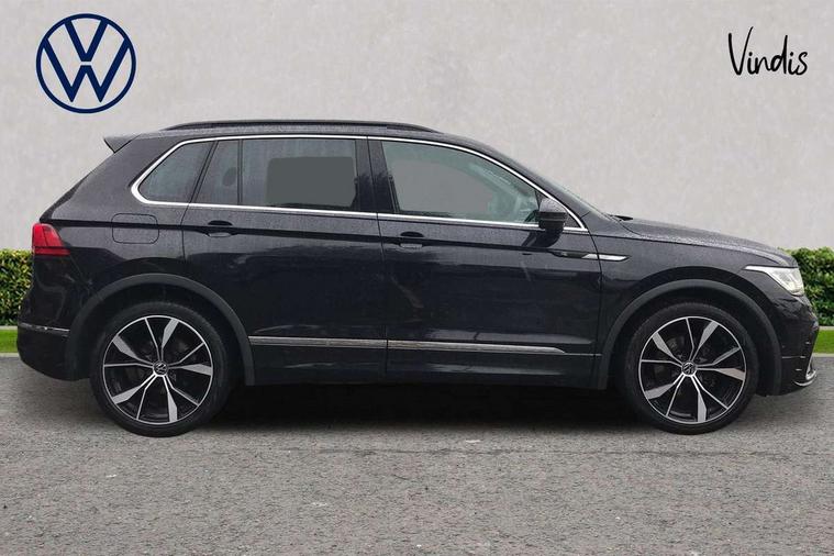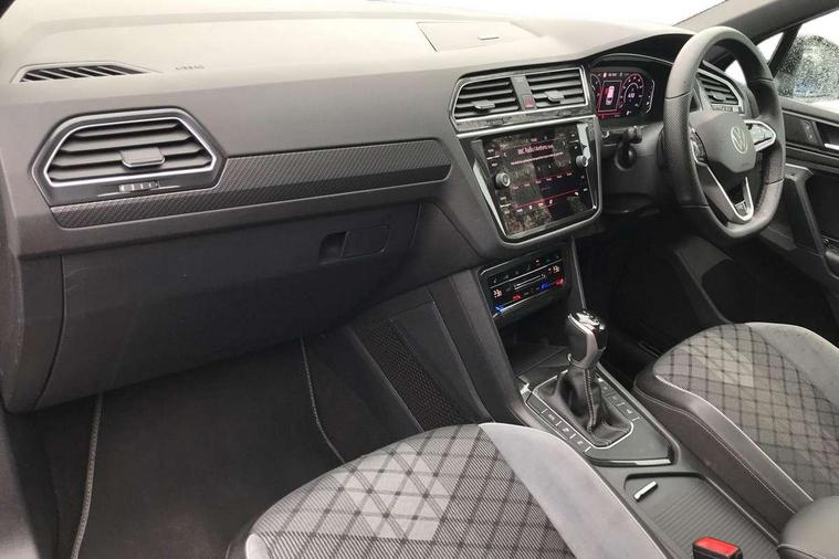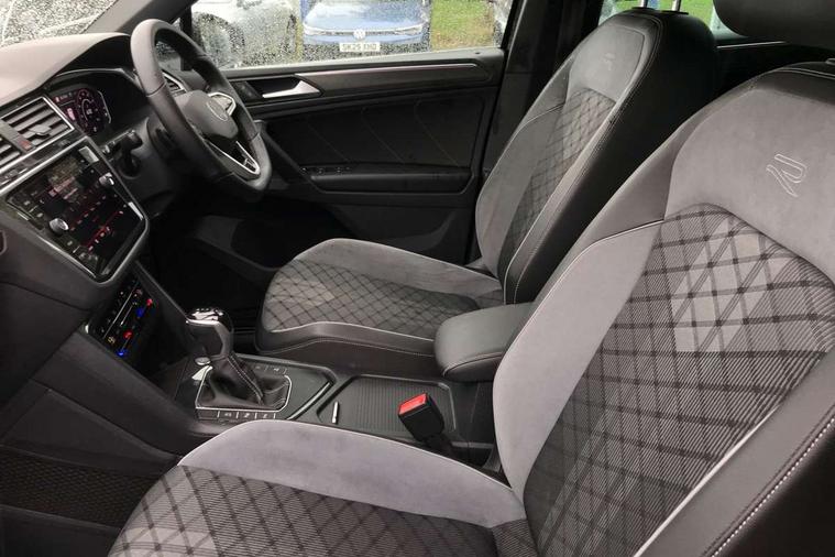 Ambience pack - Tiguan R Line, Driver assistance pack plus - Tiguan, 20" Misano black with diamond turned surface alloy wheels with Airstop tyres, Anti theft alarm system with interior monitoring, backup horn and towing protection, Anti theft wheel bolts, Electronic engine immobiliser, 2 USB-C ports in the front, 1 USB-C charging socket on the center console in the rear, Diversity antenna for FM reception, Radio, SD card slot, Simultaneous pairing of 2 compatible mobile devices, SMS functionality - read, compose and send SMS messages using touch-screen display, Title and cover art display, 3 point seat belt for centre rear seats, 3 point seat belts with seat belt pretensioners for the outer rear seats, Active bonnet, Curtain airbags for front and rear passengers, Driver/Front Passenger airbags, Drivers knee airbag, Electronic parking brake with auto hold, Electronic Stability Control with driver steering recommendation, ABS, ASR, EDL, EDTC and trailer stabilization, Front assist with autonomous emergency braking (for Adaptive Cruise Control ACC up to 130 mph), Front disc brakes, Front passenger airbag deactivation, Front side airbags, Height adjustable front 3 point seatbelts + pretensioners, Hill hold control, Pedestrian monitoring system, Proactive passenger protection system in combination with front assist, Rear disc brakes, Rigid safety cell with front and rear crumple zones, Two tone horn, Warning sound and light for front seat belts if unfastened, Warning triangle, Auto dimming interior rear view mirror, Automatic headlight control system, Black roof rails, Body colour door handles, Body coloured bumpers in R Line style, Chrome moldings on the side windows, Coming/leaving home lighting function, Dynamic headlight range control, Front and rear electric windows, Heated rear window, High level 3rd brake light, Laminated safety glass windshield, heat and sound insulating, LED rear number plate lights, License plate carrier in front and rear, Poor weather light and cornering light, Power adjustable, folding and heated door mirrors with surround lighting, front passenger exterior mirror lowering function, Privacy glass for rear side windows and rear window, R Line body kit, R Line side sills, Rain sensor windscreen wipers, Rear exhaust tailpipe, Rear fog lamp, Rear spoiler in R style, Rear windscreen washer and wiper with interval delay, Side and rear windows in heat insulating glass, Trailer Stability Programme, Unique R Line badging, Windscreen wipers/ intermittent wipe + 4 position delay, 12V outlet in center console rear and in luggage compartment, 2 cup holders in front, 2 LED front reading lights, 2 LED rear reading lights, 3 rear headrests, 4 load lashing points, 40:20:40 split folding rear seats, Air Care Climatronic 3 zone automatic climate control with enhanced air filter and controls in the rear, Backrest release for left front seat, Black headlining, Brushed stainless steel pedals and footrest, Carpet mats in front and rear with decorative stitching in Gray, Door and side trim panel in foam film, insert in leatherette, Front footwell illumination, Front seats head restraints (x-adjustment), Height adjustable front seats, Height/reach adjust steering wheel, Instrument lighting white adjustable panel illumination, Interior light with delay, Isofix Preparation 2 Rear child seats, Leather gear knob, Lockable cooled glovebox, Luggage compartment lighting, Rear bench seat asymetrically split folding, longitudinally movable and folding with load-through hatch and center armrest, Remote unlocking for rear seat backrest, Removable luggage cover, Safety optimised front head restraints, Sliding/reclining rear seats, Standard rear seat release, Storage compartment in driver's door, Storage compartment in passenger's door, Storage compartment in rear doors, Storage compartments in luggage area left and right, Storage tray on dashboard, Sun visors with illuminated vanity mirrors, Tool kit, Top front comfort seats, Variable boot floor, height adjustable and removable, Adaptive cruise control ACC stop and go including speed limiter, App-Connect incl. App-Connect Wireless for Apple CarPlay and Android Auto, Bluetooth phone integration system, Digital Cockpit Pro - Active info display, Distance control assist, Driver alert system, Driver profile selection, Dynamic road sign display, eCall emergency call system, Electromechanical speed sensitive power steering, Lane keeping system Lane Assist, Lights on warning, Multifunction front facing camera, Outside temperature display, Premium multifunction display with multi colour display, Service interval indicator, Start/stop system with regenerative braking, Tailgate/trunk lid unlocking from outside, Warning sound and light for doors and tailgate open, Battery regeneration during braking, Diesel particulate filter, Misfuel prevention device for diesel engine, XDS electronic differential lock for improved traction and handling,