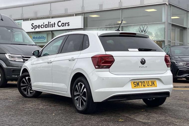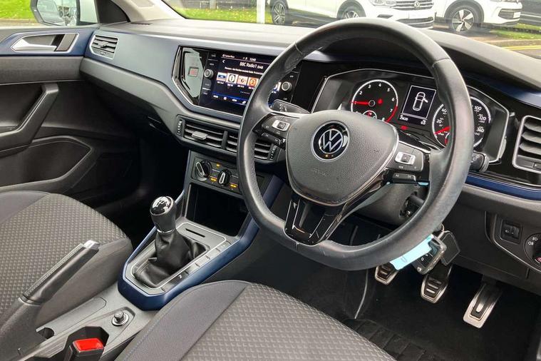 Air vents in High gloss black, Limestone grey decorative inserts, Seat covers in the Waveform design, Composition Media Pack - Polo United, Light and sight pack - Polo, Winter pack - Polo, 15" Dublin alloy wheels, Tyre mobility kit, Alarm with interior protection and deactivation via infotainment system, Electronic engine immobiliser, Remote central locking with 2 remote folding keys, DAB digital audio broadcast, Diversity antenna for FM reception, Premium USB cable in choice of either Apple or Android smartphone compatibility, 3 point height adj front seatbelts + pretensioners, 3x3 point rear seatbelts, ABS, Automatic post collision braking, Driver/front passenger airbag, Drivers and front passengers safety optimised head restraints, ESP with EDL + ASR, Front and rear passenger curtain airbags, Front disc brakes and rear drum brakes, Front passenger airbag deactivation, Front seat side impact airbags, HBA (Hydraulic Brake Assist), Hill hold control, Single tone horn, Tyre pressure monitoring system, Black grille with chrome surround, Black radiator grille with chrome louvres, Body colour bumpers, Body colour door handles, Body colour door mirrors with integrated indicators, Body colour rear spoiler, Body coloured side sills, Electric front windows, Electric operated/heated door mirrors, Front fog lights including static cornering, Front windscreen washers and wipers with 4 speed intermittent delay, Halogen clear headlights with range adjustable including automatic headlights on, Heat insulating tinted glass, Heated rear window with auto timer, High level 3rd brake light, Internally adjustable door mirrors, LED daytime running lights, LED rear number plate lights, Manual dimmable interior rear-view mirror, Rear electric windows, Rear tinted glass from B-pillar backwards approx 65% tinted, Rear windscreen washer and wiper with interval delay, reverse activated, United badge on B-pillar, United door sill protector, 2 bag hooks in luggage compartment, 2 front and 2 rear reading lights, 2 front cupholders and 12 V socket with cover, 3 rear head restraints, 4 grab handles, 60/40 split folding rear seat, Atlantic blue dash insert and centre console, Centre console storage with open storage compartment, Chrome interior door handles, Driver and front passenger seat height adjustment, Driver and front passenger sunvisors with illuminated vanity mirrors, Dust/pollen filter, Folding rear seat backrest, Front + rear carpet mats, Front head restraints, Front seat backrest storage pockets, Gear lever gaiter in black trim surround, Glovebox, Handbrake grip button in chrome effect, Height/reach adjustable steering column, Instrument lighting, adjustable panel illumination, Interior light with delay, Isofix Preparation 2 Rear child seats, Leather gear knob and handbrake grip, Leather multifunction steering wheel, Luggage compartment cover, removable, Luggage compartment lighting, Luggage compartment with variable load floor, Lumbar adjustment for front seats, Manual air conditioning, Storage compartment in front doors, Storage compartment in rear doors, Storage compartment under front seats, Sunglasses holder, United cloth upholstery, Cruise control + speed limiter, Digital clock, Discover navigation - 8.0" colour touch screen navigation/infotainment systems with Car- net guide and inform, Driver alert system, Emergency call service, Front assist, radar sensor controlled distance monitor, city emergency braking and predictive pedestrian protection, Multifunction computer plus, Power assisted speed sensitive steering, Speedo and rev counter, electronic odometer, trip, service interval display and fuel gauge, Start/stop system, Ultrasonic front and rear optical and audible parking sensors, Voice activation, Volkswagen connect, Warning buzzer and light for front seatbelts unfastened, Wireless app connect, Battery regeneration during braking, Galvanished body,