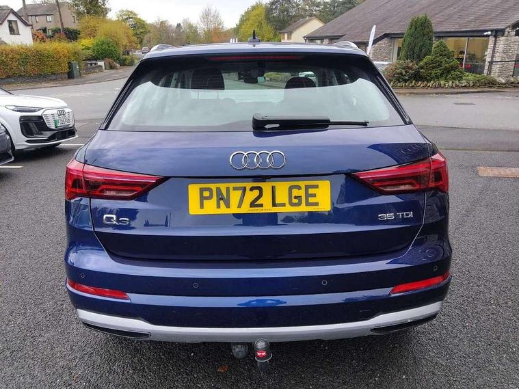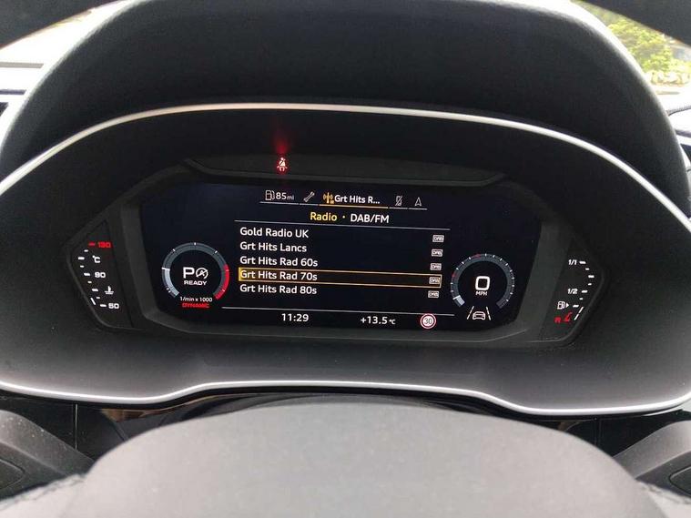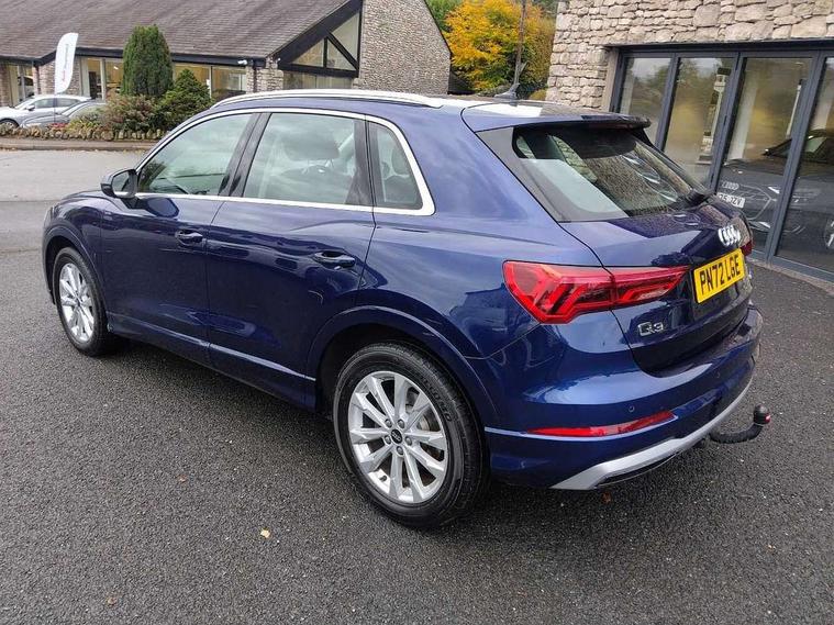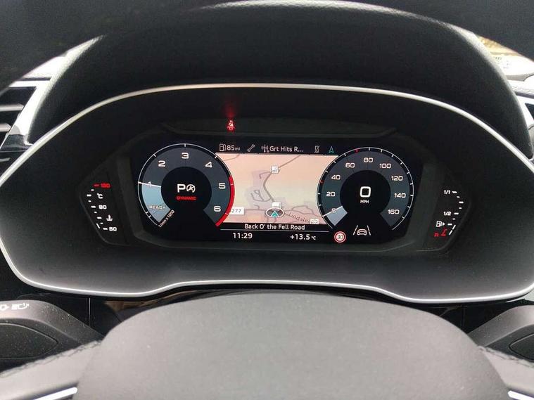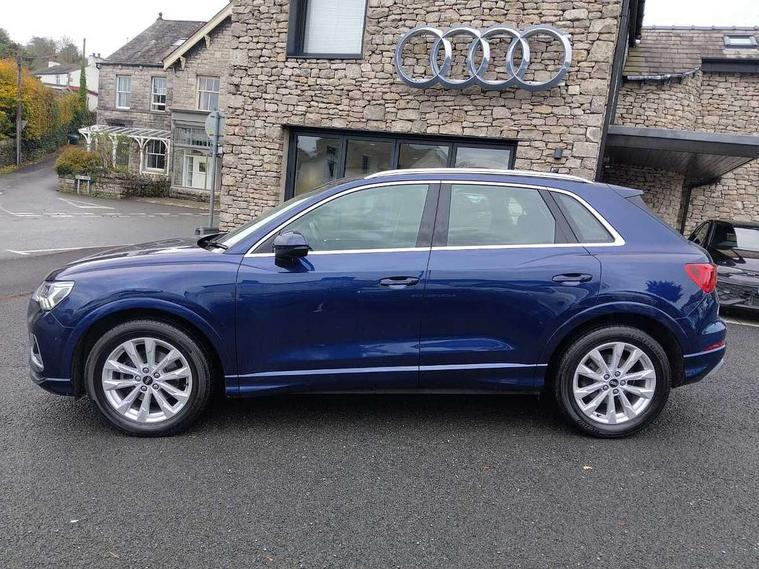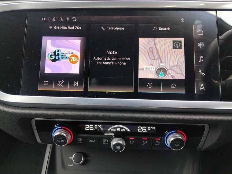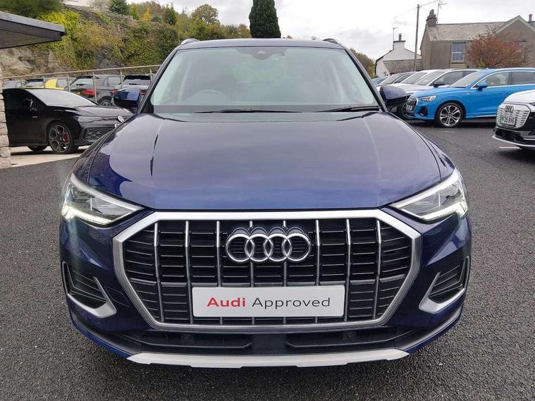 Micrometallic silver inlay, MMI touch colour display in glass look, black with surround in aluminium look, Non smoking pack - Q3, Anti theft alarm, Anti theft wheel bolts, Audi pre-sense front with pedestrain and cyclist recognition, Immobiliser, Remote central locking, 2 USB-C ports with charge and data functions, 6 passive loudspeakers, DAB digital radio module, 3x3 point rear seatbelts, 6 airbags - Driver, front passenger, curtain and side windows, Electromechanical parking brake, Electronic stabilisation control including ABS, ASR and EDL, Front seatbelt reminder, Hill descent control, Hill hold assist, Manual child lock in rear doors, Pre sense basic, Seatbelt monitoring, Tyre pressure warning, Warning triangle and first aid kit, Acoustic windscreen, Aluminium roof rails, Aluminium window trim, Auto dimming frameless rear view mirror, Body coloured bumpers, Electrically folding, adjustable and heated door mirrors with integrated LED side indicators and kerb view function for passenger side, Front and rear electric windows, Front fog lights, Front side air inlets in matt selenite silver, Front spoiler in matt selenite silver, Grille vertical bars in aluminium silver/Matt, High gloss black finish B and C pillars, LED headlights with LED daytime running lights, LED rear lights, LED third brake light, Rain and light sensors, Rear diffuser strip in matt selenite silver, Rear side wing doors, Rear wiper, Titanium black radiator grille, Variable front intermittent wipers, 12V socket in rear centre console, 3 seat bench in 2nd row, 3 spoke multi-function leather steering wheel, 40:20:40 folding with manual adjustment for 60:40 forwards/backwards position and backrest angle, Door sill trims with aluminium inlay, Dual zone electronic climate control, Front and rear floor mats, Front and rear headrests, Front and rear roof module including reading lights, Front centre armrest, Glove compartment lighting, Height and reach adjustable steering wheel, ISOFIX child seat mounting for front passenger with airbag deactivation and outer rear seat including top tether attachment point for outer rear seats, Luggage compartment light, Lunar silver cloth headlining, Manual front seats with height adjustment, Single front passenger seat, Stainless steel luggage compartment sill finisher, Amazon alexa Integration, Audi drive select, Audi lane departure warning, Audi smartphone interface includes wireless Apple carplay/Android Auto, Audi Virtual Cockpit - 10.25" display, Bluetooth interface, Camera based traffic sign recognition, Legal emergency call, MMI Navigation Plus with high resolution 10.1 inch touchscreen colour display, Power operated tailgate, Progressive steering, Service interval indicator, Start stop system with recuperation, Voice control system with natural language interaction, Diesel particulate filter, Standard suspension,