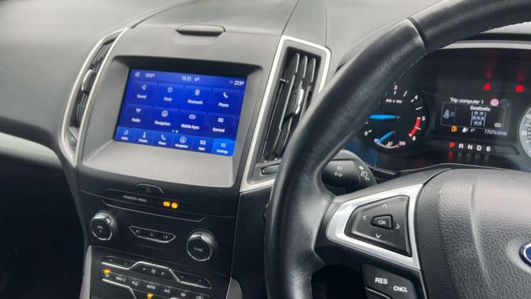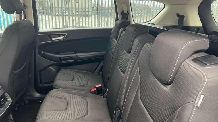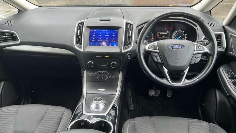 'Ford Power' starter button, Apple car play/Android Auto, Cruise control with active speed limiter, Easy fuel capless refuelling system, Front and rear parking sensors, PAS, Rotary gear shift dial, Diesel particulate filter, Steering wheel mounted controls, Auto dimming rear view mirror, Automatic wipers with variable sensitivity adjustment, Body colour door handles, Body coloured bumpers, Halogen daytime running lights, Halogen front fog lights, Halogen projector headlights, LED rear lights, Power fold mirrors - heated, indicators with puddle lamps, Power operated front and rear windows, Quickclear heated front windscreen, Tailgate wash/wipe, Tinted glass, 2 x 3rd row individual seats with fold flat, 3 x 2nd row individual seats wih fold flat, slide and recline, Dual zone electronic automatic temperature control, Floor mats in all three rows, ISOFIX attachments for child seats in 2nd row, Leather trimmed steering wheel, Overhead console with sunglasses stowage, Pollen and odor air filter, Reach and rake adjustable steering column, Sports seats, Tonneau cover for luggage compartment, 3 point seatbelts on all seats, ABS/EBD, Driver/Front Passenger airbags, Drivers knee airbag, Electric handbrake, ESP+EBA, Front and rear (row 2) curtain airbags, Front side airbags, Passenger airbag deactivate switch, Pre collision assist system, Tyre pressure monitoring system, Immobiliser, Locking wheel nuts, MyKey system, Remote control central locking, Thatcham alarm, 17" Multi-spoke alloy wheels, Tyre inflation kit,