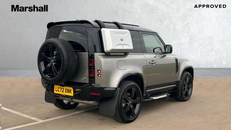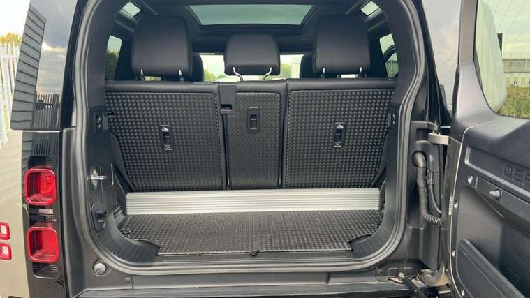 Online pack with data plan - Defender, Alarm, Immobiliser, Intrusion sensor, Keyless entry, Locking wheel nuts, DAB Radio (Digital Audio Broadcasting), Meridian 400w sound audio system with 11 speakers and subwoofer, Pivi pro connected, 5 x 3 point seatbelts, ABS, Brake hold function, Cornering brake control (CBC), Customer configurable autolock, DSC - Dynamic Stability Control, EBD - Electronic brakeforce distribution, Electric parking brake (EPB), Emergency brake assist, Emergency braking, ESP + traction control, Front airbags with passenger seat occupant detector, HDC - Hill descent control, Hill launch assist, Low traction launch, Remote for (e-Call, Optimised assistance call, InControl app, Climate, beep and flash and door), RSC - Roll stability control, Seat belt reminder, TPMS (Tyre pressure monitoring system), Automatic headlight levelling, Automatic headlights, Centre high mounted stop light, Electric heated/power fold door mirrors with approach lights and auto dimming driver side, Electric windows with one touch open/close and anti-trap, Follow me home lighting, Front fog lights, Heated rear window with timer, Heated windscreen, LED tail lights, Panoramic rear side glass, Privacy glass, Puddle lights, Rain sensing windscreen wipers, Rear fog lights, Rear wiper, Side hinged tailgate, Trailer stability assist, X-Dynamic badge, 12V power socket in loadspace, 3 seat bench in 2nd row, Alpine lights, Durable rubber cabin flooring, Durable rubber loadspace flooring, Footwell lights, Loadspace cover, Loadspace Hook, Multifunction steering wheel, Overhead stowage for sunglasses, Premium cabin lighting, Rear headrests, Rear ISOFIX, Rear reading lights, Single front passenger seat, Standard seat configuration, Storage glovebox, Sunvisors with illuminated vanity mirrors, 360 degree parking aid, 3D Surround Camera with 360 View, 180 Rear View, Front Traffic Detection, Forward Vehicle Guidance, Tow Hitch Assist and clear sight Ground View, Android Auto, Apple CarPlay, Assisted tailgate with soft close, Blind spot assist, Bluetooth system, Brake pad wear indicator, Clear exit monitor, Connected navigation pro, Driver condition monitor, Electric power assisted steering (EPAS), Lane keep assist, Push button start, Rear traffic monitor, Traffic sign recognition with adaptive speed limiter, Trip computer, Wade Sensing, 8 speed automatic transmission, All wheel drive system, Twin speed transfer box,