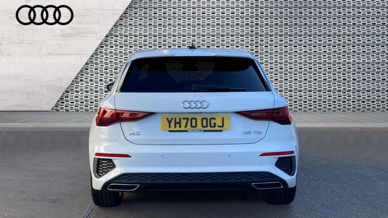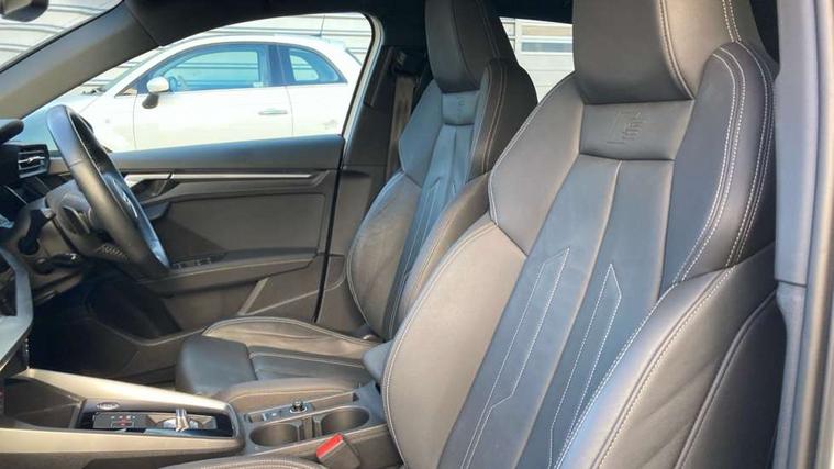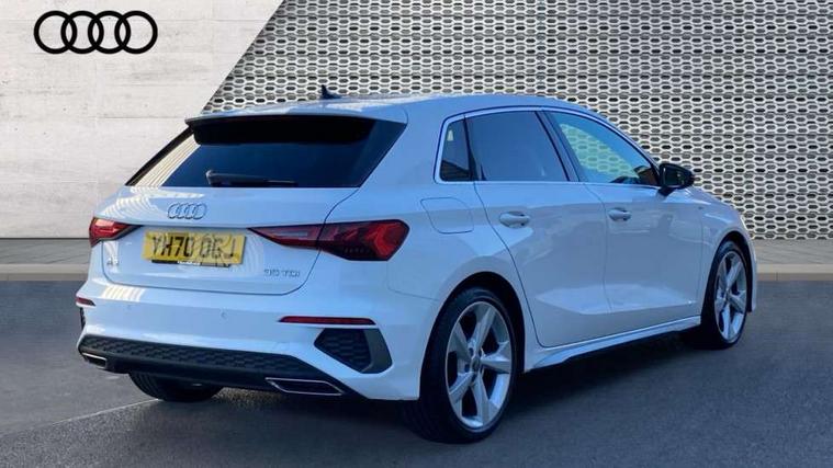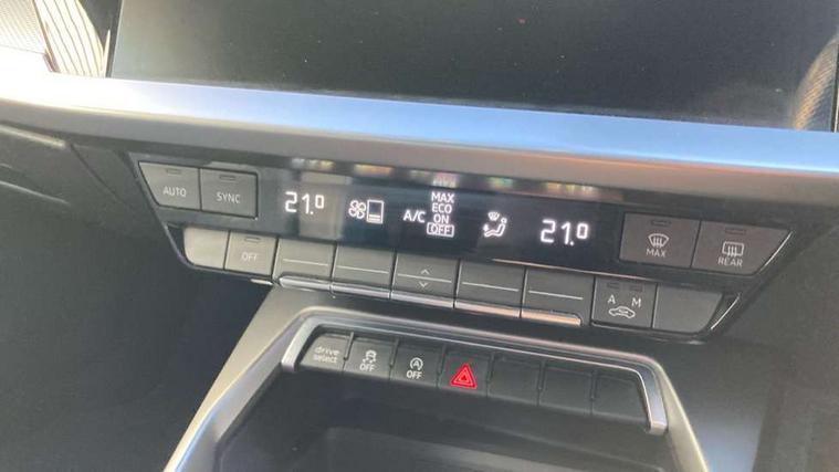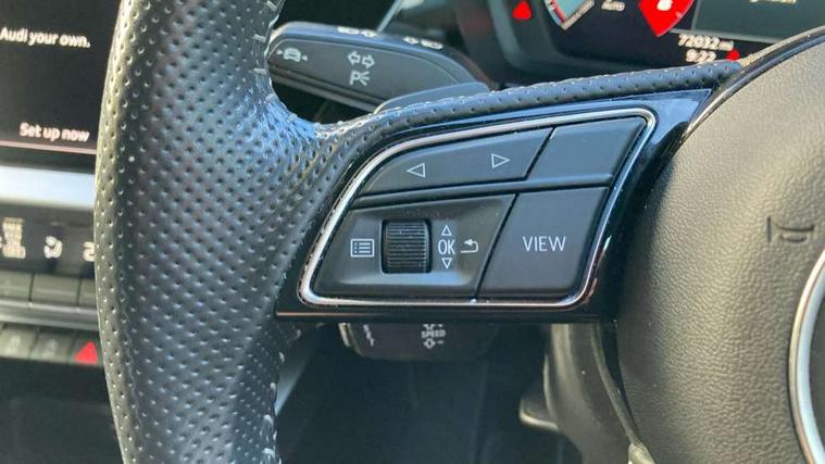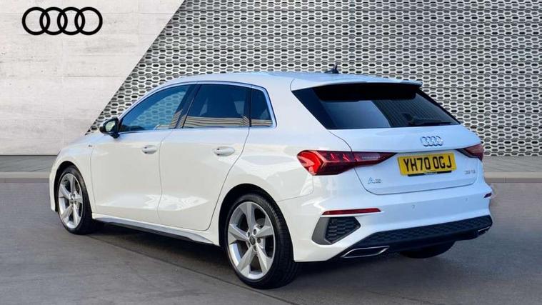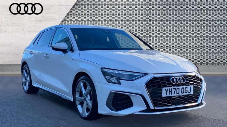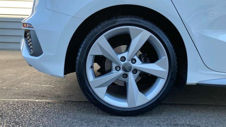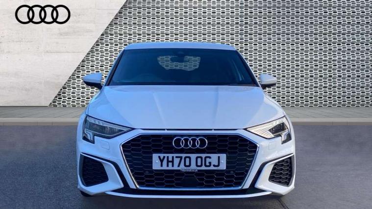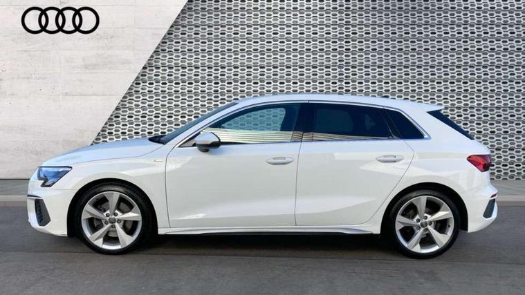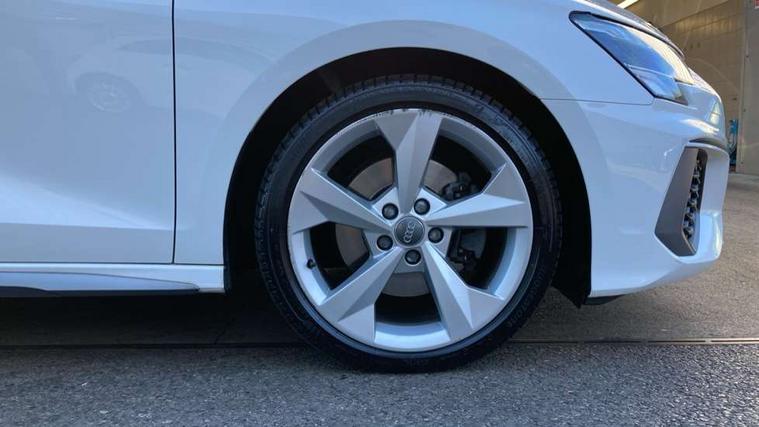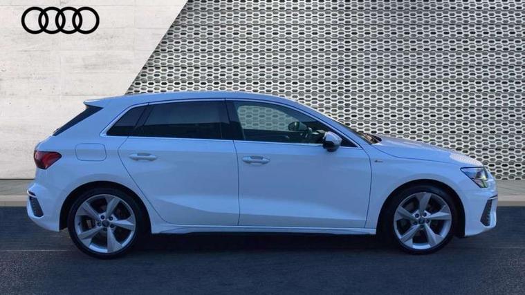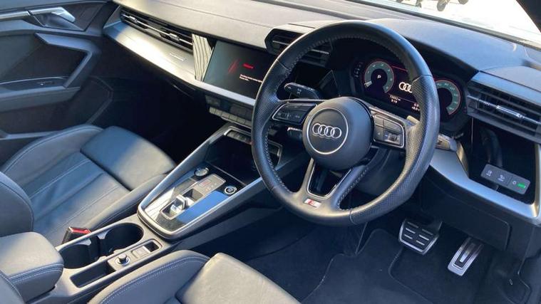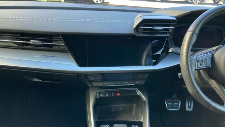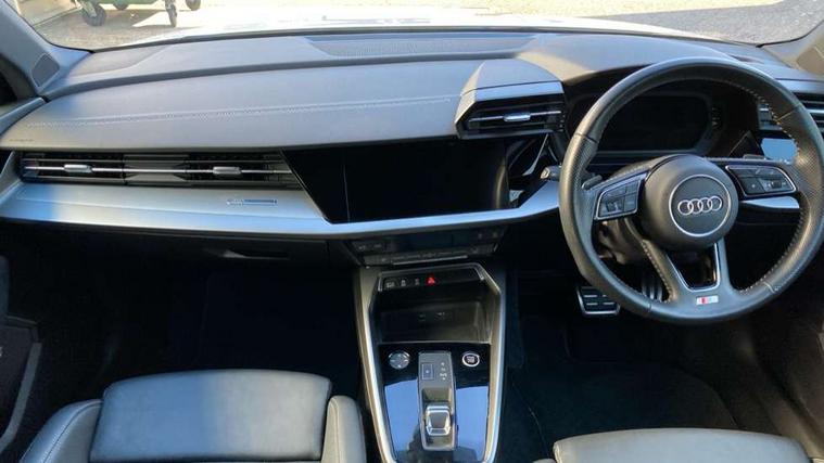 Audi connect emergency call and service, Audi drive select (Auto, Comfort, Dynamic, Efficiency and Individual), Audi smartphone interface, Audi Virtual Cockpit - 10.25" digital and colour instrument cluster, Automatic start/stop system with recuperation, Bluetooth interface, Collision avoidance assistant, Electromechanical power speed sensitive steering, Lane departure warning system, MMI Navigation Plus with high resolution 10.1" colour touch screen display, Service indicator, Trip computer, Voice control system with natural language interaction, 1xUSB-A and 1xUSB-C connection, 6 passive loudspeakers, DAB Digital radio, Acoustic glass windscreen, Aluminium window trim, Auto dimming frameless rear view mirror, Body colour exterior mirrors, Electrically adjustable/heated/folding/dimming door mirrors with kerb view includes integrated LED indications + kerb view function for passenger side, Front electric windows, Illuminated aluminium inserts front door sills with S logo, LED daytime running lights, Light and rain sensors, Privacy glass - dark tinted rear window, rear door and side windows, Rear electric windows, Rear side air outlets in grained matt black, Rear wiper, S line bumpers, S roof spoiler, 12V socket and storage compartment in front centre console, 40/20/40 split folding rear seat bench with cupholder, Black cloth headlining, Dual zone electronic climate control, Front and rear centre armrest in leather, Front and rear headrests, Front/rear floor mats, Height and reach adjustable steering wheel, Interior lighting - glove compartment light and right hand side, Luggage compartment floor covering, Manual boot compartment lid, Manually adjustable front seats, Seat side bolsters, Stainless steel pedals and front footrest, Twin leather upholstery with front sports seats S embossed logo, Aluminium interior elements pack - A3 Sportback, S line styling pack - A3 Sportback, 3x3 point rear seat belts, Driver and front passenger airbag with passenger airbag deactivation, Electronic Stabilisation Control (ESC) including ABS, ASR and EDL, First aid kit with warning triangle and 2 safety vests, Hill hold assist, Pre-sense front with pedestrian and cyclist detection, Seatbelt monitoring, Tyre pressure loss indicator, Anti theft alarm, Anti-theft wheel bolts, Electronically operated child lock, Immobiliser, Remote control central locking, Accent surfaces in the dashboard and centre console in platinum grey silk effect paint finish, Dark spectrum aluminium inlays,