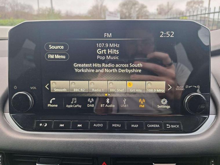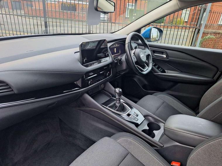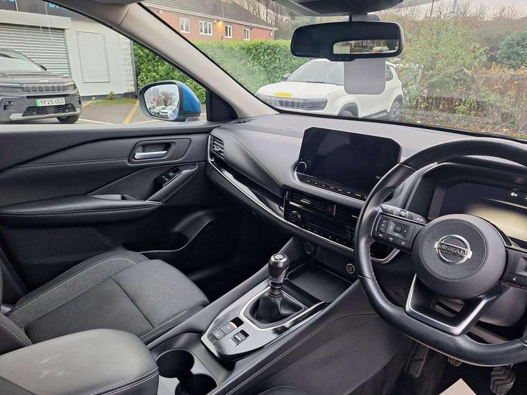 Connectivity Pack - Qashqai, 18" diamond cut alloy wheels, Capless fuel filler, Engine immobiliser, Nissan i-key, Remote central door locking with deadlocking, Thatcham Cat.1 alarm, 6 speakers, AM/FM audio system with DAB, Bluetooth audio streaming, Front USB connections (Type-A and Type-C), Rear USB charging only ports (Type-A and Type-C), 3x3 point rear seatbelt pretensioners + load limiters, ABS, ESP, EBD and brake assist, Active brake limited slip, Auto hold function, Child locks on rear doors, Curtain and front side, far side airbags, Driver and passenger airbags, Driver, passenger and 2nd row rear seat belt reminder, Electronic parking brake, Front seatbelt pretensioners + load limiters, Height adjustable front seatbelts, Hill start assist, Intelligent blind spot intervention, Intelligent front emergency braking with pedestrian, cyclist recognition and junction assist, Intelligent rear automatic braking, Tyre pressure monitoring system, Vehicle dynamic control, 3rd brake light, Auto dimming rear view mirror, Auto rear wiper when reversing, Body colour mirror caps, Body coloured door handles, Bodyside mouldings, Chrome side window finisher, Electric auto folding door mirrors, Electrically adjustable and heated door mirrors with LED turn indicator, Follow me home headlights, High beam assist, Intelligent auto headlights, LED daytime running lights, LED Headlights, LED rear lights, One touch front and rear electric windows with remote opening and closing, Partially body coloured bumpers, Privacy glass, Rear reversing light (bulb lighting), Rear roof spoiler, Rear styling plate, Shark fin antenna, Splash free rain sensing wipers, Super UV and infrared cut glass, Three blink turn signal, 12v power socket in dashboard and luggage, 2 way electrical driver lumbar adjustment, 2x Rear coat hooks, 3 rear headrests, 4 grab handles, 6 Luggage hooks - 4 on floor, 2 on side, 60/40 split folding rear seat, Ambient lighting around centre console, Centre console storage tray, Chrome interior door handles, Cloth monoform upholstery, Driver and front passenger sunvisors with illuminated vanity mirrors, Driver seat back pocket, Dual zone automatic climate control with pollen filter, Front centre console and armrest, Front cupholder, Front door with bottle holders, Glovebox with light, Hard trunk cover, Height adjustable driver's seat, Height adjustable front headrests, Leather shift knob, Leather steering wheel, Luggage board system, Luggage space lighting, Manually adjustable passenger (slide recline + lifter), Multifunction steering wheel, Passenger seat back pocket, Rear armrest with 2 cupholders, Rear door bottle holders, Soft PVC kneepad, Steering wheel switches, Sunglasses holder, Tilt/telescopic adjustable steering wheel, Two rear isofix child seat anchorage points with top tether, Welcome light and console tray ambient lighting, 7" High definition full colour TFT screen combimeter, Blind spot warning, Drive modes (sport, normal, eco), Electric speed sensitive power steering, Emergency and breakdown call, Front and rear parking sensors, Idle stop/start system, Intelligent Cruise control (ICC), Intelligent driver alert system, Intelligent forward collision warning, Intelligent lane intervention, Lane departure prevention, Lane departure warning system, Maximum speed limiter, Moving object detection, Push button starter, Rear cross traffic alert, Traffic sign recognition with legal speed adjustment, Trip computer,