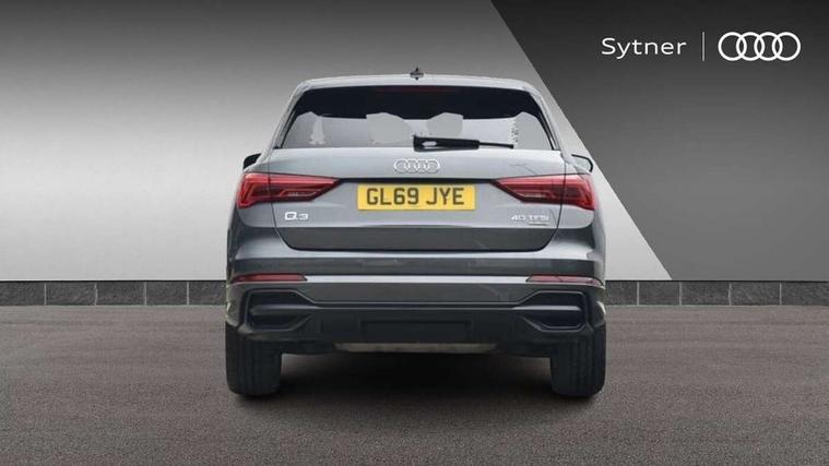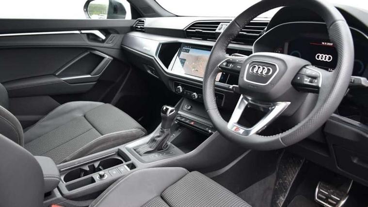 Dark matt brushed aluminium inlay, MMI touch colour display in gloss black with aluminium surround, Non smoking pack - Q3, Anti theft alarm, Anti theft wheel bolts, Audi pre-sense front with pedestrain and cyclist recognition, Remote central locking, 1 x USB type C and 1 USB type A charging points, 6 speakers, DAB digital radio module, 3x3 point rear seatbelts, 6 airbags - Driver, front passenger, curtain and side windows, Electrically operated child locks on rear doors, Electromechanical parking brake, Electronic stabilisation control including ABS, ASR and EDL, Hill descent control, Hill hold assist, Pre sense basic, Seatbelt monitoring, Tyre pressure warning, Warning triangle and first aid kit, Acoustic windscreen, Aluminium roof rails, Aluminium window trim, Auto dimming rear view mirror, Body coloured bumpers, Diffuser in matt Platinum grey, Electrically adjustable and heated door mirrors with integrated LED side indicators, Front and rear electric windows, Front fog lights, Front side air inlets in matt platinum grey, Front spoiler blade in matt platinum grey, Grille vertical bars in aluminium silver/Matt, High gloss black finish B and C pillars, LED headlights with LED daytime running lights and dynamic rear indicator, LED rear lights, Privacy glass, Rain and light sensors, Rear diffuser strip in matt titanium black, S Line badge on wings, S Line front and rear bumpers, Side skirt insert in matt Platinium grey, Titanium black radiator grille, 12V socket in rear centre console, 40:20:40 split folding rear bench seat, Adjustable rear seat bench/backrest with centre armrest and cupholder, Aluminium door sill trims, Black cloth headlining, Dual zone climate control, Front and rear black floor mats with contrast stitching in rock grey, Front and rear headrests, Front and rear roof module including reading lights, Front centre armrest with storage compartment and angle adjustment, Glove compartment lighting, Height and reach adjustable steering wheel, Illuminated door sill trims with S logo, ISOFIX child seat mounting and Top Tether with front passenger airbag deactivation, Luggage compartment light, Manual front seats with height adjustment, Perforated leather gearknob, Stainless steel luggage compartment sill finisher, Stainless steel pedals, Audi connect safety and service (e-call), Audi drive select, Audi lane departure warning, Audi side assist, Audi smartphone interface, Audi Virtual Cockpit - 10.25" display, Bluetooth interface, Camera based traffic sign recognition, MMI navigation plus with MMI touch, Power opening/closing tailgate, Progressive steering, Service interval indicator, Stop/start system, Voice control system, Sports suspension,