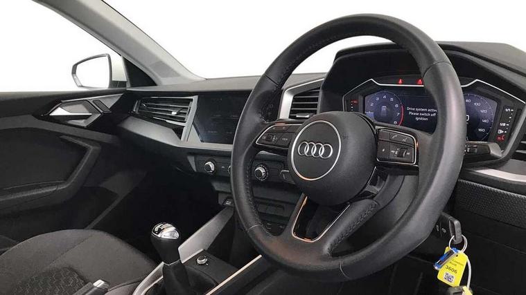 Aluminium trim for control switches, air vents and digital instrument cluster, Silver grey accent areas including air vents, door handle recesses and centre console in diamond paint finish, Slate grey inlays polygon structure in fine paint finish, Luggage compartment pack - A1, Anti theft alarm, Anti theft wheel bolts and loose wheel warning, Audi pre-sense front with pedestrain and cyclist recognition, Immobiliser, Remote central locking with 2 foldaway keys, 1 x SDXC card reader, 1 x USB type C and 1 USB type A charging points, DAB Digital radio, MMI radio plus with 8.8" colour MMI display screen and MMI touch, 3x3 point rear seatbelts, Brake assist function, Driver and front passenger airbag with front side and head airbags, Electronic Stability Control including ABS, EBD, ASR and EDL, Front and rear seatbelt reminder, Front passenger airbag deactivation switch, Hill hold assist, Seatbelt height adjustment for front seats, Seatbelt monitoring, Tyre pressure warning light, Warning triangle and first aid kit, Auto dimming rear view mirror, Body coloured bumpers, Body coloured door mirrors, Electric front and rear windows, Electrically adjustable, heated, folding door mirrors with integrated LED side indicator, Front side air inlets in grained matt black and C frame in titanium black, Heat insulating glass windscreen and side windows, Heated rear windscreen, LED headlights with LED rear lights + dynamic rear indicators + headlight adjustment and high beam, turning light + LED daytime running lights, Radiator grille and rear diffuser in matt titanium black, Radiator protective grille frame in matt aluminium silver, Rain and light sensors, Rear fog lights, Rear wiper, Scandium grey tailpipe trim, Side front spoiler lips in grained matt black, 12V socket in centre console with two cup holders, 3 rear seats with headrests, 40:60 Split folding rear seat or folded fully, Door sill trims with aluminium inlay, Driver and passenger seat with manual height adjust with forward and backwards adjustment, Front head restraints, Front/rear floor mats, Height and reach adjustable steering wheel, ISOFIX child seat mounting for front passenger and outer rear seats including top tether attachment point of outer rear seats, Leather gear knob with aluminium trim, Leatherette handbrake grip, Luggage compartment light with front and rear reading lights, Manually adjustable lumbar support in front seats, Novum cloth upholstery with front sport seats, Titanium grey cloth headlining, 10.25" Digital instrument cluster display classis style instrument dials + speed, odometer, time, outside temperature, telephone menu + fuel level warning, Audi connect safety emergency and service including E-call, Audi drive select - power steering assistance + engine, Audi smartphone interface with connect compatible smartphone via USB directly MMI display + Nav, music, third party apps controlled via MMI controller, Automatic start/stop system, Bluetooth interface, Cruise control, Driver's information system, Electromechanical power steering, Lane departure warning system, Rear parking sensor, Service interval indicator, Speed limiter, Voice control system, Washer fluid level indicator, Dynamic suspension,