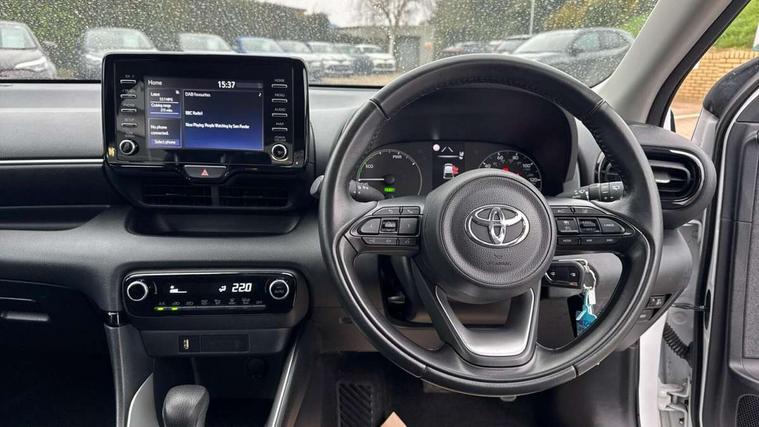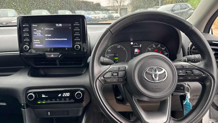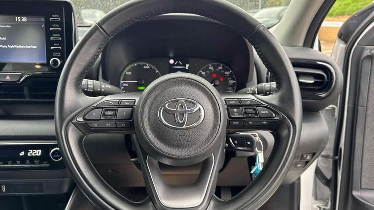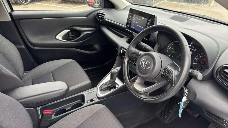 Soft touch instrument panel, 16" Silver alloy wheels, Space saver spare wheel, 2x Master key, Alarm/immobiliser, Remote powered central double locking doors, 4 speakers, 7" Multimedia display touch screen, Toyota Touch 2 with DAB, USB connection, 3 point seatbelts on all rear seats, ABS+EBD+Brake assist, Active headrests, Electronic parking brake, Emergency brake light system (EBS), Front passenger airbag on/off switch, Front seatbelt reminder, Hill start assist control (HAC), Rear child proof door locks, Rear seat belt reminder, Supplemental Restraint System (SRS) 8 airbags: Driver & passenger's airbags, dual side curtain airbags, side impact airbags, front centre airbag, Toyota Safety Sense 2, Precollison + Night time Pedestrian & Cyclist Detection, Lane Trace Assist, Auto High Beam, Intelligent ACC & Road Sign Assist, Tyre pressure warning system, Acoustic windscreen glass, Auto windscreen wipers, Automatic headlights, Body coloured door mirrors, Bulb indicators, Chequered front grille, Daytime running lights, Electric adjustable heated door mirrors, Follow me home headlights, Front auto power windows with anti jam protection, Halogen projector headlights, LED High mounted stop lamp, Manual headlight levelling, Rain sensor, Rear side wing doors, Rear spoiler, Rear wiper, Shark fin antenna, Turning signal integrated indicators in door mirrors, 3 adjustable rear headrests, 3 spoke leather steering wheel, 60/40 split folding rear seat, Adjustbale boot height, Auto air conditioning, Coat hooks in rear grab handles, Cup holders (2 front & door), Data Communication Module (DCM) connected services, Fabric upholstery, Front armrest, Glovebox, Grey roof lining, Height adjustable driver's seat, Isofix seat fixing, Leather gearshift, Pollen filter, Shopping bag hooks, Single front passenger seat, Tilt/telescopic steering column, 4.2" coloured TFT multi information display with analogue speedometer, Adaptive cruise control, Adjustable speed limit with speed warning, Bluetooth connectivity, E-call, Electric power steering, Hybrid energy display, Multi information display switches on steering wheel, Reversing camera, Smartphone integration with Apple CarPlay and Android auto, Voice recognition, Vehicle Stability Control (VSC),