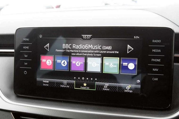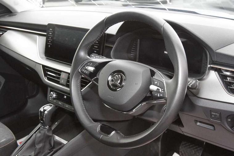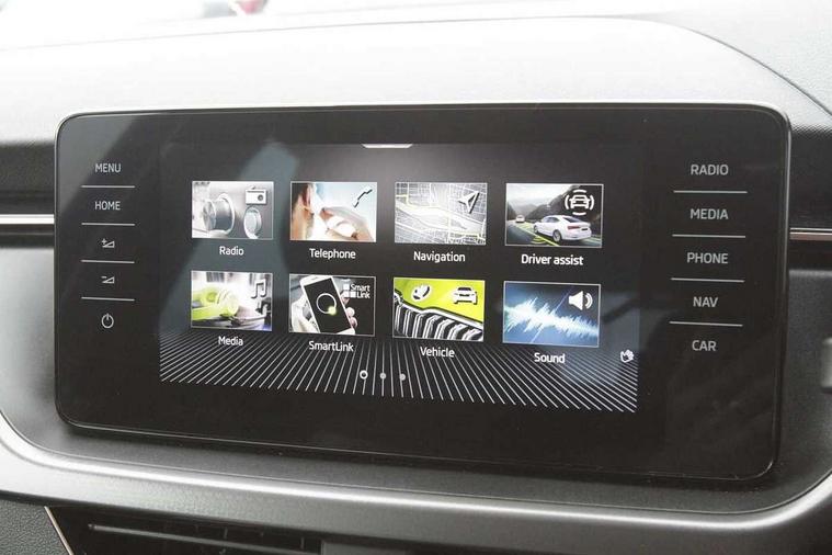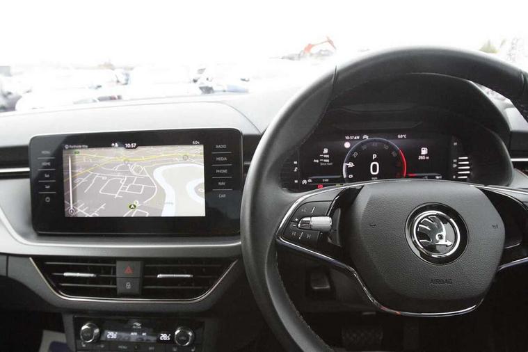Latice curved decorative insert on the dashboard with hot stamping in copper and white ambient lighting white, Anti-theft alarm system with interior monitoring, backup horn, towing protection and remote central locking with SAFE system, Anti-theft wheel bolts, Electronic engine immobilizer, 8 speakers, Auxiliary input socket, DAB Digital radio, 3x3 point rear seatbelts, Airbags - driver and front passenger, ESP, Front passenger airbag deactivation switch, Front side airbags with curtain airbags, Hill hold control, Manual parking brake, Manual rear child locks, One tone horn, Rear disc brakes, Seatbelt reminder for driver an co-driver, Traction control, Tyre pressure monitor, Auto dimming rear view mirror, Body colour bumpers, Body colour door mirrors and handles, Chrome grille surround, Electric folding door mirrors, Electrically adjustable and heated door mirrors, Front and rear electric windows, Headlight range control, Heated rear window, LED rear lights - low functionality, Light sensors, Privacy glass, Rear fog lights, Rear side wing doors, Rear wiper, 12V Accessory socket in centre console, 3 seat bench in 2nd row, Chrome inner door handles, Dual zone climate control, Front head restraints, Glove compartment with illumination, Ice scraper, Isofix child seat fittings on outer rear seats, ISOFIX on front passenger seat, Manual lumbar support for front seats, Rake/reach adjustable steering wheel, Reading lights, Single front passenger seat, Sun visors with illumination on front passenger, Textile floor mats, Third rear headrest, Top tether for front passenger seat, Umbrella in driver's door, Amundsen satellite navigation with 9.2" glass colour touchscreen display, voice control, virtual cockpit, web radio and traffic sign recognition, Bluetooth system, E-call, Front and rear parking sensors, Front assist system, Gesture control, PAS, Rear view camera, Service indicator, Speed limiter, Virtual cockpit with 10.25"display, Wireless SmartLink for apple car play, android auto and mirrorlink,
