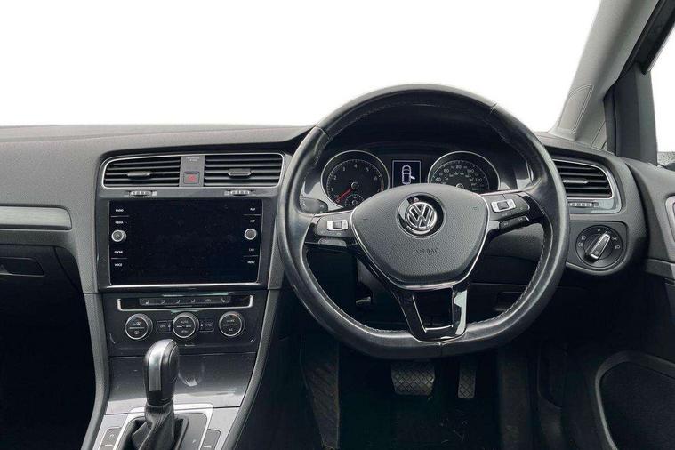 Brushed dark silver decorative inserts in dash and door panels, Chrome plated air vent surround, Chrome-plated light switch surround, Polar night black decorative inserts in centre console, Convenience Pack - Golf, Mirror pack - Golf, Winter pack - Golf, Steel space saver spare wheel, Alarm with interior protection and deactivation via infotainment system, Electronic engine immobiliser, Composition media system, DAB Digital radio receiver, Driver Personalisation profile selection, MP3/WMA compatability, Multi device interface (MDI) via USB connection, Premium USB cable in choice of either Apple or Android smartphone compatibility, SMS Functionality, Title and cover art display, USB and SD card connectivity, Volkswagen media control, 3 rear three point seatbelts, Airbags - Driver's and front passenger's, curtain airbag, Driver's knee, front side impact and passenger's airbag deactivation switch, Anti-lock Braking System (ABS) with Hydraulic Brake Assist (HBA), Automatic post collision braking system, Child locks on rear doors, Driver/Passenger optimised head restraints, Electronic parking brake with auto hold, Electronic stability control (ESC) including Electronic differential lock (EDL) and ASR (Traction control) with deactivation via infotainment system, Front ventilated disc brakes and rear disc brakes, Pre crash preventive occupant protection, Three point height adjustable front seatbelts with tensioners, Tyre pressure loss indicator, Black front air intake and radiator grille with chrome insert, Black rear diffuser, Body colour bumpers, Body colour door handles, Body colour door mirrors with integrated indicators, Dusk sensor + automatic driving lights, Electric front windows, Electric rear windows, Electrically adjustable and heated door mirrors, Fully galvanised body, Heated rear windscreen, High level 3rd brake light incorporating LED Technology, LED front fog lights with static cornering light function, Range adjustable headlights via infotainment system with LED daytime running lights, Rear fog lamp, Rear number plate lights incorporating LED technology, Rear tinted glass 65% light absorbing from B pillar backwards, Rear window aerial, Rear window wash/wipe with intermittent wipe, Reflectors in all doors, Tailgate with integrated rear roof spoiler, Windscreen wipers/ intermittent wipe + 4 position delay, 12V socket in luggage compartment, 3 rear headrests, 4 load lashing points in luggage compartment, 60/40 split folding rear seat backrest, Bag hook in luggage compartment x 2, Climate control - 2 zone electronic air conditioning with automatic air recirculation and allergy filter, Cooled glovebox, Cover for storage compartment in centre, Dust/pollen filter, Front and rear reading lights X 2, Front centre armrest with storage compartment and two rear air vents, Front seat back storage pockets, Grab handles front x 2, rear x 2 with integrated coat hooks, Height and reach adjustable steering wheel, Illuminated vanity mirrors, Instrument lighting white adjustable panel illumination, Interior light delay, Isofix preparation for 2 rear child seats, Load through provision with rear centre armrest and cupholders x2, Luggage compartment lighting, Overhead storage box, Pearl grey headlining, Storage box in luggage compartment, Storage compartment in roof console with cover, Storage compartments in centre console, Storage compartments in front doors, Storage compartments in rear doors, Stowable luggage compartment cover, Sun visors, Variable boot floor, height adjustable and removable, 'Lights On' Reminder warning buzzer, ACC - Adaptive cruise control with front assist, forward collision warning, distance monitoring, city emergency brake and speed limiter, Bluetooth telephone and audio connection for compatible devices, Brake pad wear indicator warning light, Driver alert system, Driving Mode Selection with four preset modes - Eco, normal, sport or individual modes, Multifunction computer with visual gear change recommendation for fuel consumption, Power assisted speed sensitive electro-mechanical steering, Push tank flap, Speed limit display, Speedo, rev counter, electronic odometer, trip, service interval display, exterior temperature and fuel gauge, Stop/start system, Think blue trainer driver tips and journey analysis, Warning buzzer and light for front seatbelts unfastened, Battery regeneration during braking, XDS electronic differential lock,