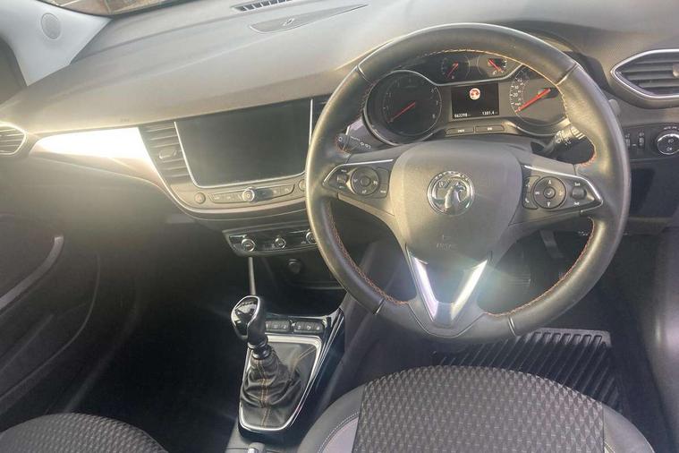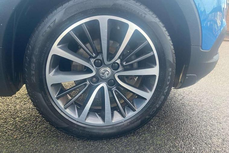 Tioga grey inserts on facia and door panel, 17" Multi spoke diamond cut alloy wheels in technical grey, 2 remote folding keys, Engine immobiliser, Locking wheel nuts, Remote central locking + deadlocks, Remote security alarm system, 6 speakers, Steering wheel mounted audio controls, Wi-Fi hot spot, 3x3 point rear seatbelts, ABS, Child locks on rear doors, CSC - Cornering stability control, Deformation zones front and rear, Driver/Front Passenger airbags, EBD + Brake Assist, Energy absorbing steering column, ESP + traction control, Front and rear outer seat belt pre-tensioners, Front and rear seatbelt reminder, Front seat side impact airbags, Full size curtain airbags, Hill start assist, Passenger airbag deactivate switch, Reinforced passenger safety cell, Seatbelt load limiter, Side impact protection beams, Tyre pressure monitoring system, 2 speed wipers/wash wipe/intermittent wipe, Alloy effect front and rear skid plates, Auto dimming interior mirror with anti-dazzle function, Automatic lights and wipers, Body colour door handles, Chrome effect bar on front grille, Chrome side window trim, Dark tinted rear windows, Door to door illumination, ecoLED daytime running lights, EcoLED headlamps, Electric front/rear windows with one touch, Electrically adjustable and heated door mirrors, Front fog lights, Hazard warning lamps, Headlamp levelling, Heated rear window, Intermittent rear wash/wipe, Manually foldable door mirrors, Rain sensitive windscreen wipers, Rear fog lights, Rear spoiler, Side protection mouldings, Side window demist vents, Solar glass windscreen, Tunnel detection for auto light control, Welcome lighting, 12V power point front, 3 spoke leather covered steering wheel with satin chrome bezel, Active carbon filter, Air filter, Anti submarining front seats, Carpeted loadspace, Chrome interior door handles, Driver's centre armrest, Driver/passenger sunvisors with illuminated vanity mirrors, Dual zone electronic climate control, Flex floor multi-level adjustable load compartment, Flex floor with under floor divider, Front door pockets with bottle holders, Front map reading lights, Front seat back storage pockets, Glovebox with lid, Height adjustable front/rear head restraints, Illuminated load area, Interior courtesy light operated by all doors, Isofix system on outer rear seats, LED ambient lighting, Luggage compartment cover, Odour filter, Passenger assist handles, Pollen filter, Reach + rake adjustable steering column, Rear door pockets with bottle holders, Rear reading lights, 3.5" colour information display, Audible lights on warning, Cruise control + speed limiter, Digital clock, Front camera system, Lane departure warning system, Low fuel level warning light, Multi function trip computer, Nav 5.0 Intellilink sat nav system + 8" colour touchscreen+DAB radio+RDS traffic programme+2 USB+bluetooth audio streaming+Apple CarPlay/Android auto, Outside temperature display, Rev counter, Service interval indicator, Speed sensitive power steering, Traffic sign recognition, Vauxhall connect including Ecall and connected services, Voice control system,