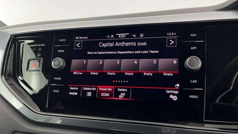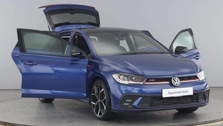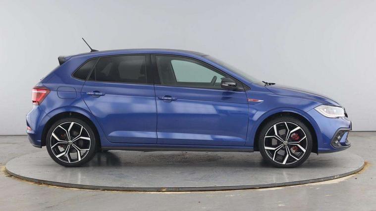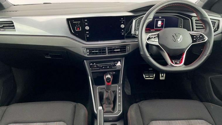 Chrome applications on rotary light, mirror adjustment, window regulator switches, outlet with frame in black, IQ LED matrix headlights pack - Polo, Light and sight pack - Polo GTI, Sports suspension pack - Polo, Low rolling resistance tyres, Alarm with interior protection, Anti-theft alarm system with interior monitoring, backup horn, and towing protection, Anti-theft wheel bolts, Electronic engine immobiliser, DAB Digital radio, Diversity antenna for FM reception, Front and rear 6 speakers, 3 point height adj front seatbelts + pretensioners, 3x3 point rear seatbelts, ABS, Driver and front passenger airbag with front passenger airbag deactivation, Drivers and front passengers safety optimised head restraints, ESC (Electronic stability control) + EDL (Electronic Differntial lock) and ASR (Traction control), Extended and predictive pedestrian/ cyclist protection, Front and rear disc brakes with red brake calipers, Front curtain and side airbags with center airbag, Hill hold control, Manual child lock in rear doors, Two tone horn, Tyre pressure loss indicator, Body colour bumpers, Body colour door handles, Chrome plated radiator grille inserts, air vent surrounds and light switch surrounds, Electric front windows, Front scuff plates in aluminium with GTI logo, Heat insulating glass in side and rear windows, Heat insulating glass windscreen, Power folding adjustable/heated exterior mirrors and front passenger exterior mirror lowering function, Rear electric windows, Rear fog light, Rear side wing doors, Rear windscreen washer and wiper with interval delay, Sport bumpers with air intakes with honeycomb structure, Third brake light, Twin chrome exhaust tailpipes, 12V power socket in centre console, 2 USB-C ports in the front, 2 USB-C charging sockets on the center console in the rear, 3 rear head restraints, 60/40 split folding rear seat and rear seat bench not split, Air care climatronic air conditoning system with active combination filter and 2-zone temperature control, Black roof lining, Ceramique headliner, Door and side trim panel, Driver and front passenger seat height adjustment, Driver/passenger sunvisors with illuminated vanity mirrors, Front + rear carpet mats, Front centre armrest, Front footwell illumination, Front seat backrest storage pockets, GTI sports gearshift knob in aluminium leather, Handbrake lever handle in leather, Isofix child seat preparation easy-fit (for two outer rear seats, and front passenger seat) compatible with I-size, LED interior light with switch off delay and dimmer, 2 reading lights front and rear, Luggage compartment cover, Luggage compartment floor, Luggage compartment lighting, Single front passenger seat, Stainless steel pedals, Standard pedal cluster, Three spoke leather wrapped multifunction sports steering wheel with shifting paddles, Adaptive cruise control with follow-to-stop and speed limiter, Bluetooth mobile phone interface, Digital Cockpit Pro with 10.25" Display, Driver alert system, Dynamic road sign display, Eco mode, Emergency call service, Power assisted speed sensitive steering, Preparation for We connect and We connect plus, Speedo and rev counter, electronic odometer, trip, service interval display and fuel gauge, Travel Assist - Lane keeping system and traffic jam assist, Travel assist including emergency assist, Trip computer, Warning signal and warning light for front and rear seatbelts not fastened, Washer fluid level indicator, Wireless app connect, Adaptive chassis control, Front wheel drive, Heavy duty rear axle, Rear shock absorpion sports version, Sports select suspension lowered by 15mm, Start-stop system with battery regeneration (recuperation - energy recovery during braking),