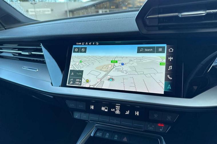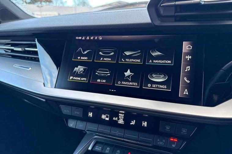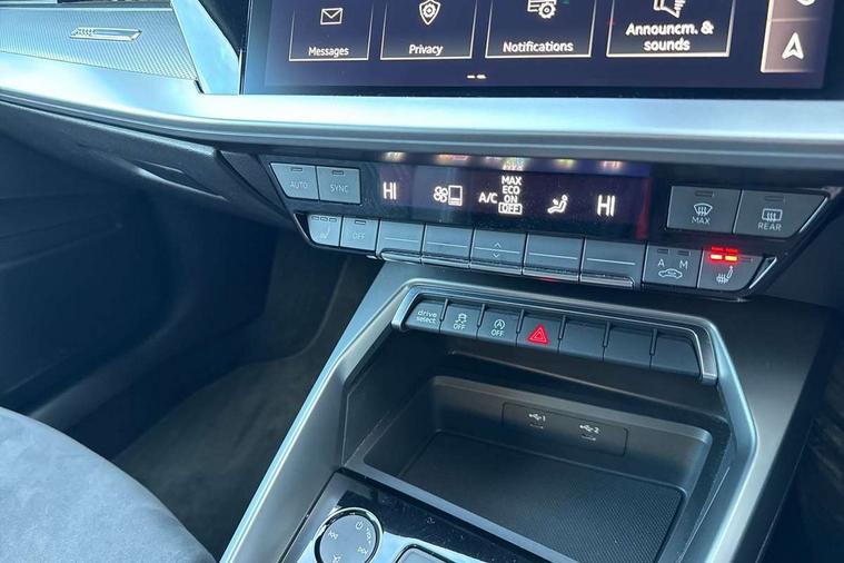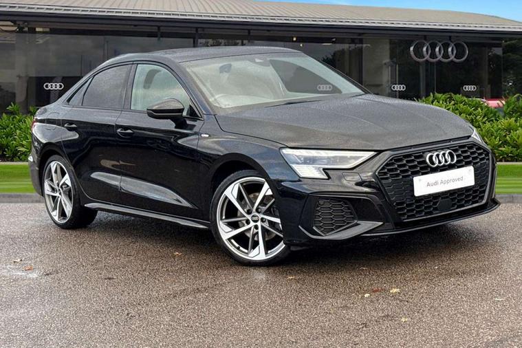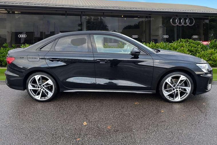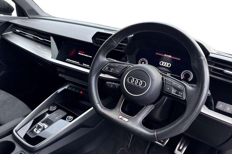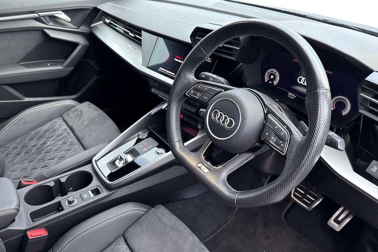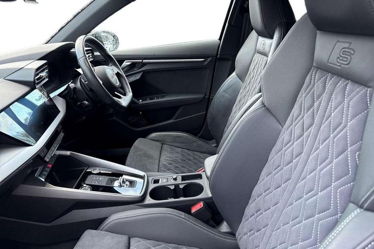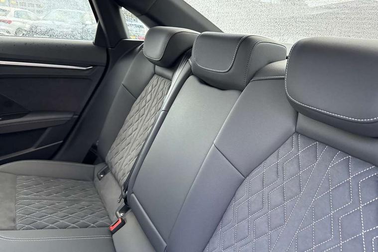 Aluminium air vent surrounds, Aluminium trim elements, Dark spectrum aluminium inlays, accent surfaces in the dashboard and centre console in platinum grey silk effect paint finish, Aluminium interior elements pack - A3 Saloon, Dinamica microfibre/mono.pur 550 artificial leather pack - A3 Saloon, 19" 5 arm trapezoid design alloy wheels in titanium matt grey with diamond cut finish, Anti theft alarm, Anti-theft wheel bolts, Immobiliser, Manual child locks, Remote control central locking, 2x USB Type C ports (for charging and data transfer), 6 passive loudspeakers, CD player, DAB Digital radio, 3x3 point rear seat belts, Driver and front passenger airbag with passenger airbag deactivation, Electronic Stabilisation Control (ESC) including ABS, ASR and EDL, First aid kit with warning triangle and 2 safety vests, Front side airbags with head airbags and interaction airbag, Hill hold assist, Pre-sense front with pedestrian and cyclist detection, Seatbelt monitoring, Tyre pressure loss indicator, 3rd brake light, Acoustic glass windscreen, Audi matrix LED headlights, LED rear lights, dynamic front and rear indicators and headlight cleaning system, Auto dimming frameless rear view mirror, Electrically adj heated/folding + automatically dimming exterior mirrors with memory + automatic kerb side function for passenger side exterior mirror, Front electric windows, Illuminated door sills with aluminium inserts at the front with S logo, Integrated LED indicators in door mirrors, LED daytime running lights, Light and rain sensors, Model and engine designation badges at rear, Privacy glass - dark tinted rear window, rear door and side windows, Rear boot, Rear electric windows, Rear side wing doors, S roof spoiler, 12V socket and storage compartment in front centre console, 3 seat bench in 2nd row, 4 way electrically adjustable lumbar support for driver and front passenger, 40/20/40 split folding rear seat bench with cupholder, Black cloth headlining, Dual zone electronic climate control, Electrically adjustable front seats with memory function for driver's side and exterior mirrors, Front and rear centre armrest in leather, Front and rear headrests, Front/rear floor mats, Heated front seats, Height and reach adjustable steering wheel, Illuminated vanity mirror, Interior lighting - glove compartment light and right hand side, Luggage compartment floor covering, Single front passenger seat, Stainless steel pedals and front footrest in black, Audi connect emergency call and service, Audi drive select (Auto, Comfort, Dynamic, Efficiency and Individual), Audi smartphone interface, Audi virtual cockpit plus - 12.3" dynamic digital instrument cluster, Automatic start/stop system with recuperation, Bluetooth interface, Collision avoidance assistant, Electromechanical power speed sensitive steering, Lane departure warning system, MMI Navigation Plus with high resolution 10.1" colour touch screen display, Service indicator, Voice control system with natural language interaction, Diesel particulate filter, Sports suspension,