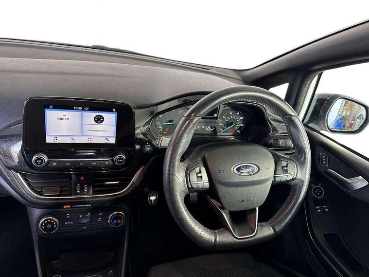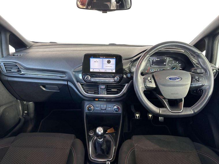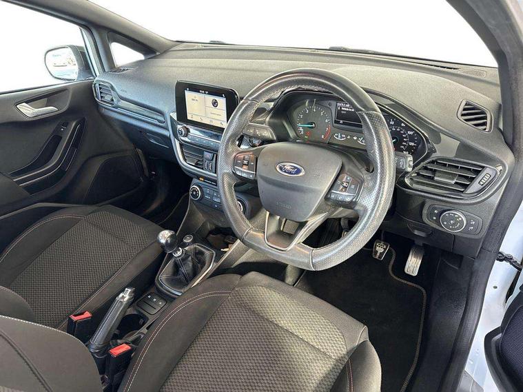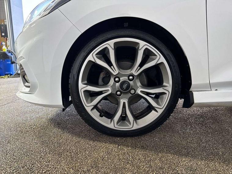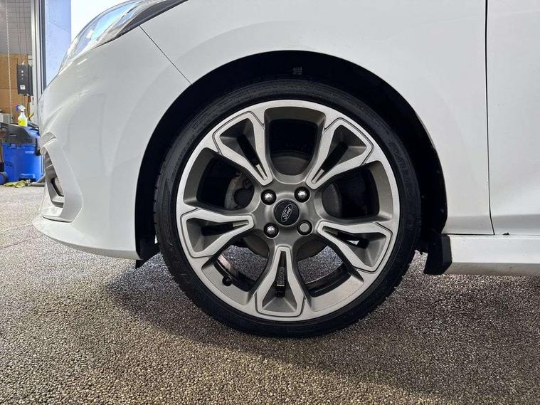 Bluetooth system, Electric power steering, Lane keep assist, Speed limiter, SYNC Emergency Assistance, Trip computer, Sports suspension, 2 USB ports, Auxiliary input socket, Ford SYNC 3 DAB radio, apple car play and android auto with voice control, Steering wheel mounted controls, USB connection, Automatic headlights, Body colour bumpers, Body colour door handles, Body colour electric adjustable heated door mirrors, Body colour large rear spoiler, Body styling kit, Chrome door handles, Cornering front fog lights, Electric front windows/one touch facility, LED daytime running lights, Quickclear heated windscreen, Rear wiper, Tinted glass, Upper front grille chrome surround, 12V Accessory socket in centre console, 3 spoke flat bottomed leather steering wheel, 60/40 split folding rear seat, Adjustable head restraints, Black headlining, Boot carpet, Centre console with armrest, Chrome inner door handles, Cloth upholstery, Footwell illumination, Front and rear velour floor mats, Front map reading lights, Front seat and rear pockets, Height adjustable driver's seat, Illuminated cup holders, Illuminated glovebox, Leather gear knob, Leather trimmed handbrake handle, Load area light, Manual air conditioning, Overhead console with sunglasses holder, Pollen filter, Rake/reach adjustable steering wheel, Rear centre head restraint, Sports front seats, Sports pedals, 3 point seatbelts on all rear seats, ABS+EBA, Curtain airbags, Driver and passenger airbags, Drivers knee airbag, ESP + traction control, Front passenger airbag deactivation, Front side airbags, Hill start assist, Seatbelt warning, Tyre pressure monitoring system, Immobiliser, Keyless start with 'Ford Power' starter button, MyKey system, Remote central locking, Thatcham Cat.1 alarm,