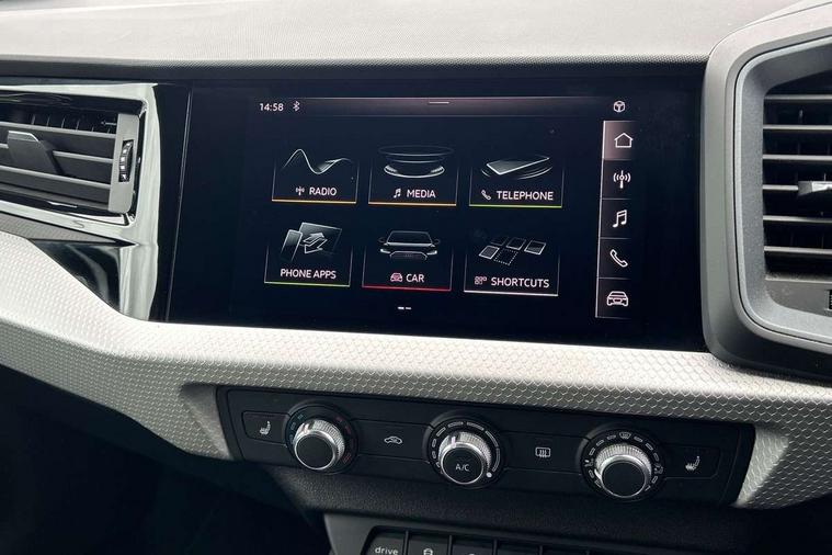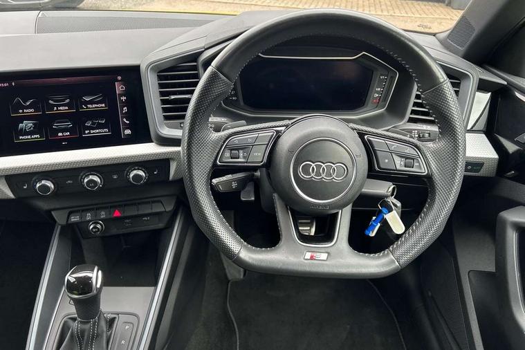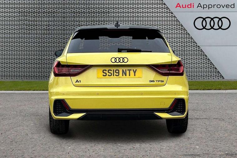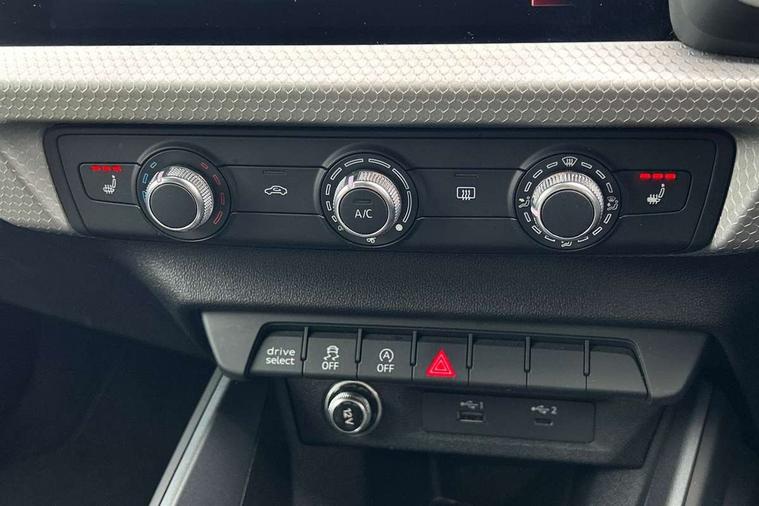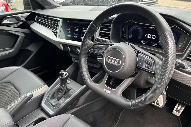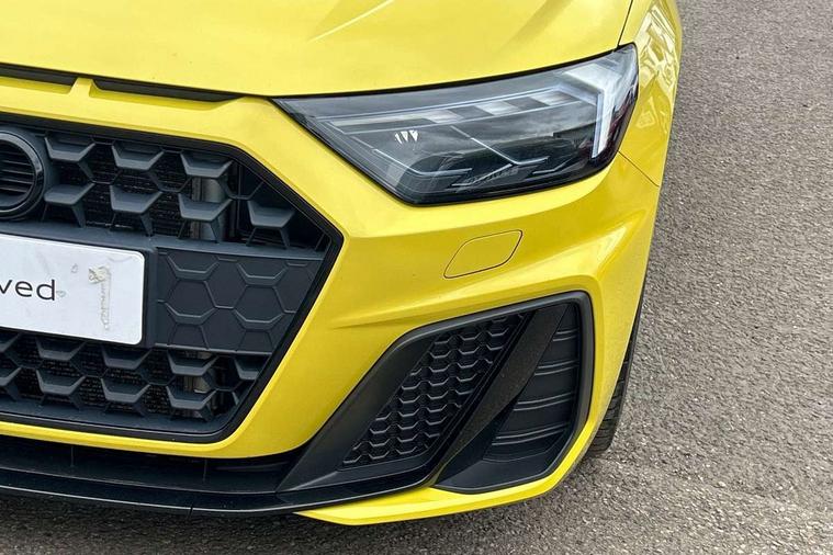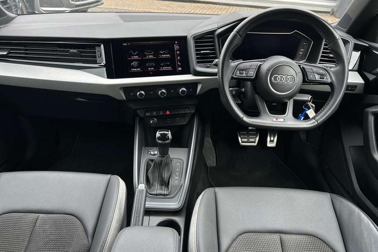 Aluminium trim for control switches, air vents and digital instrument cluster, Silver grey inlays polygon structure in diamond paint finish, Structured grey accent areas including air vents, door handle recesses and centre console in quartz paint finish, Black Styling pack - A1 Sportback, 18" 7 spoke rotor design alloy wheels in gloss anthracite black, diamond cut finish, Anti theft alarm, Anti theft wheel bolts and loose wheel warning, Audi pre-sense front with pedestrain and cyclist recognition, Immobiliser, Remote central locking with 2 remote folding keys, 1 x SDXC card reader, 1 x USB type C and 1 USB type A charging points, Audi music interface, Bluetooth audio streaming, DAB Digital radio, MMI radio plus with 8.8" colour MMI display screen and MMI touch, 3x3 point rear seatbelts, Brake assist function, Driver and front passenger airbag with front side and head airbags, Electronic Stability Control including ABS, EBD, ASR and EDL, Front and rear seatbelt reminder, Front passenger airbag deactivation switch, Hill hold assist, Seatbelt height adjustment for front seats, Seatbelt monitoring, Tyre pressure warning light, Warning triangle and first aid kit, Audi rings logo foil in black, Auto dimming rear view mirror, Body colour side sill mouldings, Darkened LED headlights with LED rear lights + dynamic rear indicators, Door sills with aluminium inlays and S Line logo, Electric front and rear windows, Exterior mirrors in contrast colour, Front side air inlets in grained matt black and C frame in titanium black, Heat insulating glass windscreen and side windows, Heated rear windscreen, Matt aluminium silver tailpipe trim, Matt black radiator grille frame, Matt platinum grey in front spoiler clip and rear diffuser clip, Metallic paint, Privacy glass - dark tinted rear and rear side windows from B-pillar backwards, Rain and light sensors, Rear fog lights, Rear wiper, S line badges on front wings, S line exterior bumpers, S line roof spoiler, Side air inlet frames titanium black, Side front spoiler lips in grained matt black, 12V socket in centre console with two cup holders, 3 rear seats, Black cloth headlining, Driver and passenger seat with manual height adjust with forward and backwards adjustment, Frequency alcantara/leather upholstery with contrast stitching in fine silver and S embossed logo + front sports seats, Front and rear black floor mats with contrast stitching in fine silver, Front head restraints, Height and reach adjustable steering wheel, ISOFIX child seat mounting in front passenger and rear outer seats, Leather gear knob with aluminium trim, Leatherette handbrake grip, Luggage compartment light with front and rear reading lights, Lumbar adjustment for front seats, Rear head restraints, Split folding rear seats, Stainless steel pedals, 10.25" Digital instrument cluster display screen, Audi connect safety emergency and service including E-call, Audi drive select, Audi smartphone interface, Automatic start/stop system, Bluetooth interface, Driver's information system, Electromechanical power steering, Lane departure warning system, Service interval indicator, Speed limiter, Voice control system, Washer fluid level indicator, Sports suspension,