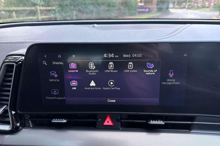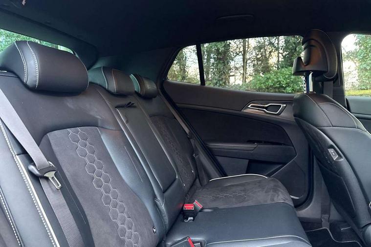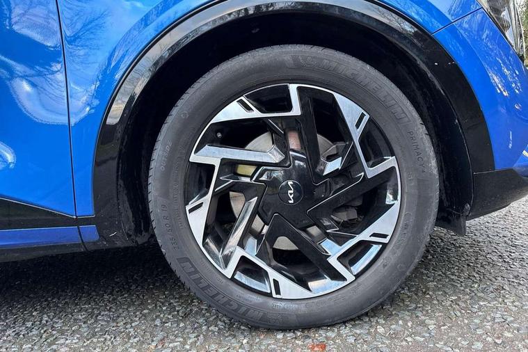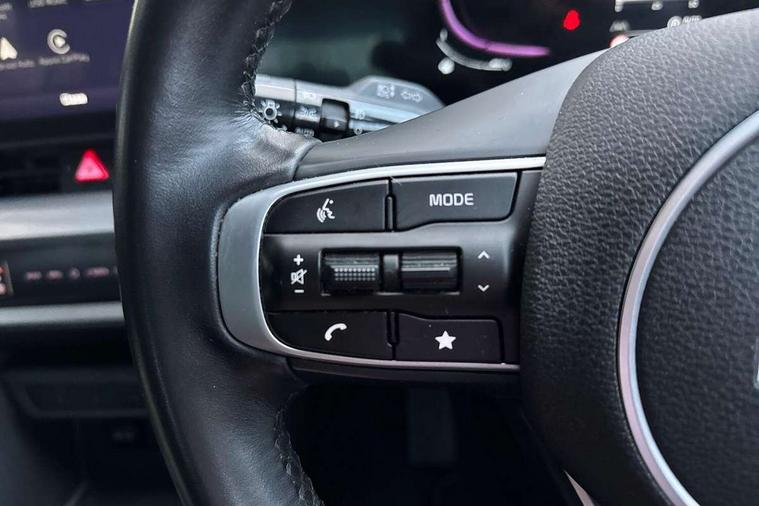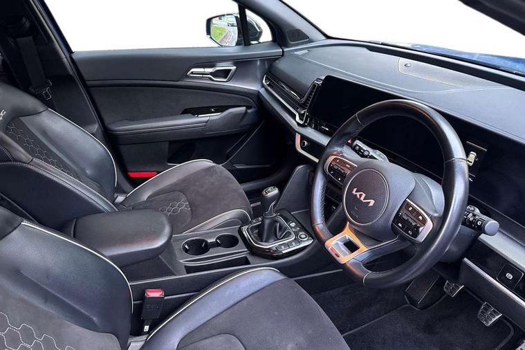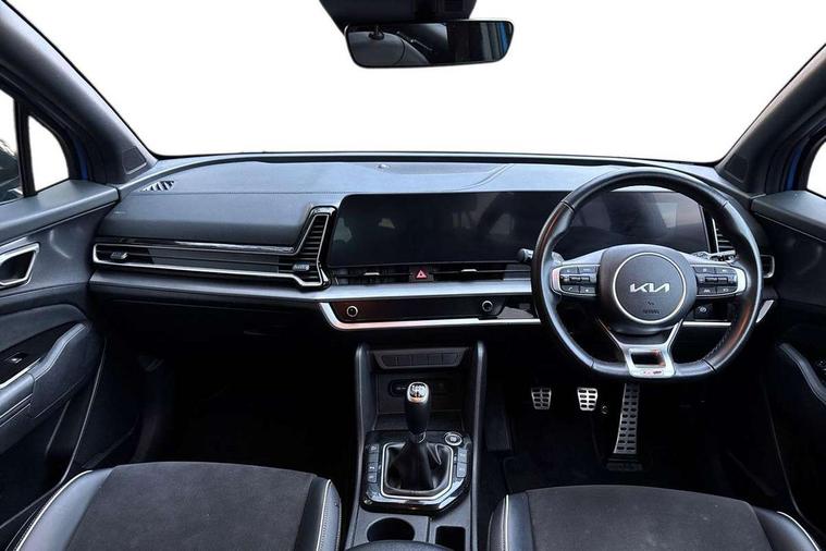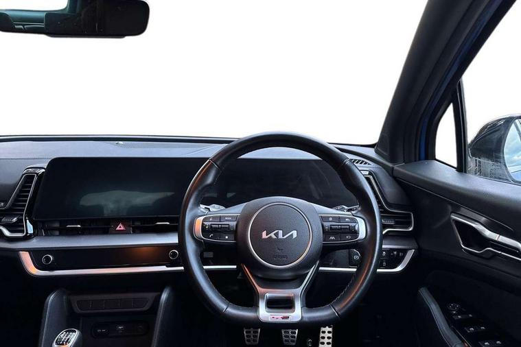 Aluminium pattern finish centre fascia and door garnish, 19" GT-Line alloy wheels, Tyre mobility kit, Advanced anti-theft system including immobiliser and alarm, Door deadlocks, Engine Start/Stop Button with Smart Entry System, Locking wheel nuts, Speed sensitive auto door locking, Visible vehicle identification number, 6 speaker audio system, Bluetooth audio streaming, DAB Radio with MP3, Rear USB port, Steering wheel mounted audio controls, USB C type charging ports on centre console, USB C type charging ports on side of front seats, USB port for connection of a media device, Active front headrests, All round 3-point seatbelts, Anti-lock braking system (ABS), Dual front side airbags, Dual horn, Electronic parking brake, Electronic stability control with downhill brake control, Front passenger airbag cut-off switch, Front seatbelt pretensioners + load limiters, Height adjustable front seatbelts, Hill start assist control (HAC), Impact sensing auto door unlocking, Multi collision brake assist, Rear door child safety locks, Rear seat alert system, Traction control, Twin curtain airbags, Twin front airbags, Tyre pressure monitoring system, All round electric windows with drivers and front passenger auto up/down function, Automatic headlight control system, Automatic window defogger, Backlite glass heated with timer, Body colour and black bumper with silver accents, Body colour exterior door handles, Body colour radiator upper garnish and door garnish, Electrically adjustable/heated/folding door mirrors with LED indicators, Front and rear skid plate - chrome, Gloss black door mirrors, Gloss black radiator grille, Gloss black side sill and wheel arch body mouldings, Glossy black roof rack, High beam assist, Interior electrochromic mirror, LED daytime running lights, LED front fog lamps, LED headlamps (low and high beam - MFR type), LED High mounted stop light, LED rear combination lamp, Rain sensing wipers with aero blades, Rear fog lamp, Rear privacy glass, Rear side wing doors, Rear spoiler, Rear wiper, Satin finished beltline, Tinted rear glass, Trailer stability assist, 12V power socket in front centre fascia and luggage compartment, 2nd row personal lamps, 3 seat bench in 2nd row, 3 x passenger assist grips, 40/20/40 split folding rear seat, All-round height adjustable headrests, Black headlining, Centre console storage box, Cupholders in rear armrest, D-Shaped sports leather steering wheel and perforated inserts with GT-Line logo, Door courtesy lamps, Drink holder at centre armrest, Driver and front passenger side sunvisors with illuminated vanity mirrors, Driver's seat manual height adjust, Drivers seat power lumbar support, Front and rear door storage, Front seat and rear pockets, Front/rear centre armrests, Gear shift indicator, Glovebox illumination, Heated front seats, Heated steering wheel, Interior door lock/unlock function, ISOFIX Child seat top tethers and anchor fixings outer rear seats, Luggage area light, Luggage area load cover, Luggage net hooks, Metal paint interior door handles, Overhead console lamp, Rear cabin light, Rear coat hooks, Single front passenger seat, Sports pedals, Suede leather upholstery, Three zone climate control, Tilt/telescopic adjustable steering wheel, Ventilation ducts to rear compartment, 12.3" Display with navigation, 4.2" supervision colour cluster display, Apple car play/Android Auto with voice control, Cruise control + speed limiter, Drive mode selector, E-call, Forward collision avoidance assist (FCA) - city/pedestrian/cyclist/junction covering, Front and rear parking sensors, Intelligent speed limit assist, Kia Connect (UVO), Lane Following Assist (LFA), Lane keep assist, Low washer fluid warning, Rear view monitor, Reversing camera system integrated into centre fascia screen, Speed sensitive power steering, Trip computer, Windscreen washer level indicator, Intelligent Stop and Go,