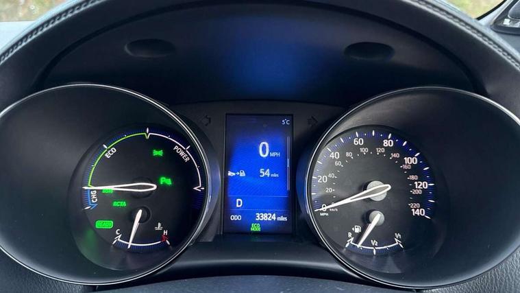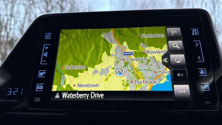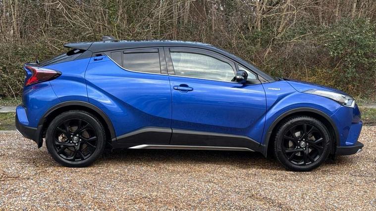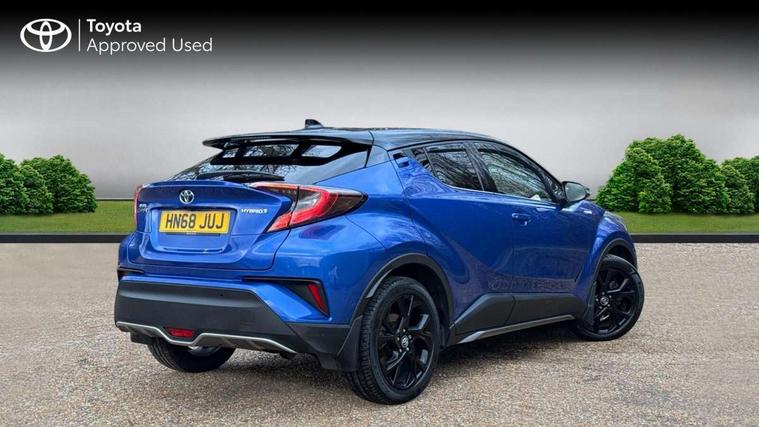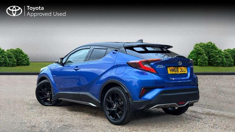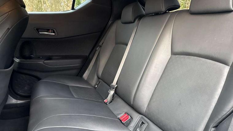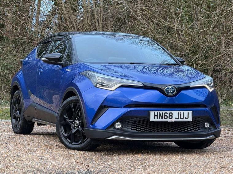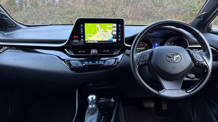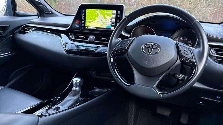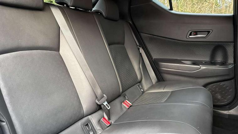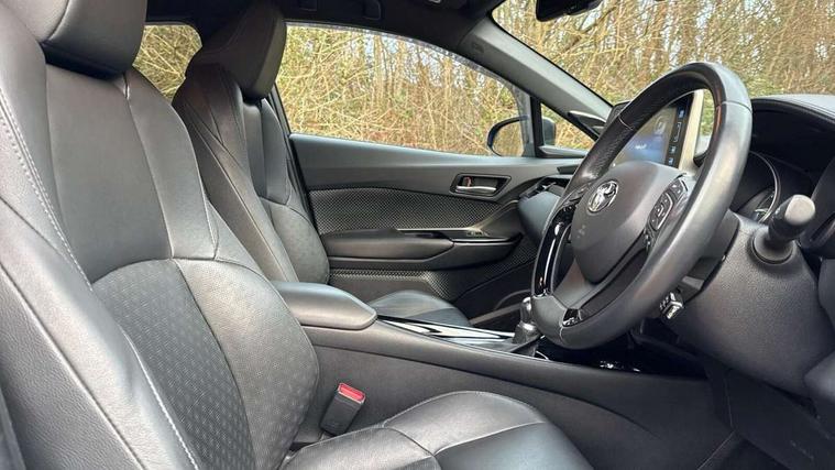 Silver dash inserts, Parking pack - C-HR, 18" 5 twin spoke matt black alloy wheels, Tyre repair kit, Alarm, Immobiliser, Remote central locking, Smart entry, 6 speakers, Auxiliary input socket, DAB Digital radio, Steering wheel mounted controls, USB connection, 3x3 point rear seatbelts, ABS+EBD+Brake assist, Airbag deactivation switch, Driver/Front Passenger airbags, Driver/front passenger side airbags, Drivers knee airbag, ESP + traction control, Front and rear curtain airbags, Front and rear seatbelt reminder, Hill start assist control (HAC), Rear child proof door locks, Road sign information display, Toyota safety sense, Tyre pressure monitoring system, Auto dimming rear view mirror, Auto folding mirrors, Auto high beam, Automatic headlight levelling, Bi-tone black roof, Body colour door handles, Body colour heated door mirrors, Body coloured bumpers, Electric folding/heated door mirrors with integrated indicators, Follow me home headlights, Front and rear electric windows, Heated rear windscreen, LED daytime running lights, LED front fog lights, LED Headlights, LED rear lights, Privacy glass, Rain sensitive windscreen wipers, Rear spoiler, Rear wiper, Shark fin roof aerial, 12V Accessory socket, Ambient lighting, Child seat anchorage points, Chrome interior door handles, Cloth upholstery, Driver/passenger sunvisors and illuminated vanity mirrors, Dual zone automatic air conditioning, Folding rear seats, Front and rear door pockets, Front centre armrest, Front cupholders x 2, Front head restraints, Glovebox illumination, Heated front seats, Height adjustable drivers seat, Illuminated door sills, Illuminated entry system, Leather gear knob, Lumbar support, Nappa leather steering wheel, Rear headrests, Tilt/telescopic steering column, Whiplash Injury Lessening (WIL) feature (active headrest) for seats, 4.2" Colour TFT driver information display, 8" touch screen, Adaptive cruise control, Adjustable speed limiter, Bluetooth system, Collision prevention assist, Lane change assist and blind spot monitor, Lane departure warning system, Lights on warning, PAS, Rear cross traffic alert, Reversing camera, Touch 2 Go navigation system, Traffic sign recognition, Trip computer, Vehicle Stability Control (VSC),