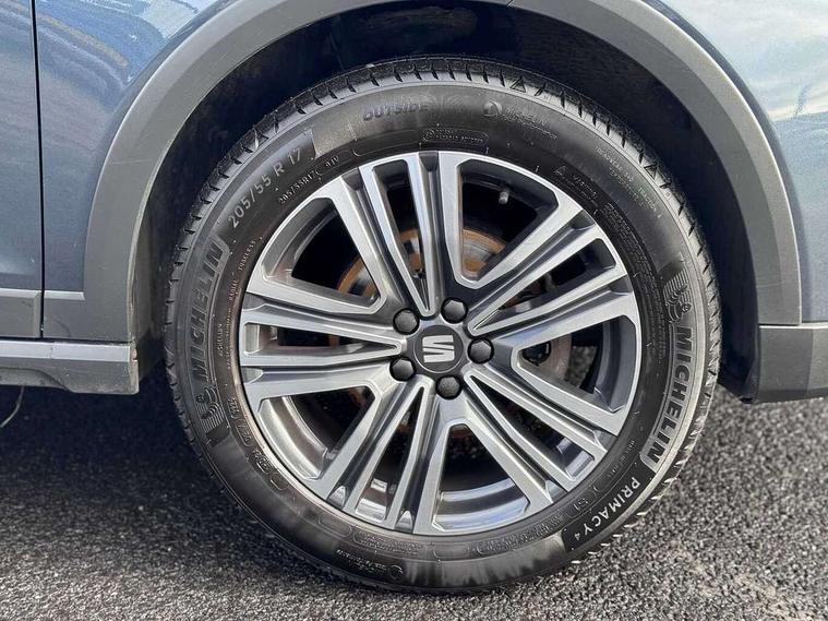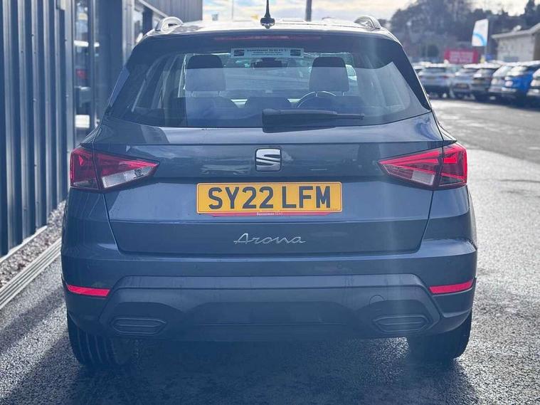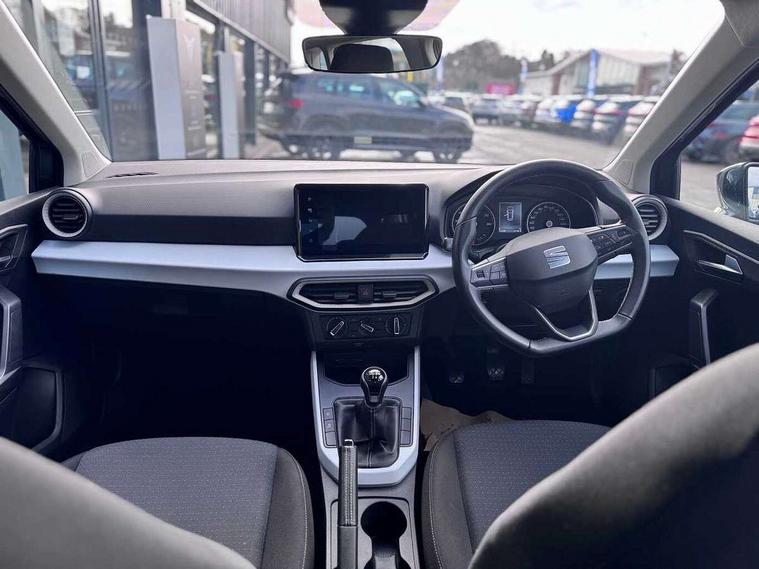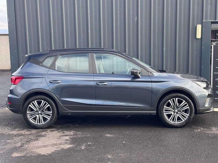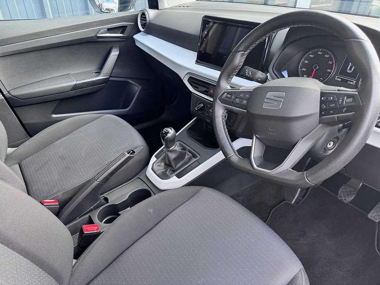 Titan black dashboard, Connectivity pack plus - Arona, Interior chrome pack - Arona, 17" Dynamic machined alloy wheels, Electronic engine immobiliser, Locking wheel bolts, Remote central locking + deadlocks, Bluetooth interface for hands free and audio streaming, DAB digital radio and AM/FM radio, Steering wheel mounted audio controls, 3 point seatbelts on all rear seats, ABS, Active front headrests, Child locks on rear doors, Driver and front passenger airbags with front passenger airbag de activation, front side and curtain airbags, Electronic stability control, Emergency Brake Assist (EBA) and front assist, Front and rear seatbelt reminder, Hill hold control, Multi-Collision braking, Tiredness recognition system, Traction control, Tyre pressure monitoring system, Anti theft roof antenna, Automatic activation of hazard warning lights, Black roof rails and window surrounds, Black window trims, Body coloured bumpers, Body coloured door handle inserts, Body coloured door mirrors, Dimming rear view mirror, ECO LED automatic headlights and LED daytime running lights, Electric adjustable door mirrors, Electric front/rear windows, Hidden exhaust pipe, Protective side mouldings, Rain sensing wipers, Rear side wing doors, Rear spoiler, Rear window wash/wipe, Third brake light, Visible VIN plate, Windshield wiper with intermittent control and potentiometer, 2 cupholders, 3 seat bench in 2nd row, 60/40 split folding rear seat, Air conditioning, Cloth upholstery, Double boot floor, Driver sunvisor with covered mirror + card holder, Dust/pollen filter, Flat bottomed leather steering wheel/gear knob/handbrake, Front courtesy light with front reading lights, Gear shift indicator, Grey interior roof, Height adjustable front seats, Height/reach adjustable steering column, Honey mustatd coloured air vent, Illuminated boot, Instrument lighting with brightness control, ISOFIX points in outer rear seats with top tether anchorage points, Passenger sunvisor with vanity mirror, Single front passenger seat, Two front and three rear height adjustable headrests, 'Lights On' Reminder warning buzzer, Cruise control and speed limiter, Digital clock, E-call, Electric speed sensitive power steering, Full Link Smartphone Integration with Mirror Link, Apple Car Play, Google Android Auto with USB cable for Apple and Android compatibility, Lane keeping system, Low fuel warning light, Outside temperature display, Rear parking sensor, RPM counter, Seat connect with safety, service, remote and online, Trip computer,