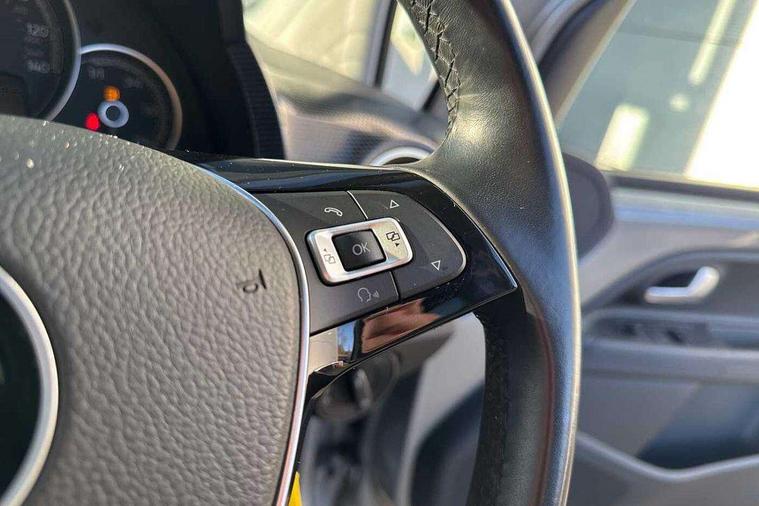 Digital clock, Lane assist, Multifunction computer, One touch indicators, Rev counter, Speed sensitive power steering, Speedometer, electronic odometer and fuel gauge, Volkswagen connect, Body lowered sports suspension, Galvanished body, Start/stop function with battery regeneration, 6 speakers, Composition colour system with 5" screen, DAB, AUX in socket, SD card, MP3/WMA/AAC, 4 X 20W, bluetooth, audio connection and USB connectivity, Smartphone answering button on multifunction steering wheel with audio over the vehicle speaker system, Smartphone interface navigation system, Antenna, Black door mirrors with integrated indicators, Black radiator grille, Body colour door handles, Body coloured bumpers, Electric front windows, Halogen clear headlights with integrated indicators and range adjustable, Heated rear window, High level 3rd brake light, Manually dimming rear view mirror, R-Line badge on front side panels, Rear fog lights, Rear tinted glass from B pillar backwards, approx 65% tinted, Rear wash/wipe, Unique R-Line design front and rear bumpers, Windscreen wipers intermittent wipe, 12V accessory power point in centre console, 2 cup holders in the front and rear centre console, Ambient lighting, Cooled glovebox, Driver seat height adjust, Drivers and front passengers easy entry sliding seat with memory function, Drivers and front passengers sun visors with vanity mirrors, Folding front seat backrest release on front passenger seat, Front head restraints, Fusion cloth upholstery, Heating/ventilation unit with 4 speed fan, Height adjustable rear seat head restraints (x2), Height adjustable steering wheel, Interior light delay, Isofix Preparation 2 Rear child seats, Jack and tool kit, Light grey roof lining, Luggage compartment cover, Luggage compartment lighting, Multifunction leather trimmed three-spoke steering wheel, gear knob and handbrake grip, Storage compartment in front doors, Two rear seats with 60/40 split folding rear seat backrest, Variable boot floor, Winter pack - Up, 3 point front seatbelts with pre-tensioners, Anti-lock braking system with EDL, EBD + TCS, Curtain airbags for front and rear passengers, Driver and front passenger airbag with front passenger airbag deactivation, Driver/front passenger side airbags, Engine drag torque control, Front disc brakes, HBA (Hydraulic Brake Assist), High tone horn, Hill hold control, Rear drum brakes, Two 3 point rear seatbelts, Tyre pressure loss indicator, Volkswagen roadside assistance, Warning buzzer and light for front and rear seat belts if unfastened, Electronic engine immobiliser, Locking fuel filler cap, Remote central locking with 2 remote folding keys, Black cube 2D upper dashpad, Chrome surrounds to the air vents, radio controls and air conditioning,