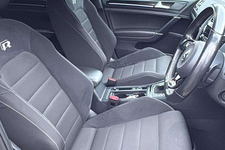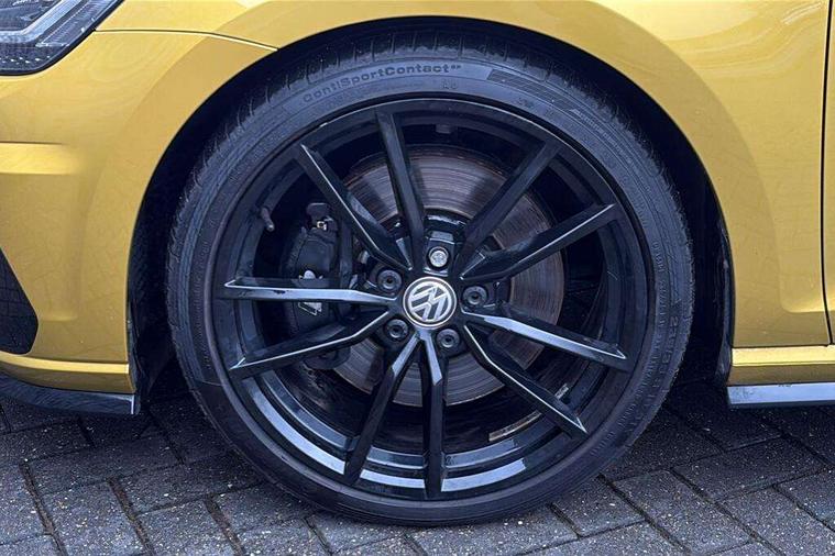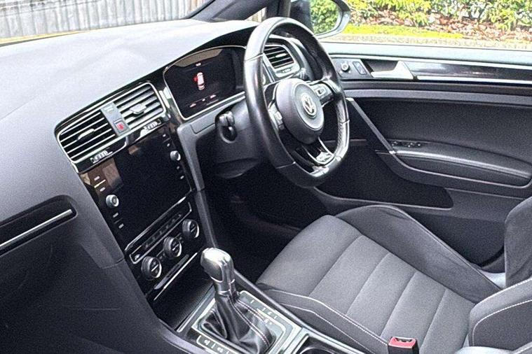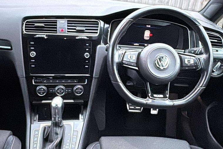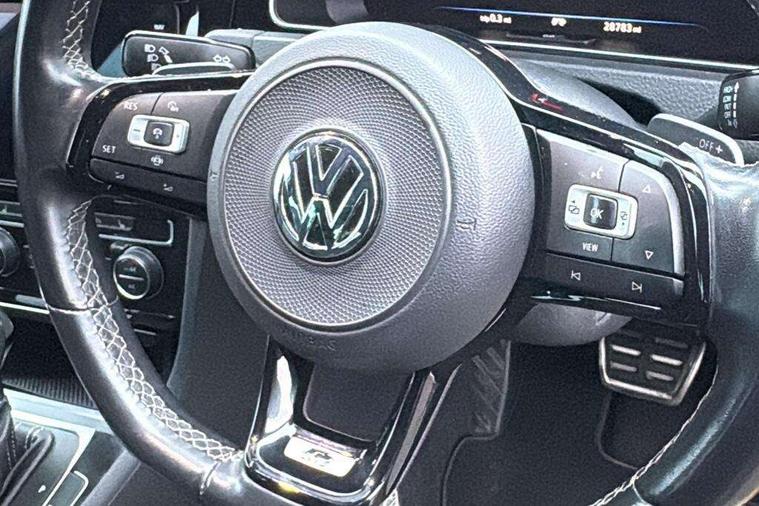 Carbon touch decorative inserts, Chrome plated air vent surround, Chrome plated electric mirror adjustment light switch surround, Piano black centre console, Ambient lighting pack - Golf, Convenience Pack - Golf, Light and Sight pack - Golf, Mirror pack - Golf, Space saver spare wheel, Alarm with interior protection and deactivation via infotainment system, Electronic engine immobiliser, Keyless entry with start/stop button on centre console, Remote central locking with 2 remote folding keys, Composition media system, DAB Digital radio receiver, MDI multi device interface, MP3/WMA compatability, Multi device interface (MDI) with USB connection, Premium USB cable in choice of either Apple or Android smartphone compatibility, SD card slot, SMS Functionality, Title and cover art display, 4 X 20W output, USB connection and socket, USB and SD card connectivity, Volkswagen media control, 3 rear three point seatbelts, Airbags - Driver's and front passenger's, curtain airbag, Driver's knee, front side impact and passenger's airbag deactivation switch, Anti-lock Braking System (ABS) with Hydraulic Brake Assist (HBA), Automatic post collision braking system, Black brake calipers, Child locks on rear doors, Driver/Passenger optimised head restraints, Electronic parking brake with auto hold, Electronic stability control (ESC) including Electronic differential lock (EDL) and ASR (Traction control) with deactivation via infotainment system, Pre crash preventive occupant protection, Three point height adjustable front seatbelts with tensioners, Tyre pressure loss indicator, 3D-LED tinted rear light clusters with indicator sweep function, Automatic dimming rear view mirror/rain sensor, Black rear diffuser, Body colour door handles, Body colour rear roof spoiler, Body colour sports bumpers, Chrome trimmed front air intake surrounds, Electric front windows, Electric rear windows, Electrically adjustable and heated door mirrors, Extended sill strips flared, Fully galvanised body, Heated rear windscreen, High level 3rd brake light incorporating LED Technology, Honeycomb radiator grille - black, LED headlights with dynamic light assist, Range adjustable headlights via infotainment system with LED daytime running lights, Rear fog lamp, Rear number plate lights incorporating LED technology, Rear window aerial, Rear window wash/wipe with intermittent wipe, Reflectors in all doors, Remote electrically foldable door mirrors, door mirror puddle lights and reverse activated kerb-view adjustment on passengers door mirror, Windscreen wipers/ intermittent wipe + 4 position delay, 12V socket in luggage compartment, 3 rear headrests, 4 load lashing points in luggage compartment, 60/40 split folding rear seat backrest, Bag hook in luggage compartment x 2, Black headlining, Chrome pedals, Climate control - 2 zone electronic air conditioning with automatic air recirculation and allergy filter, Cooled glovebox, Dust/pollen filter, Front + rear carpet mats, Front centre armrest with storage compartment and two rear air vents, Front seat back storage pockets, Grab handles front x 2, rear x 2 with integrated coat hooks, Height and reach adjustable steering wheel, Illuminated door sills, Illuminated vanity mirrors, Instrument lighting white adjustable panel illumination, Interior light delay, Isofix preparation for 2 rear child seats, LED front and rear reading lights, Load through provision with rear centre armrest and cupholders x2, Luggage compartment light, Multifunction leather steering wheel with R Logo and leather trimmed gear knob including paddle shift, Overhead storage box, Storage box in luggage compartment, Storage compartment in roof console with cover, Storage compartments in front doors, Storage compartments in rear doors, Stowable luggage compartment cover, Sun visors, Variable boot floor, height adjustable and removable, 'Lights On' Reminder warning buzzer, 8" colour touch screen, ACC - Adaptive cruise control with front assist, forward collision warning, distance monitoring, city emergency brake and speed limiter, Bluetooth telephone and audio connection for compatible devices, Brake pad wear indicator warning light, Car information display, Driver alert system, Driver profile selection, Driving Mode Selection with four preset modes - Eco, normal, sport or individual modes, Front assist, radar sensor controlled distance monitor, city emergency braking + predictive pedestrian protection, Front assistant collision mitigation, Instrument cluster in white, Lane assist with dynamic light assist and traffic sign recognition, Multifunction computer with visual gear change recommendation for fuel consumption, Power assisted speed sensitive electro-mechanical steering, Rear view camera, Speedo, rev counter, electronic odometer, trip, service interval display, exterior temperature and fuel gauge, Stop/start system, Ultrasonic front and rear optical and audible parking sensors, Warning buzzer and light for front seatbelts unfastened, Anti-tramp function, Battery regeneration during braking, Lowered sports suspension,
