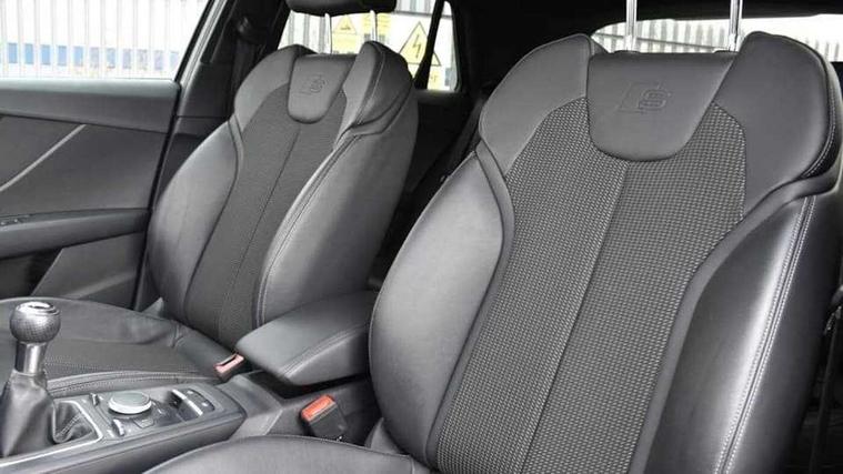 Aluminium interior element, Non smoking pack - Q2, Anti theft alarm, Anti theft wheel bolts, Central locking system with remote control key, Electronically operated child locks, 2 x SDXC card reader, Audi music interface - apple iPod, apple iPhone, USB storage media, compatible MP3 players, 2 x USB charging points and 1 x Aux-in, CD Drive, DAB digital radio and AM/FM radio, MMI radio plus with 7" colour MMI screen and MMI controller, 3x3 point rear seatbelts, 6 airbags - Front, curtain and front side airbags, Electromechanical parking brake, Electronic stabilisation control including ABS, ASR and EDL, Extended and proactive pedestrian protection, Hill hold assist, Multi collision brake assist, Pre-sense front with pedestrian recognition, Seatbelt monitoring, Tyre pressure warning light, Warning triangle and first aid kit, Black window trims, Bumper in full body colour paint finish, Chrome exhaust tailpipe, Electrically adjustable and heated door mirrors with integrated LED side indicators, Front and rear electric windows, Front underbody guard and rear diffuser trim in selenite silver, Front windscreen with grey tinted sunband, Headlight washers, Interior mirror, LED headlights with LED rear lights + dynamic rear indicators, LED indicator lights, Manual folding door mirrors, Rain and light sensors, Rear wiper, S Line badges on the front wings, S Line body styling - front and rear bumpers, side skirts, radiator grille, rear diffuser insert and front air intakes, 60/40 split folding rear seat bench, Black cloth headlining, Floor mats with contrast stitching, Front centre armrest, Front headrests, Front sport seats with S embossed logo, Height/reach adjust steering wheel, Illuminated door sill trims with S logo, ISOFIX child seat mounting for front passenger with airbag deactivation and outer rear seat including top tether attachment point for outer rear seats, Manual seat adjustment including seat height adjustment for front seats, Stainless steel pedals, Storage compartments - Glovebox, cupholder compartment in centre console, storage compartment in rear centre console, front and rear door pockets, Three rear headrests, Audi drive select, Audi smartphone interface, Automatic start/stop system with recuperation, Bluetooth interface includes bluetooth audio streaming, Cruise control, MMI - Multi Media Interface control system, MMI SD card integrated nav with 3D map display, dynamic route guidance with TMC, MMI search, natural voice recognition and myAudi special destinations, Power operated tailgate, Progressive steering, Service interval indicator, Dynamic suspension,