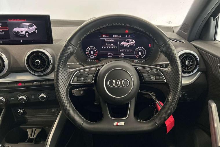 Aluminium interior element, Matt brushed aluminium trim inlays, Black styling pack - Q2, Comfort and sound pack - Q2, Anti theft alarm, Anti theft wheel bolts, Remote central door locking, 2 x SDXC card reader, DAB Digital radio, 3x3 point rear seatbelts, 6 airbags - Front, curtain and front side airbags, Electromechanical parking brake, Electronic stabilisation control including ABS, ASR and EDL, Front passenger airbag deactivation, Hill hold assist, Pre-sense front with pedestrian recognition, Seatbelt monitoring, Tyre pressure warning light, Warning triangle and first aid kit, Auto dimming rear view mirror, Black window trims, Bumper in full body colour paint finish, Electrically adjustable, folding, auto dimming and heated door mirrors with integrated LED side indicators, Front windscreen with grey tinted sunband, LED daytime running lights, LED headlights with LED rear lights, LED third brake light, Privacy glass - dark tinted rear and rear side windows from B-pillar backwards, Rear side wing doors, Rear wiper, Variable front intermittent wipers, Wheel arch trims in manhattan grey, 12v socket in front, 3 seat bench in 2nd row, 3 spoke flat bottomed multi-function leather sport steering wheel, 4-way electric lumbar support for front seats including seat height adjustment for both front seat, 60/40 split folding rear seat bench, Black cloth headlining, Electronically operated child locks, Front and rear head restraints, Front centre armrest, Front/rear floor mats, Height/reach adjust steering wheel, Illuminated door sill trims with S logo, ISOFIX child seat mounting in front passenger and rear outer seats, Manual air conditioning, Single front passenger seat, Stainless steel pedals, Tool kit, Audi connect navigation and infotainment includes innovative services, Audi connect remote and control connects your vehicle to your smartphone, Audi drive select, Audi drive select with efficiency, Audi smartphone interface, Audi virtual cockpit, Automatic start/stop system with recuperation, Bluetooth interface includes bluetooth audio streaming, Cruise control, E-call, MMI navigation plus with MMI touch, Power operated tailgate, Progressive steering, Rear parking sensors,