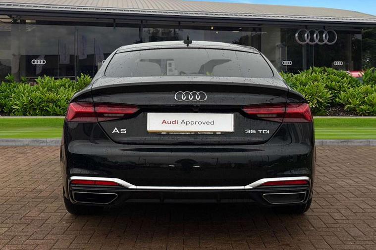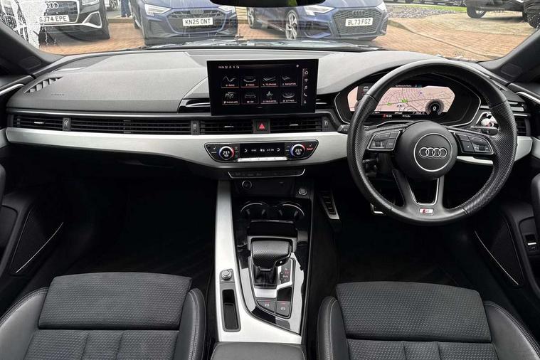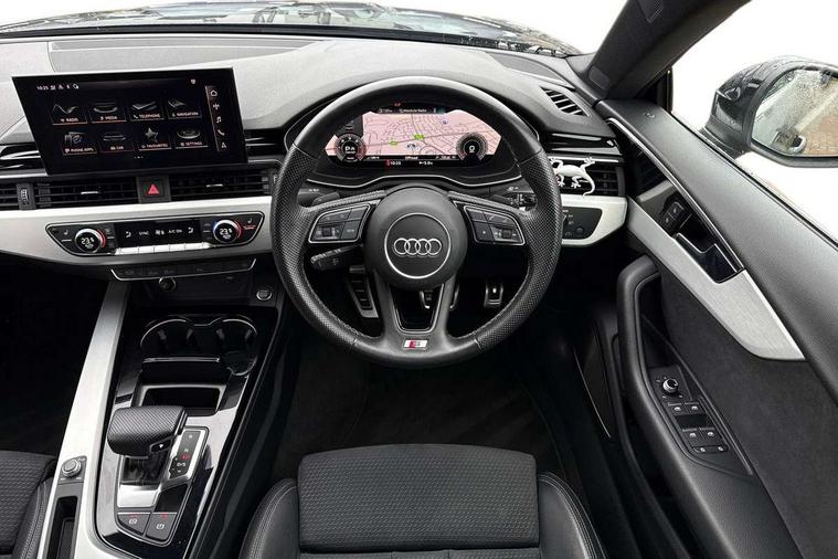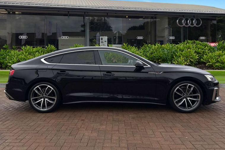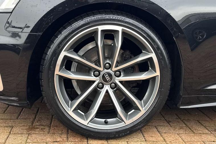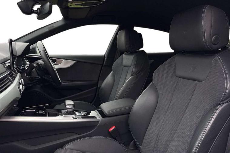 Matt brushed aluminium inlays, LED interior light pack - A5/RS5, Tyre repair kit, Anti theft alarm system, Anti theft wheel bolts, Immobiliser, Keyless Go, Remote central locking, 8 passive loudspeakers, CD player, DAB digital radio reception, Two additional USB ports for rear passenger in rear centre console, Two SDXC card slots, 3x3 point rear seatbelts, 6 airbags - Driver, front passenger, curtain and side airbags, Electromechanical parking brake, Electronic Stabilisation Control (ESC) including ABS, ASR and EDL, Front passenger airbag deactivation, Height adjustable front seatbelts, Hill hold assist, Manual child lock in rear doors, Multi collision brake assist, Pop-up bonnet for pedestrian protection, Pre sense city, Seatbelt monitoring, Tyre pressure warning, Variable restraint system, Warning triangle and first aid kit, Audi matrix LED headlights with LED rear lights + dynamic front and rear indicators, Auto dimming door mirrors, Auto dimming rear view mirror, Body colour bumpers, Body colour door handles, Body colour front spoiler lip, Body colour side sill trim, Body coloured door mirrors, Electric adjustable heated door mirrors, Electric folding door mirrors, Electric front windows, Front fog lights, Honeycomb structure radiator grille in grained matt black, Kerb-view function for passenger side, LED daytime running lights, LED side indicator lights integrated into door mirrors, LED third brake light, Matt aluminium silver tailpipe trim, Privacy glass, Rain and light sensors, Rear side wing doors, S line badges on front wings, S line front and rear bumpers with side skirts, S Line rear diffuser in matt titanium black with trim strip in matt aluminium silver, Side air inlets in grained matt black with matt aluminium silver inlay, Variable front intermittent wipers, Windscreen with acoustic glazing, 3 seat bench in 2nd row, 4 way electric lumbar support for driver and front passenger, 40/20/40 split folding 3 seater rear bench seat, Adjustable steering column, Black cloth headlining, Black perforated leather gearknob, Contrast stitching on seats, steering wheel and gear lever gaiter, Deluxe 3 zone electronic climate control, Front centre armrest, Front head restraints, Front/rear floor mats, Heated front seats, Illuminated door sill trim with S logo, ISOFIX child seat mounting and top tether, Luggage compartment mat, Manual seat adjustment, Rear centre armrest, Rear headrests, Single front passenger seat, Stainless steel pedals, Sunvisors with vanity mirrors, Tool kit, Audi connect safety and service (e-call), Audi connect with Amazon Alexa Integration, Audi drive select (Auto, Comfort, Dynamic, Efficiency and Individual), Audi parking system plus with front and rear sensors, Audi smartphone interface, Audi virtual cockpit - 12.3" full colour digital instrument cluster, vehicle/engine speed, Radio/media information+Driver assistance systems, Automatic start-stop system with coasting functionality and efficiency programme, Bluetooth interface, Electro-mechanical power steering, Email, calendar and text messages displayed via MMI, MMI nav+ with MMI touch - 10.1" high resolution MMI display, touch sensitive, 3D map, route/country info, dynamic route guide, personal route assist, Power operated tailgate, Rear view camera, Service interval indicator, Voice control system, Diesel particulate filter, Sports suspension lowered by 23mm,