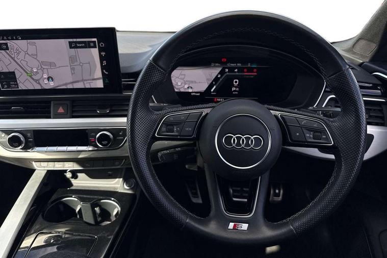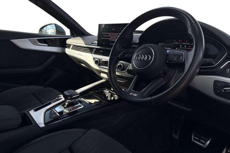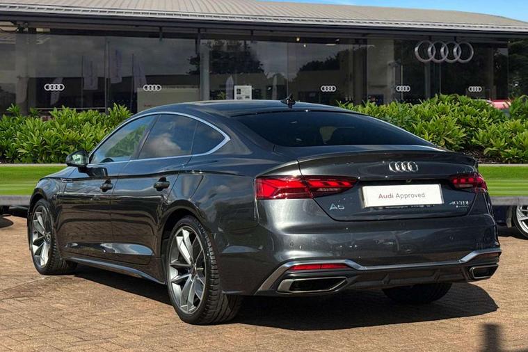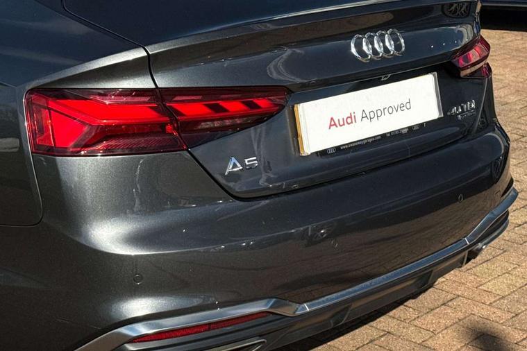Matt brushed aluminium inlays, LED interior light pack - A5/RS5, Tyre repair kit, Anti theft alarm system, Anti theft wheel bolts, Immobiliser, Keyless Go, Remote central locking, 8 passive loudspeakers, CD player, DAB digital radio reception, Two additional USB ports for rear passenger in rear centre console, Two SDXC card slots, 3x3 point rear seatbelts, 6 airbags - Driver, front passenger, curtain and side airbags, Electromechanical parking brake, Electronic Stabilisation Control (ESC) including ABS, ASR and EDL, Front passenger airbag deactivation, Height adjustable front seatbelts, Hill hold assist, Manual child lock in rear doors, Multi collision brake assist, Pop-up bonnet for pedestrian protection, Pre sense city, Seatbelt monitoring, Tyre pressure warning, Variable restraint system, Warning triangle and first aid kit, Audi matrix LED headlights with LED rear lights + dynamic front and rear indicators, Auto dimming door mirrors, Auto dimming rear view mirror, Body colour bumpers, Body colour door handles, Body colour front spoiler lip, Body colour side sill trim, Body coloured door mirrors, Electric adjustable heated door mirrors, Electric folding door mirrors, Electric front windows, Front fog lights, Honeycomb structure radiator grille in grained matt black, Kerb-view function for passenger side, LED daytime running lights, LED side indicator lights integrated into door mirrors, LED third brake light, Matt aluminium silver tailpipe trim, Privacy glass, Rain and light sensors, Rear side wing doors, S line badges on front wings, S line front and rear bumpers with side skirts, S Line rear diffuser in matt titanium black with trim strip in matt aluminium silver, Side air inlets in grained matt black with matt aluminium silver inlay, Variable front intermittent wipers, Windscreen with acoustic glazing, 3 seat bench in 2nd row, 4 way electric lumbar support for driver and front passenger, 40/20/40 split folding 3 seater rear bench seat, Adjustable steering column, Black cloth headlining, Black perforated leather gearknob, Contrast stitching on seats, steering wheel and gear lever gaiter, Deluxe 3 zone electronic climate control, Front centre armrest, Front head restraints, Front/rear floor mats, Heated front seats, Illuminated door sill trim with S logo, ISOFIX child seat mounting and top tether, Luggage compartment mat, Manual seat adjustment, Rear centre armrest, Rear headrests, Single front passenger seat, Stainless steel pedals, Sunvisors with vanity mirrors, Tool kit, Audi connect safety and service (e-call), Audi connect with Amazon Alexa Integration, Audi drive select (Auto, Comfort, Dynamic, Efficiency and Individual), Audi parking system plus with front and rear sensors, Audi smartphone interface, Audi virtual cockpit - 12.3" full colour digital instrument cluster, vehicle/engine speed, Radio/media information+Driver assistance systems, Automatic start-stop system with coasting functionality and efficiency programme, Bluetooth interface, Electro-mechanical power steering, Email, calendar and text messages displayed via MMI, MMI nav+ with MMI touch - 10.1" high resolution MMI display, touch sensitive, 3D map, route/country info, dynamic route guide, personal route assist, Power operated tailgate, Rear view camera, Service interval indicator, Voice control system, Diesel particulate filter, Sports suspension lowered by 23mm,