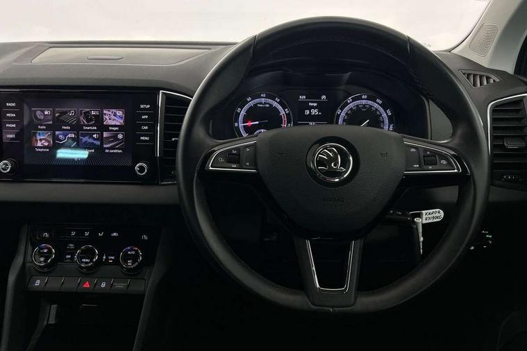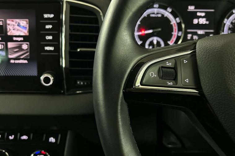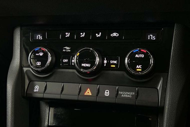 Chrome framed air vents, Storage on wheel cover, Alarm with interior monitoring, back up horn and tilt sensor with safe function, Electronic engine immobiliser, Remote central locking with 2 remote folding keys, DAB radio with Bluetooth, SD card slot, USB connection, Airbags - Front side, head, knee and curtain, Automatic door unlocking in case of crash, Automatic fuel cut off in case of crash, Driver airbag, Electronic parking brake with auto hold function, Emergency rear braking signal, ESC including ABS, MSR, ASR, EDS, HBA, DSR, RBS, MKB and traction control, Front assist radar scanning of the space in front of the car with automatic braking, Hill hold control, Passenger airbag with switch-off function, Pedestrian monitor, Seatbelt reminder signalisation and pretensioner for all seats, Three point seatbelts rear, Two tone horn, Tyre pressure display, Tyre pressure monitor, Acoustic glass, Aero front windscreen wipers with intermittent function, Automatic headlight control system, Body colour door mirrors and handles, Body coloured bumpers, Electrically adjustable heated folding and auto dimming door mirrors with boarding spots, Heated rear windscreen, LED rear lights with high functionality, Light assistant (coming/leaving home/tunnel light), Privacy glass, Safety reflectors on front doors, Third brake light, 1.5 litre bottle holders in driver and front passenger door panels, 12V socket in boot, 12v socket in front centre armrest with storage compartment and rear air vents, 2 Folding hooks and nets in boot, 2 Front readings lights for driver and passenger, 3 rear height adjustable headrests, 4 foldable roof handles with rear coat hooks, 4 lashing points on luggage floor, Backrest release, Cargo elements in boot, Chrome inner door handles, Driver and passenger seats height adjust, Dual zone climate control, Folding tables on the front seat backrests, Front seat and rear pockets, Height adjustable front three point seats belts with tensioners, Height/reach adjust steering wheel, Ice scraper, Illuminated and cooled glovebox, Illuminated luggage compartment, Isofix child seat preparation outer rear, Manual lumbar support for front seats, Net programme in boot, Pen holder, Pollen filter, Rear boot cover, Rear reading lights, Rear seats fixed folding and divided 60:40, Removable LED torch in the boot, Safety vest holder, Storage box in upper central dashboard closed, Storage net on centre console passenger side, Sunglasses storage compartment, Sunvisors with illuminated vanity mirrors, Umbrella under passenger seat, Driver alert system, Driver fatigue sensor, Driver profile selection, Electro-mechanical PAS, Outside temperature gauge, Service interval indicator, Start/stop system with regenerative braking,