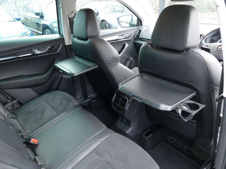 Chrome framed air vents, Storage on wheel cover, Alarm with interior monitoring, back up horn and tilt sensor with safe function, Electronic engine immobiliser, Keyless entry and keyless start with safe system, Remote central locking with 2 remote folding keys, DAB radio with Bluetooth, SD card slot, USB connection, Airbags - Front side, head, knee and curtain, Automatic door unlocking in case of crash, Automatic fuel cut off in case of crash, Brake energy regeneration, Driver airbag, Electronic parking brake with auto hold function, Emergency rear braking signal, ESC including ABS, MSR, ASR, EDS, HBA, DSR, RBS, MKB and traction control, Front assist radar scanning of the space in front of the car with automatic braking, Hill hold control, Passenger airbag with switch-off function, Pedestrian monitor, Seatbelt reminder signalisation and pretensioner for all seats, Three point seatbelts rear, Two tone horn, Tyre pressure display, Tyre pressure monitor, Acoustic glass, Aero front windscreen wipers with intermittent function, Automatic headlight control system, Body colour door mirrors and handles, Body coloured bumpers, Chrome outside aluminium bar around the window, Chrome roof rails, Full LED headlights + adaptive front light system + LED daytime running lights and front cornering fog lights, Headlight washers, Heated rear windscreen, LED rear lights with high functionality, Light assistant (coming/leaving home/tunnel light), Privacy glass, Safety reflectors on front doors, Third brake light, 1.5 litre bottle holders in driver and front passenger door panels, 12V socket in boot, 12v socket in front centre armrest with storage compartment and rear air vents, 2 Folding hooks and nets in boot, 2 Front readings lights for driver and passenger, 3 rear height adjustable headrests, 4 foldable roof handles with rear coat hooks, 4 lashing points on luggage floor, Backrest release, Cargo elements in boot, Chrome inner door handles, Dual zone climate control, Folding tables on the front seat backrests, Front seat and rear pockets, Height adjustable front three point seats belts with tensioners, Height adjustable passenger seat, Height/reach adjust steering wheel, Ice scraper, Illuminated and cooled glovebox, Illuminated luggage compartment, Isofix child seat preparation outer rear, Net programme in boot, Pen holder, Pollen filter, Rear boot cover, Rear reading lights, Rear seats fixed folding and divided 60:40, Removable LED torch in the boot, Retractable parcel shelf attachable to tailgate, Safety vest holder, Storage box in upper central dashboard closed, Storage compartment below the passenger seat, Storage net on centre console passenger side, Sunglasses storage compartment, Sunvisors with illuminated vanity mirrors, Textile floor mats, Umbrella under passenger seat, VarioFlex seats with retractable parcel shelf, Driver alert system, Driver fatigue sensor, Driver profile selection, Electro-mechanical PAS, Front and rear parking sensors, Multifunction colour trip computer, Outside temperature gauge, Rear view camera, Service interval indicator, Start/stop system with regenerative braking, Diesel particulate filter,