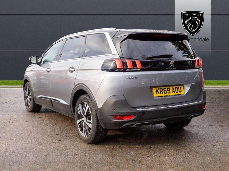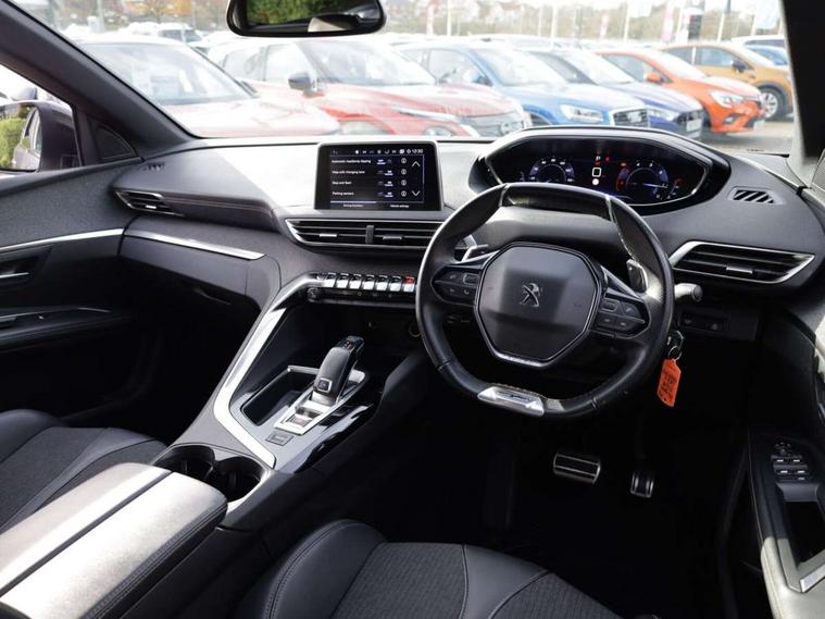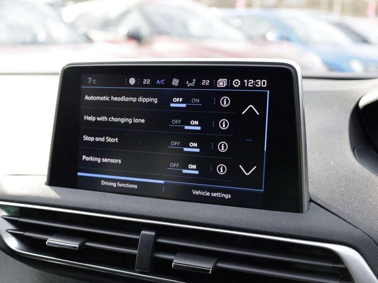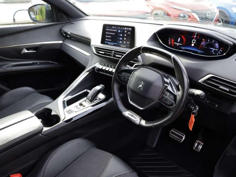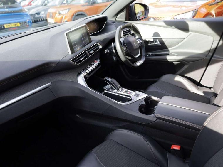 Brumeo fabric interior trim, Satin chrome dash trim, Children's pack - 5008, Driver sport pack - 5008, Safety plus pack - 5008, Visibility pack - 5008, Automatic door lock/re-lock after 30 seconds, Child lock control of rear doors and windows, Remote control central locking with two plip keys, Rolling code transponder immobiliser, Thatcham cat 1 ultrasonic alarm, DAB Digital radio, MP3 connection, USB socket, 3 Isofix location points, ABS + EBD + EBA, Adaptive driver and front passenger airbags including passenger airbag deactivation function, Collision mitigation braking system, Electronic parking brake, ESP and ASR traction control with deactivation switch, Five 3 point rear safety belts, Front and rear curtain airbags, Front optimised safety headrests and 3 x rear retractable headrests with height adjustable, Front seatbelt unfastened audible+visual warnings, Front side airbags, Front three point retractable seatbelts height adjustable with pre tensioners and force limiters, Front ventilated disc brakes, Hill start assist, Rear disc brakes, Rear three-point retractable seatbelts (x3) with pre-tensioners and force limiters in the outer rear seats, Tyre pressure monitor, 2 X Rear number plate lights, Aluminium roof rails, Auto self levelling headlights, Automatic activation of hazard warning lights, Black front wing trim with chrome detail, Body colour door handles, Body coloured bumpers, Body coloured rear spoiler, Body protectors in black, Chrome boot sill trim strip, Chrome front fog light surround, Chrome rear bumper scuff plate, Chrome trim to lower side windows, Dark tinted Rear side and tailgate windows, Door mirror mounted LED courtesy approach lights, Electric front/rear windows with one touch/auto up/down, Electrically heated door mirrors, Front windscreen wiper with magic wash cleaning system, Full LED headlights with LED fog lights with static cornering function, sports front bumper and grille, Gloss black B and C pillar and aerodynamic deflector trim, Gloss black rear cluster connecting strip, Gloss black windscreen surround, GT Line emblem in satin copper, Heated rear windscreen with integrated antenna, LED daytime running lights, LED side indicator lights integrated into door mirrors, Lion grey front bumper scuff plate, Nera black door mirrors, Power folding door mirrors with blind spot detection indicator and auto dipping function in reverse gear, Radiator grille in chrome edge trim with chequered design and black 'PEUGEOT' lettering, Rear LED Peugeot signature 'Claw Effect' lights, Rear side window blinds, Rear windscreen wiper with auto activation when reversing, Stainless steel roof arches, Twin exhaust tailpipe, Wheel arch protectors, 2 cupholders in front centre console, 2 individual folding 3rd row seats, 3 x 12V power sockets, 4 Grab handles retractable and damped, Aikinite stitching in armrest, gear lever and dashboard facia, Automatic dual-zone climate control, Blue ambient lighting for connecting zone, Blue ambient lighting to front door panels, central storage and cupholders, Blue ambient lighting to head up instrument panel, Electric power steering with reach and rake adjustable steering column, Flat folding rear seats, Flocked front door pocket interior with blue ambient lighting, Flocked glovebox interior, Fold flat front passenger seat with picnic table, Front central armrest with butterfly-wing opening and storage compartment, Front interior light with 2 reading spotlights and rear interior light with timer, Front passenger seat height adjust, Gear shift indicator, Headrests on 2nd/3rd row seats, Heating/air conditioning outlet in rear, Illuminated glovebox, Illuminated vanity mirror, Isofix child seat fittings x 3 in the second row, LED interior illumination, Map pocket on front seat backs, Mistral floor mats with Aikinite contrast stitching, Mistral full grain perforated leather steering wheel with aikinite stitch detail and satin chrome 'GT Line' emblem, Rear centre console with air vents, Rear reading lights x 2, Rear seat underfloor storage, Retractable parcel shelf, Roof lining - Mistral black, Satin chrome digital instrument panel and touchscreen trim, Satin chrome front door panel recess trim, Satin chrome gear lever, Satin chrome interior door handles, Satin chrome scorpion's tail and toggle switch trim, Seatbelt unfastened on the move audible and visual alert for front and rear seats, Stainless Steel Scuff Plates, Steering wheel audio controls, Twin rear coat hooks, 3D connected navigation + voice control, Android Auto, Auto start and stop system, Bluetooth telephone connection, Exterior temperature gauge with frost alarm, Headlight on warning buzzer, Lane departure warning system, Mirror screen with mirror link and car play, Multi function trip computer, Peugeot connect SOS and assistance, Smartphone wireless charging plate, Speed limit recognition, Sports button, Dynamic stability control,