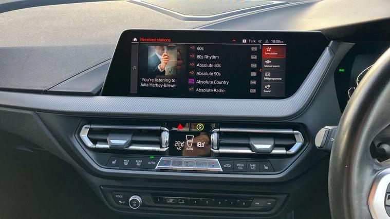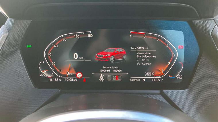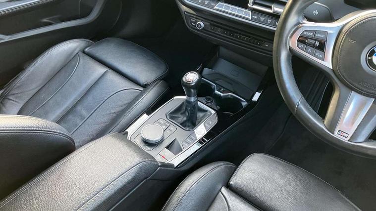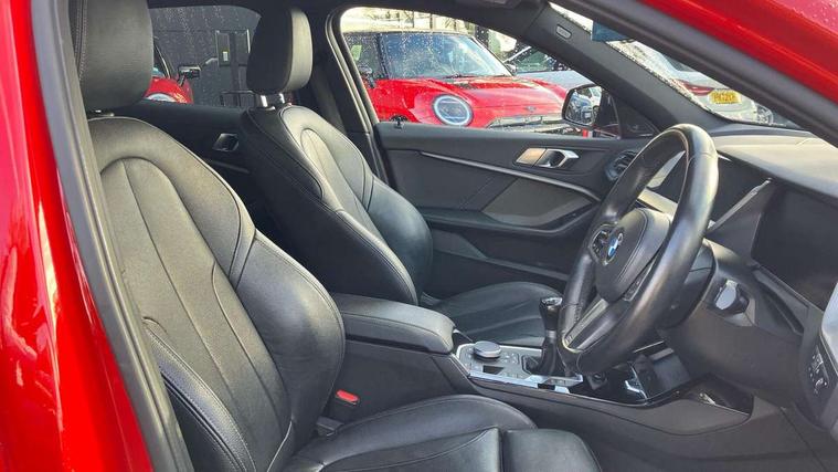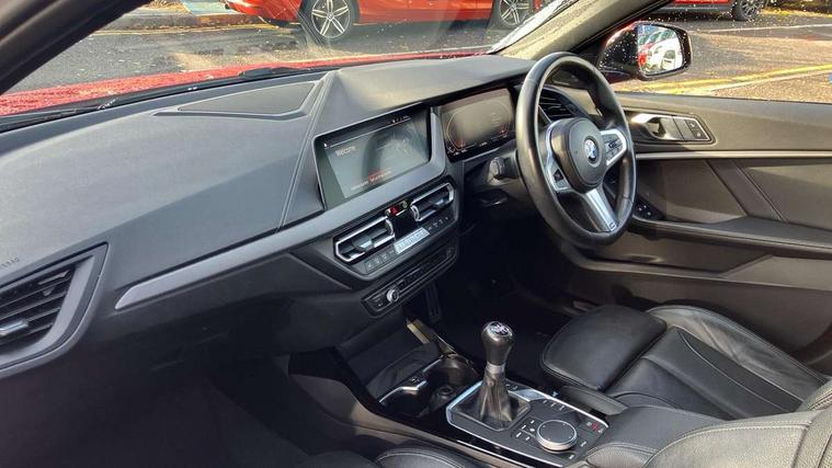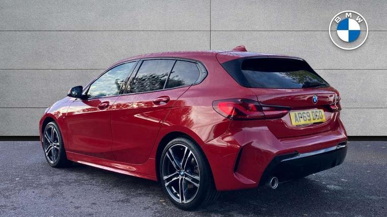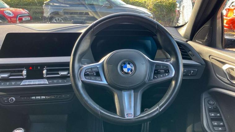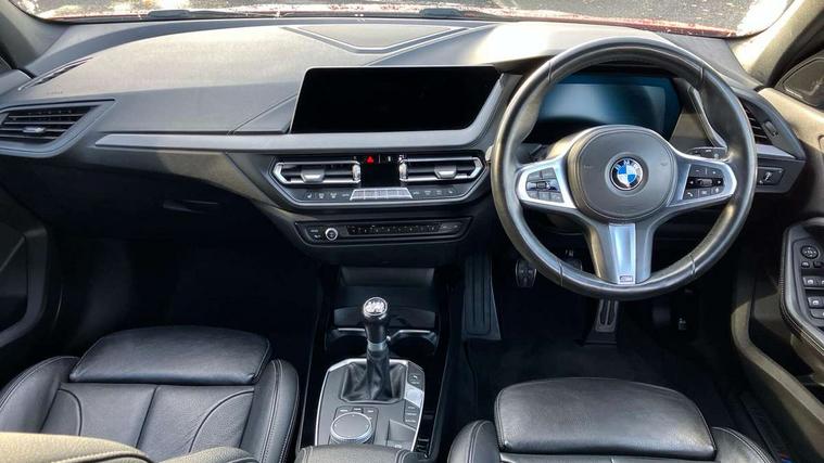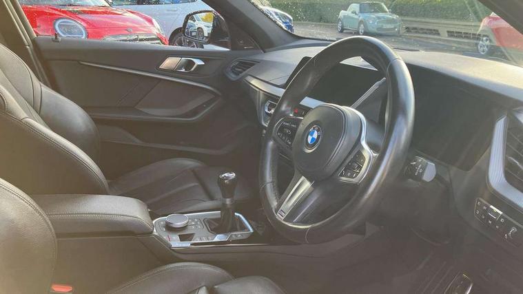 Contrast stitching on instrument panel, Extended Lighting pack - 1 Series, Extended storage pack - 1 Series, Interior lights pack - 1 Series, Luggage compartment pack - 1 Series, M Sport exterior styling aerodynamics pack - 1 Series, Reduced rolling resistance tyres, Automatic drive away locking facility, Central locking switch for all doors, fuel filler cap and luggage compartment, Deadlocking function system to all doors, Locking wheel bolts, Remote control with integrated key with High-gloss Black inlay and M designation and 1 button for open/ close lock, window, open luggage compartment, Start/stop button with comfort go keyless engine start and auto start stop deactivation button, Thatcham Cat.1 alarm and immobiliser, Bluetooth audio streaming, DAB Digital radio, 2 tone horn, 3 point seatbelts on all seats, front pyrotechnic belt tensioners, stopper and belt force limiters, rear coded belt buckles, Airbags - Front driver and passenger, front and rear head, front side, curtain head protection, Anti lock braking system (ABS) with brake assist, BMW emergency call, Brake drying, Braking readiness, City braking function, Crash sensor activating central locking release, hazard warning lights, fuel cut off, interior lighting + activation of safety battery terminal clamp, Driver and front passenger seat belt security check, Dynamic stability control + (DSC+), Dynamic Traction Control - DTC, Electrically operated hand brake, Front passenger manual airbag deactivation, Rear child proof door locks, Seatbelt warning, Side impact protection, Tyre pressure monitoring system, Warning triangle and first aid kit, Auto dimming rear view mirror, Body colour door handles, Body colour mirror caps, Chrome 'M' logo side designation, Chrome exhaust tailpipe in single, round (Exhaust tailpipe, stainless steel - single, round), Chrome kidney grille frame with Satin Aluminium struts, Direction indicator side lights in exterior mirrors, Electric folding and anti dazzle exterior mirrors, Fading support, Follow me home headlights, Front and rear electric windows with open and close fingertip control, anti trap facility and comfort closing, Front door sill finishers in black plastic with BMW designation, Green tinted heat protection glazing, Headlight beam throw control, High gloss shadow line exterior trim, High level third brake light, LED daytime running lights, LED front fog lights, Lightweight engineering, Matt black air guide grilles, Matt black roof moulding, B pillar finisher and wheel arch trim, Matt black window frame, Model designation on right side of tailgate, Nearside reverse light in rear light cluster, Rain sensor including auto headlights activation, Rear fog lights, Rear window wiper, Shark fin antenna, Visible VIN plate, Welcome lighting, Windscreen wipers with integrated washing jets, 12V power socket in centre console, 2 cupholders in front centre console, 3 rear seat head restraints, 3 spoke M sports design leather steering wheel finished in nappa leather with specific M badge, Anthracite headlining, Anthracite Velour floor mats, Child seat ISOFIX attachment for two outer rear seats and front passenger seat with anchorage points, Conditioned based service, Dakota leather upholstery with perforation and contrast stitching, Driver and front passenger seat heating, Driver side folding compartment in instrument panel, Folding rear clothes hook, Folding rear seats, Four grab handles integrated in roof lining, Front and rear door pockets, Front and rear side armrest integrated into door trim, Front Armrest foldable with integrated storage compartment, Front sports seats with electric side bolster adjustment, Gearshift lever with M designation, Glove compartment, Height adjustable front head restraints, Manual adjust steering wheel, Multi-function controls for steering wheel, Rear seat backrest with manual 60:40 split folding with 3 top tether clips integrated on rear of seat panels, Storage compartment in centre console, Sun visors with vanity mirrors and insert tab, Two zone automatic air conditioning, Active guard plus, Attentiveness assist, BMW Online services, BMW Teleservices, Check Control warning system for monitoring of lights and door/luggage compartment open warning, Connected eDrive Services, Cruise control with brake assist, Eco pro mode, Electric power steering, Integrated owners handbook, Lane departure warning system, On board computer, Optimum shift indicator, Personal Profile, Pull away assistant, Speed limiter, Anti roll bar front and rear, Balancer shaft, Double VANOS, Drive Performance Control, Electronic differential lock, M sports suspension + self levelling, Petrol Particulate Filter, VALVETRONIC engine management,