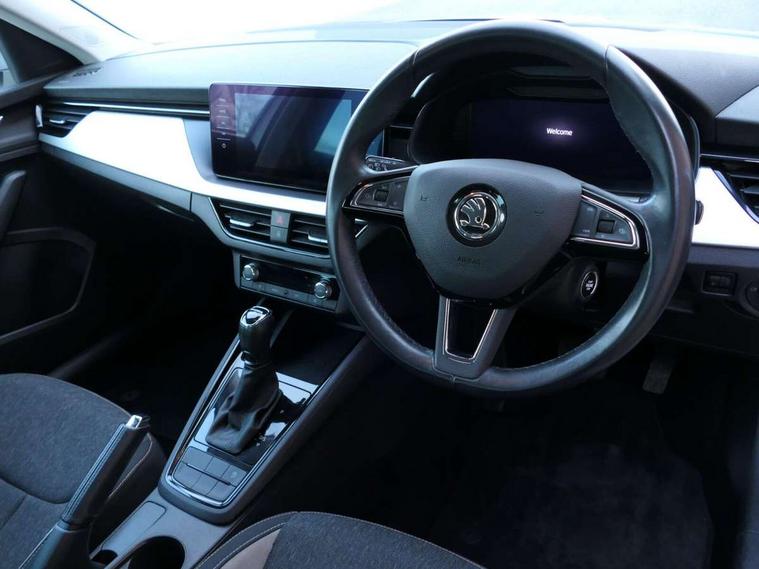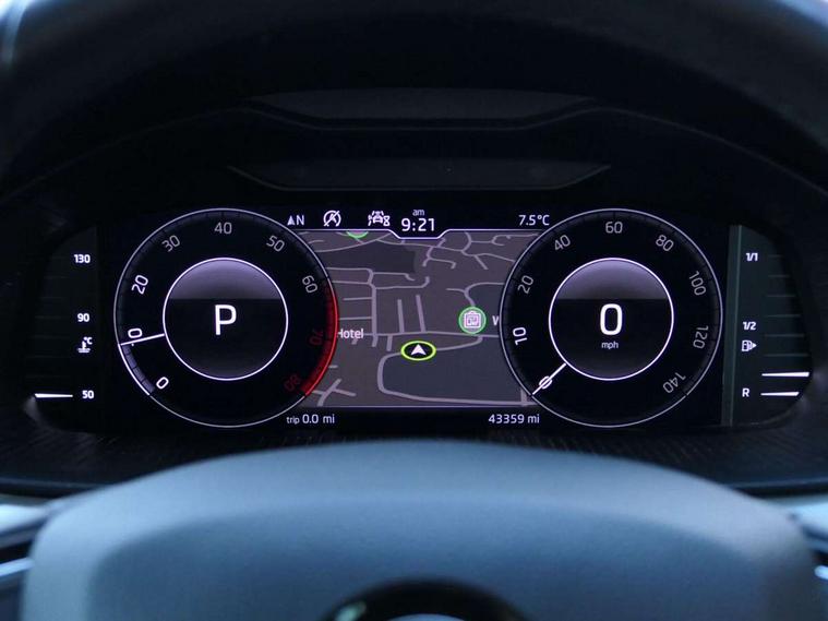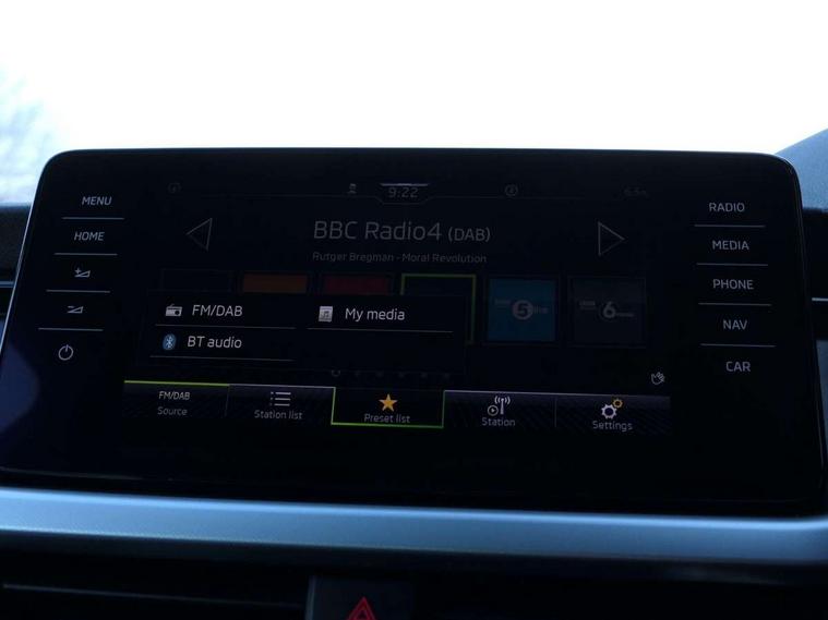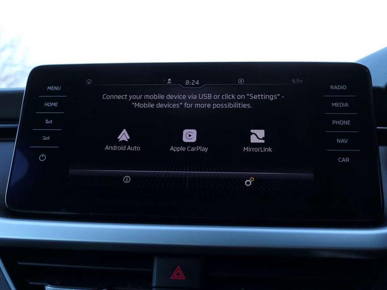 Alarm with interior monitoring, back up horn and tilt sensor with safe function and towing protection, Anti-theft wheel bolts, Immobiliser, Remote central locking with SAFE system, 2 USB - C ports with 1x adaptor cable, Auxiliary input socket, DAB Digital radio, 3x3 point rear seatbelts, Airbags - driver and front passenger, ESP, Front passenger airbag deactivation switch, Front side airbags with curtain airbags, Hill hold control, Manual parking brake, One tone horn, Rear disc brakes, Seatbelt reminder for driver an co-driver, Traction control, Tyre pressure monitor, Auto dimming rear view mirror, Body colour bumpers, Body colour door mirrors and handles, Chrome grille surround, Electric folding door mirrors, Electrically adjustable and heated door mirrors, Front and rear electric windows, Headlight range control, Heated rear window, High functionality rear led lights with dynamic indicators, Light and rain sensors, Privacy glass, Rear fog lights, Rear wiper, 12V Accessory socket in centre console, Chrome inner door handles, Dual zone climate control, Front gesture control, Front head restraints, Glove compartment with illumination, Ice scraper, Isofix child seat fittings on outer rear seats, ISOFIX on front passenger seat, Manual lumbar support for front seats, Pollen filter, Rake/reach adjustable steering wheel, Reading lights for driver and front passenger, Sun visor with make up mirror for front passenger, Textile floor mats, Third rear headrest, Top tether for front passenger seat, Umbrella in driver's door, Amundsen satellite navigation with 9.2" touchscreen display, web radio and voice control, Blind Spot Detection (BAS), Bluetooth system, E-call, Front assist system, Lane assist, PAS, Service indicator, Speed limiter, Trip computer, Virtual cockpit with 10.25"display, Wireless SmartLink for Apple Car Play,