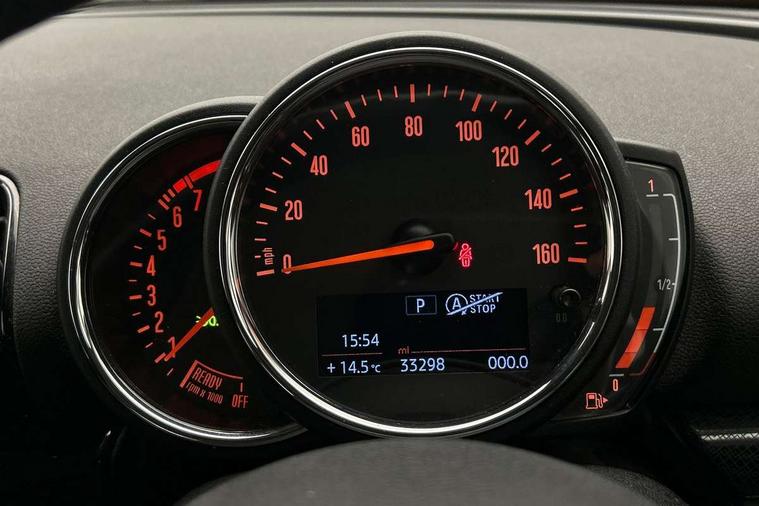 Excitement pack - Clubman, Navigation pack - Clubman, Tyre repair kit, Alarm system with tilt sensor, monitoring doors, bonnet interior and tailgate, Auto drive away locking, Deadlocking function, Electronic vehicle immobiliser, Locking wheel bolts, Start/stop toggle with keyless go, FM tuner and DAB digital radio, 2 tone horn, 3 point seatbelts on all seats, 6 Airbags - front, side, head and seat belt tensioners, Anti-lock braking system (ABS), DSC - Dynamic Stability Control, Electronic handbrake, Front and rear disc brakes, Tyre pressure monitoring system, Bonnet scoop, Chrome border honeycomb structure radiator grille with S badge, Chrome fuel filler cap, Dynamic brake lights, Electric windows, Heated rear window, Heated windscreen washer jets, LED rear light with union jack design, Metal door sill strips with Cooper S imprint, Model logo, Model logo on rear doors, Radiator grille, Rain sensor with auto headlights, Rear fog lights, Rear window wiper, Side scuttle panel with integrated indicator, Split rear doors, Sun/heat protection glass, Twin exhaust tailpipe, White indicator lenses, 12V Accessory socket in centre console, 3 spoke sport leather steering wheel + limiter function and audio controls, 360L luggage compartment capacity, 4 lashing eyes in luggage compartment, 60/40 split folding rear seat, Chrome interior highlights, Cupholders, English handbook, Front and rear head restraints, Glove compartment, Headliner with grab handles and clothes hooks, Height and length steering column adjustment, Interior lighting with 12 basic colours selectable via toggle switch in roof, Isofix rear child seat preparation, Leather gearshift lever and handbrake gaiters, LED reading lights, vanity mirror lights, front foot well light and spotlight on front seats, Manual air conditioning, Mechanical seat adjustment, driver seat height adjust, forward/back and front seats backrest, Multifunction steering wheel, Storage compartments in doors, Sunvisors with vanity mirrors, Toolkit, Active Guard incl speed limiting and lane departure functions with auto steering, and front collision warning with brake intervention, Automatic start/stop function with brake energy recuperation, Compatible mobile phone bluetooth with audio streaming, Electro-mechanical speed dependant steering assistance, Instrument cluster, Mini E-call, MINI TeleServices, On board computer, Double Vanos system, Fully variable valve control, High precision injection, Performance Control, Steptronic transmission with double clutch,