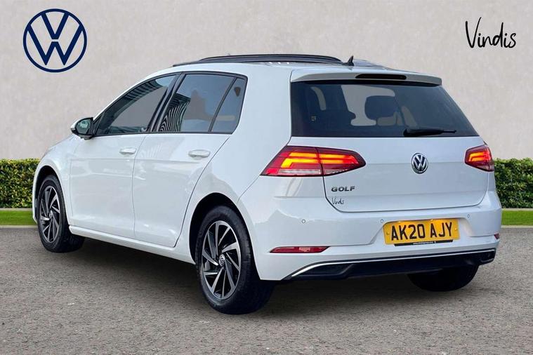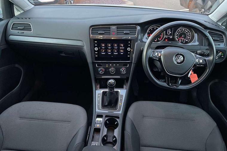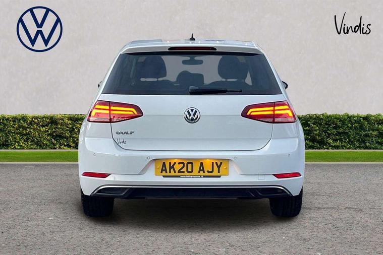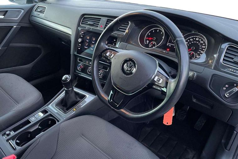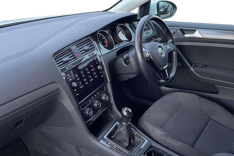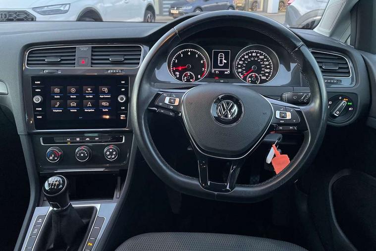 Brushed dark silver decorative inserts in dash and door panels, Chrome plated air vent surround, Chrome-plated light switch surround, Polar night black decorative inserts in centre console, Convenience Pack - Golf, Light and Sight pack - Golf, Mirror pack - Golf, Steel space saver spare wheel, Alarm with interior protection and deactivation via infotainment system, Electronic engine immobiliser, Composition media system, DAB Digital radio receiver, Driver Personalisation profile selection, MP3/WMA compatability, Multi device interface (MDI) with USB connection, Personalisation 1.1 profile for media, Premium USB cable in choice of either Apple or Android smartphone compatibility, SMS Functionality, Title and cover art display, 4 X 20W output, USB connection and socket, USB and SD card connectivity, 3 rear three point seatbelts, Airbags - Driver's and front passenger's, curtain airbag, Driver's knee, front side impact and passenger's airbag deactivation switch, Anti-lock Braking System (ABS) with Hydraulic Brake Assist (HBA), Automatic post collision braking system, Child locks on rear doors, Driver/Passenger optimised head restraints, Electronic parking brake with auto hold, Electronic stability control (ESC) including Electronic differential lock (EDL) and ASR (Traction control) with deactivation via infotainment system, Front ventilated disc brakes and rear disc brakes, Pre crash preventive occupant protection, Three point height adjustable front seatbelts with tensioners, Tyre pressure loss indicator, Auto dimming rear view mirror, Black front air intake and radiator grille with chrome insert, Black rear diffuser, Body colour bumpers, Body colour door handles, Body colour door mirrors with integrated indicators, Dusk sensor + automatic driving lights, Electric front windows, Electric rear windows, Electrically adjustable and heated door mirrors, Fully galvanised body, Heated rear windscreen, Hidden exhaust pipe, High level 3rd brake light incorporating LED Technology, LED front fog lights with static cornering light function, Range adjustable headlights via infotainment system with LED daytime running lights, Rear fog lamp, Rear number plate lights incorporating LED technology, Rear tinted glass 65% light absorbing from B pillar backwards, Rear window aerial, Rear window wash/wipe with intermittent wipe, Reflectors in all doors, Remote electrically foldable door mirrors, door mirror puddle lights and reverse activated kerb-view adjustment on passengers door mirror, Tailgate with integrated rear roof spoiler, Windscreen wipers/ intermittent wipe + 4 position delay, 12V socket in luggage compartment, 3 rear headrests, 4 load lashing points in luggage compartment, 60/40 split folding rear seat backrest, Auto fold down lever in rear seat backrest, Bag hook in luggage compartment x 2, Cooled glovebox, Cover for storage compartment in centre, Cupholder cover, Dust/pollen filter, Front and rear reading lights X 2, Front centre armrest with storage compartment and two rear air vents, Front seat back storage pockets, Grab handles front x 2, rear x 2 with integrated coat hooks, Height and reach adjustable steering wheel, Illuminated vanity mirrors, Instrument lighting white adjustable panel illumination, Interior light delay, Isofix preparation for 2 rear child seats, Load through provision with rear centre armrest and cupholders x2, Luggage compartment lighting, Overhead storage box, Passenger underseat drawer, Pearl grey headlining, Storage box in luggage compartment, Storage compartment in roof console with cover, Storage compartments in centre console, Storage compartments in front doors, Storage compartments in rear doors, Stowable luggage compartment cover, Sun visors, Variable boot floor, height adjustable and removable, 'Lights On' Reminder warning buzzer, ACC - Adaptive cruise control with front assist, forward collision warning, distance monitoring, city emergency brake and speed limiter, Bluetooth telephone and audio connection for compatible devices, Brake pad wear indicator warning light, Driver alert system, Driving Mode Selection with four preset modes - Eco, normal, sport or individual modes, Instrument cluster in white, Multifunction computer with visual gear change recommendation for fuel consumption, Power assisted speed sensitive electro-mechanical steering, Push tank flap, Speed limit display, Speedo, rev counter, electronic odometer, trip, service interval display, exterior temperature and fuel gauge, Stop/start system, Think blue trainer driver tips and journey analysis, Warning buzzer and light for front seatbelts unfastened, We Connect Go Dongle, Battery regeneration during braking, XDS electronic differential lock,
