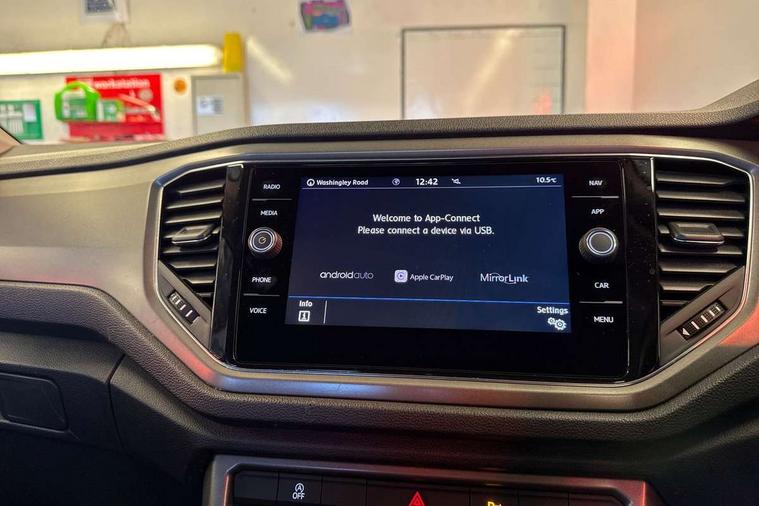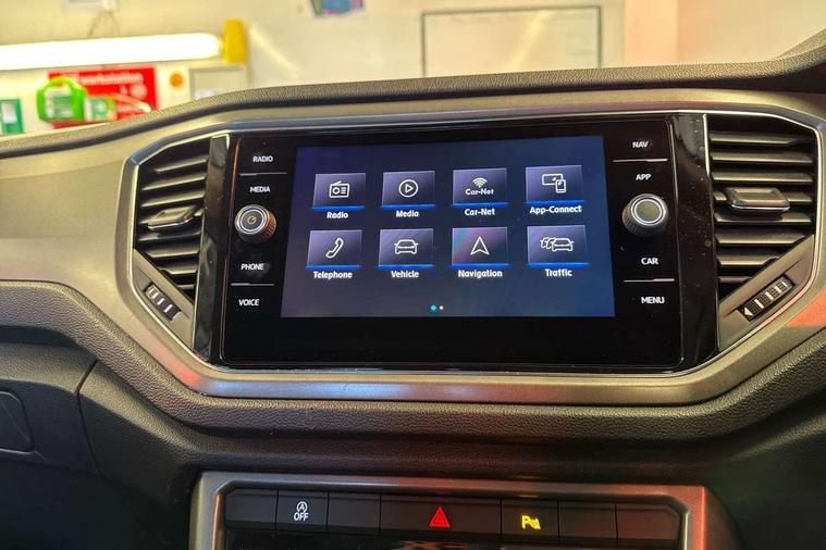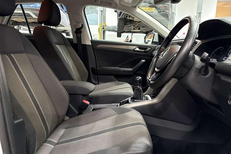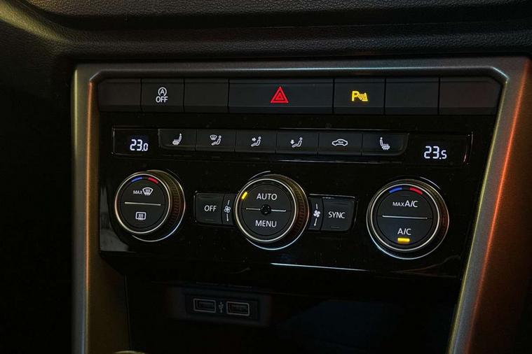 Limestone grey decorative inserts in dash and door panel, Steel space saver spare wheel, Alarm with interior protection and deactivation via infotainment system, Electronic engine immobiliser, Remote central locking with 2 remote folding keys, DAB Digital radio, Multi device interface (MDI) with USB connection, Music playback - MP3, WMA and AAC files, Premium USB cable in choice of either Apple or Android smartphone compatibility, SD card slot, Simultaneous pairing of 2 compatible mobile devices, SMS functionality - read, compose and send SMS messages using touch-screen display, Title and cover art display, 3 rear three point seatbelts, ABS, Curtain airbags, Driver and front passenger safety-optimised head restraints, Drivers and front passengers airbags with passengers deactivation switch, Electronic parking brake with auto hold, Electronic stability control (ESC) includes ASR, EDL, EDTC and trailer stabilisation function, Front seat side impact airbags, Predictive pedestrian protection, Rigid safety cell with front and rear crumple zones, Three point height adjust front seatbelts + pretensioners, Tyre pressure loss indicator, Ventilated front and rear disc brakes, Volkswagen roadside assistance, Auto dimming interior rear view mirror, Automatic hazard lights activation under emergency braking, Black grained lower door protectors, Black grained wheel arches, Body colour bumpers with silver metallic underbody fascia, Body colour door handles, Chrome trim on upper and lower radiator grille, Electrically foldable, adjustable and heated door mirrors with puddle lights and reverse activated kerb-view adjustment on passenger's door mirror, Front and rear electric windows, Front windscreen wiper with intermittent wipe and 4 position delay, Fully galvanised body, Heated rear window, High level 3rd brake light, LED rear number plate lights, Manual coming/automatic leaving home lighting function, Rain sensor, Rear wash/wipe with intermittent wipe setting, 12V socket in centre console storage area, 2 front reading lights, 3 rear head restraints, 4 load lashing points in luggage compartment, Climate control - 2 zone electronic air conditioning with automatic air recirculation and allergy filter, Drawer under drivers seat, Front centre armrest with storage compartment, longitudinal and height adjustable and two rear air vents, Front cupholders x 2, Front seat back storage pockets, Glovebox, Height adjustable front seats, Height/reach adjust steering wheel, Illuminated vanity mirrors, Instrument lighting, white adjustable panel illumination, Interior light delay, Isofix easy fit child seat preparation for 2 outer rear seats, Load through provision with single cup holder when folded down, Luggage compartment cover, removable, Luggage compartment lighting, Split folding rear seat backrests with centre armrest, Storage compartment in left and right luggage area, Storage compartment in rear doors, Storage compartments in driver and front passenger doors, App-Connect, 'Lights On' Reminder warning buzzer, 2 USB connection charging sockets, Adaptive cruise control with front assist, radar sensor controlled distance monitoring, city emergency braking, Automatic start/stop system, Bluetooth telephone and audio connection for compatible devices, Car information display, Driver tips and journey analysis, Dusk sensor, Lane assist, Multifunction computer with visual gear change recommendation for fuel consumption, Service interval indicator, Think blue trainer driver tips and journey analysis, Warning sound and light for doors and tailgate open, Warning sound and light for front seatbelts unfastened, We Connect Go Dongle, Battery regeneration during braking,