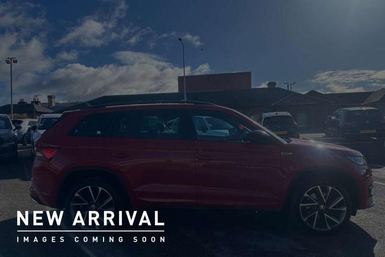 Carbon finish dashboard and door inserts, Chrome air vent surrounds, LED Interior Light pack - Kodiaq Scout/Sport Line/VRS/Laurin + Klement, 20" Vega Anthracite alloy wheels with anti-theft wheel bolts, Alarm with interior monitoring and tilt sensor with safe function, Immobiliser, Keyless entry and start system (KESSY), Remote central locking, Bolero Radio, DAB Digital radio, DVD System, Auto door release and activation of warning lights, Driver and passenger airbags, Electronic parking brake with hill hold control, Emergency rear braking signal, ESC (incl. ABS+MSR+ASR+EDS+HBA+DSR+RBS+MKB), Front and rear three point safety belt on all seats, Front assist includes AEB city/urban, Front passenger airbag deactivation switch, Front side airbags, Fuel cut off safety device, Head and knee airbags, Rear disc brakes, Safety vest holder in door, Seat belt reminder for all seats, Tailgate unlocking from outside, Two tone horn, Tyre pressure monitor, Warning lights in front doors, Aero front windscreen wipers with intermittent function, Aero rear window wiper, Auto dimming rear view mirror, Automatic activation of hazard warning lights, Black electric window control buttons, Black roof rails and door mirrors with radiator grille and window surrounds, Black wheel arch surrounds, Body colour bumpers, Body colour door handles, Chrome exhaust tailpipe, Electric front and rear windows, Electrically adjustable/heated/foldable and auto dimming door mirrors with memory function, Front door steps with SportLine logo, Full LED Headlights with adaptive front light system and LED daytime running lights, Headlight washers, Heated rear window, LED front fog lights with static cornering light function, LED rear fog light, LED third brake light in rear spoiler, Light assistant (coming home/tunnel light), Rain and light sensors, Rear diffuser, Rear spoiler, Safety reflectors on front and rear doors, Sportline badge on front fender, Sports front and rear bumpers, Sunset privacy glass, Tailgate lettering in Black, Without engine designation, 12V socket in boot, 2 rails with 2 hooks including 4 hooks for net programme, 3 spoke leather sports heated multi-function steering wheel with hands off detection, 4 foldable roof handles with rear coat hooks, 4 lashing points on luggage floor, 60:40 foldable rear seat with sliding adjustment and backrest angle adjustment, Alcantara door panels, Alcantara/Leather upholstery with Sport seats with silver stitching, Aluminium pedals, Black roof headlining, Bottle holders in door panel in the 1.5 litre front and 1 litre rear, Cargo storage compartments, Centre console with open storage box, cup holder and 12V socket, Chrome headlight control button, Chrome interior door handles, Coat hooks on B pillar, Covered storage compartment on driver side, Front and rear door armrest with black adductor trim, Front and rear height adjustable headrests, Front centre armrest with storage compartment, cup holder and 12V socket, Front courtesy lights, Gear shift lever with chrome frame and black gloss insert, Illuminated and cooled glovebox, Illuminated luggage compartment, Isofix child seat fittings in outer rear seats with top tether, Manually adjustable steering column, Net programme in boot (1x horizontal Net, 2x vertical Nets), Overhead glasses storage compartment, Paddles on steering wheel for DSG gearbox, Pollen filter, Rear centre armrest with cupholders, Roll up luggage compartment cover with intermediate position, Small Bags on the inner sides of the front backrests, Storage compartment in lower middle instrument panel with closing, Three rear height adjustable headrests, Ticket holder on A Pillar, Umbrella in door panel, Bluetooth system, Columbus satellite navigation with 9.2" touch screen and integrated Wi-Fi + WLAN and web radio, Digital voice enhancement, ECO Stop/start function, Exterior temperature indicator, Map care, Progressive power assisted steering, SmartLink plus, Speed limiter, Sports dials, USB C Port x 2 in front centre console,