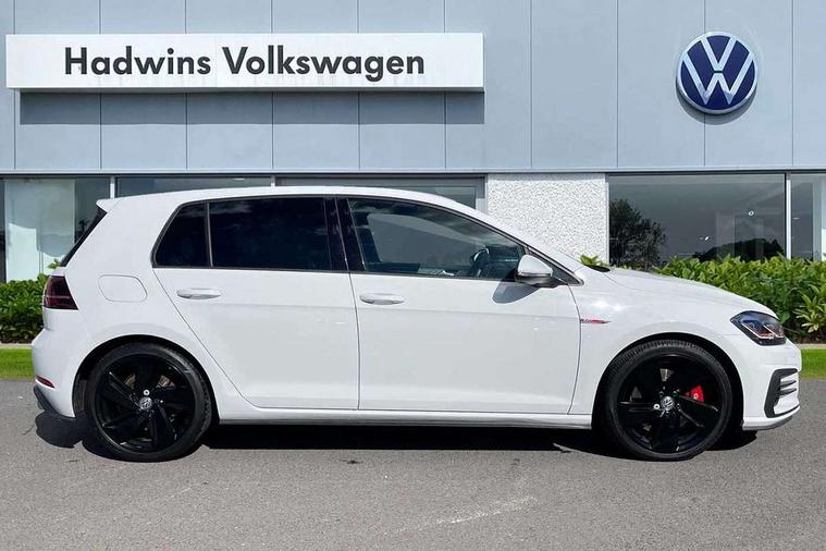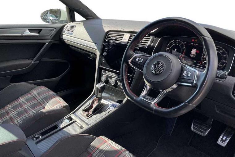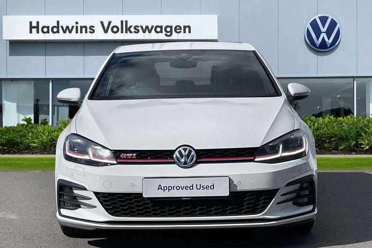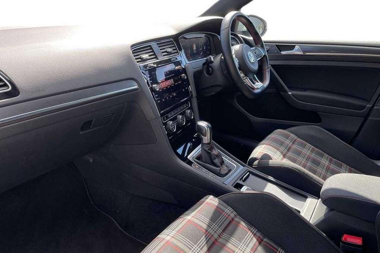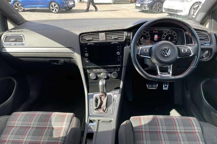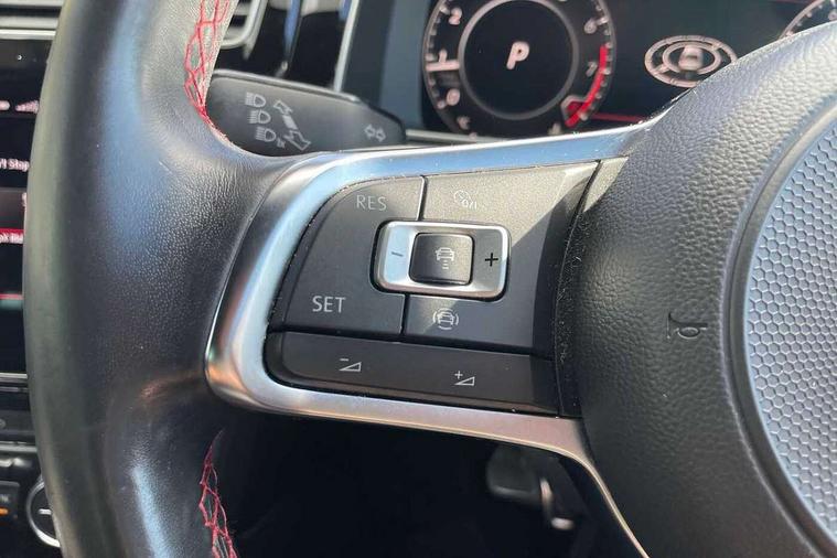 'Lights On' Reminder warning buzzer, ACC - Adaptive cruise control with front assist, forward collision warning, distance monitoring, city emergency brake and speed limiter, Active information display - 12.3" high resolution TFT display, Bluetooth telephone and audio connection for compatible devices, Brake pad wear indicator warning light, Driver alert system, Driving Mode Selection with four preset modes - Eco, normal, sport or individual modes, Multifunction computer with visual gear change recommendation for fuel consumption, Progressive steering, Push tank flap, Rear view camera, Speed limit display, Speedo, rev counter, electronic odometer, trip, service interval display, exterior temperature and fuel gauge, Stop/start system, Think blue trainer driver tips and journey analysis, Unique GTI instrument cluster, Warning buzzer and light for front seatbelts unfastened, Anti-tramp function, Battery regeneration during braking, Mechanical limited slip differential, Composition media system, DAB Digital radio receiver, Driver Personalisation profile selection, MP3/WMA compatability, Multi device interface (MDI) via USB connection, Premium USB cable in choice of either Apple or Android smartphone compatibility, SMS Functionality, Title and cover art display, USB and SD card connectivity, Volkswagen media control, 3D-LED tinted rear light clusters with indicator sweep function, Black front air intake and radiator grille with chrome insert, Body colour door handles, Body colour door mirrors with integrated indicators, Body colour rear roof spoiler, Dusk sensor + automatic driving lights, Electric front windows, Electric rear windows, Electrically adjustable and heated door mirrors, Extended sill strips flared, Front and rear unique GTI badging in red, Fully galvanised body, GTI logo in red on front and back, GTI logo lettering on front wings on right and left, Heated rear windscreen, High level 3rd brake light incorporating LED Technology, Honeycomb front air intake - Black, Honeycomb radiator grille with red stripe, LED daytime running lights incorporating red stripe, LED front fog lights, LED headlights with dynamic light assist, Rear fog lamp, Rear number plate lights incorporating LED technology, Rear window aerial, Rear window wash/wipe with intermittent wipe, Reflectors in all doors, Uniquely shaped front/rear bumpers, Windscreen wipers/ intermittent wipe + 4 position delay, 12V socket in luggage compartment, 3 rear headrests, 4 load lashing points in luggage compartment, 60/40 split folding rear seat backrest, Bag hook in luggage compartment x 2, Black rear diffuser with chrome exhaust tailpipes in left and right, Black roof lining, Climate control - 2 zone electronic air conditioning with automatic air recirculation and allergy filter, Cooled glovebox, Cover for storage compartment in centre, Dust/pollen filter, Front + rear carpet mats, Front centre armrest with storage compartment and two rear air vents, Front seat back storage pockets, Grab handles front x 2, rear x 2 with integrated coat hooks, Height and reach adjustable steering wheel, Illuminated vanity mirrors, Interior light delay, Isofix preparation for 2 rear child seats, Leather gear knob and handbrake grip, Load through provision with rear centre armrest and cupholders x2, Luggage compartment lighting, Overhead storage box, Stainless steel pedals, Storage box in luggage compartment, Storage compartment in roof console with cover, Storage compartments in centre console, Storage compartments in front doors, Storage compartments in rear doors, Stowable luggage compartment cover, Sun visors, Three spoke multifunction leather steering wheel with GTI logo and red stitching including gearknob gaiter, Variable boot floor, height adjustable and removable, Ambient lighting pack - Golf, Convenience Pack - Golf, Mirror pack - Golf, Winter pack - Golf, 3 rear three point seatbelts, Airbags - Driver's and front passenger's, curtain airbag, Driver's knee, front side impact and passenger's airbag deactivation switch, Anti-lock Braking System (ABS) with Hydraulic Brake Assist (HBA), Automatic post collision braking system, Child locks on rear doors, Driver/Passenger optimised head restraints, Electronic parking brake with auto hold, Electronic stability control (ESC) including Electronic differential lock (EDL) and ASR (Traction control) with deactivation via infotainment system, Front ventilated disc brakes and rear disc brakes, Larger diameter brake discs and GTI logo on red brake calipers, Pre crash preventive occupant protection, Three point height adjustable front seatbelts with tensioners, Tyre pressure loss indicator, Alarm with interior protection and deactivation via infotainment system, Electronic engine immobiliser, Keyless entry with start/stop button on centre console, Chrome plated air vent surround, Chrome plated electric mirror adjustment switch surround, Chrome-plated light switch surround, Honeycomb black decorative inserts, Piano black decorative inserts in centre console, Steel space saver spare wheel,
