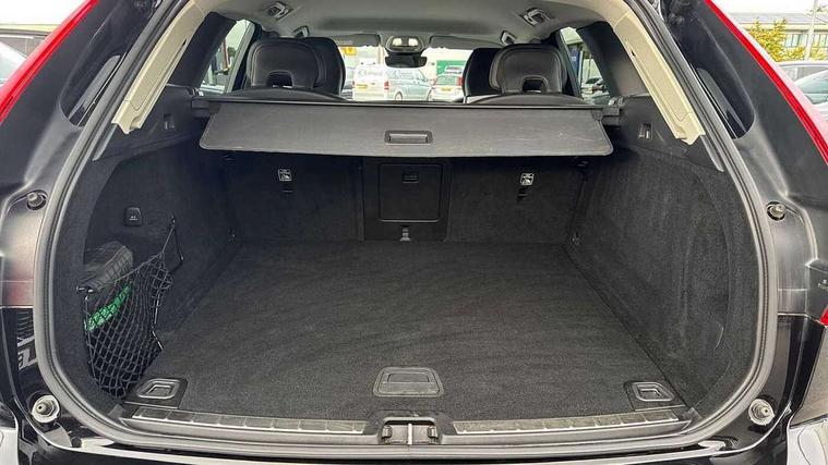 Anti-theft alarm including immobiliser/volume sensor + level sensor, Care key with user defined top speed, Key integrated remote control central locking + fuel flap with deadlocking system and auto open/close power windows, Keyless Drive (includes Keyless Entry and Keyless Start) with Handsfree Tailgate Opening/Closing, Locking wheel nuts, Private locking for tailgate, DAB Digital radio, Premium Sound by Harman Kardon, dirac unison, dolby pro logic II surround sound, 13 speakers/600W output and fresh air subwoofer, Steering wheel remote infotainment controls, 5 three point seatbelts, City safety with steering support with Pedestrian + cyclist + front collision warning with full auto brake and rear auto brake, Drivers knee airbag, Dual stage driver/passenger airbags, Electronic parking brake with auto hold, First aid kit, Front seats SIPS airbags, Hill descent control - Off-road drive mode, Hill start assist, IC (Inflatable Curtains) - Full Length, Passenger airbag cut-off device, Power child locks on rear doors, Road sign information display, Run off Road Mitigation, Run off Road Protection, Seatbelt reminder and pretensioners, SIPS (Side Impact Protection System), Slippery road and hazard light alert, Stability and Traction Control with Spin control, Engine Drag Control and Corner Traction Control, Tyre pressure monitoring system, Vehicle deceleration control with Anti-lock Brake System, Electronic Brake Distribution and Emergency Brake Assist, Warning triangle, WHIPS whiplash protection system - front, Adaptive brake lights with high level LED brake lights, Auto dimming interior + exterior mirrors, Automatic headlight levelling system, Automatic LED Headlights + Active high beam incorporating daytime running lights, Electric adjustable/heated/auto power folding door mirrors, Electric front+rear windows, Front aluminium tread plates, Heated front windscreen, High gloss black door mirrors and window surround, High gloss black front and rear bumper decoratives, High gloss black mesh front grille with high gloss black surround, Home safe and approach lighting, Integrated roof rails in high gloss black, LED front fog lights, Puddle lights, Rain sensor with automatic windscreen wiper activation, Rear side wing doors, Rear wiper, Roof antenna, Roof spoiler, Tinted windscreen, Visible VIN plate, 12V socket in front tunnel console and cargo compartment, 3 seat bench in 2nd row, 4 Zone electronic climate control, A-pillar parking ticket holder, Air purifier particulate matter (PM) filter, B Pillar ventilation, Bright metal luggage threshold, Centre console cupholders and storage, Charcoal floor mats, Front and rear courtesy lights, Front and rear door pocket illumination, Front cupholder illumination, Front footwell illumination, Front reading lights, Front seat cushion extensions, Glovebox compartment with illumination, Head restraints for all seats, Heated front seats, Heated steering wheel, Height/reach adjustable steering column, Illuminated luggage compartment, Illuminated vanity mirrors + ticket holder, ISOFIX attachment on outer rear seats, Load cover, Load protection net, Multi directional lumbar support, Power driver seat with memory + exterior mirrors memory, Power height adjustable passenger seat, Rear armrest with cupholder, Rear footwell and front and rear side step illumination, Rear seat concealed storage, Single front passenger seat, Tailgate illumination and ambient door lighting, Underfloor stowage compartment, Versatile split folding rear seat - 60/40, 12.3" Progressive Driver Display, 360 degree surround view parking camera with side proximity sensors, 9" centre console touch screen, Adjustable steering wheel force, Apple carplay (wired), Bluetooth handsfree system, Driver alert control with lane keeping aid, Driver assistance (pilot assist and adaptive cruise control), Driver awareness - Blind spot information system with steer assist, cross traffic alert with autobrake and rear collision warning and mitigation, Emergency services call system, Front and rear park assist, Google Automotive Services, Oncoming Lane Mitigation, Service interval indicator, Speed limiter, Speed sensitive steering, Trip computer, Volvo on call with App, Wireless/Inductive Mobile Phone Charging, 8 speed automatic transmission with start/stop + manual change functions, Dynamic chassis,