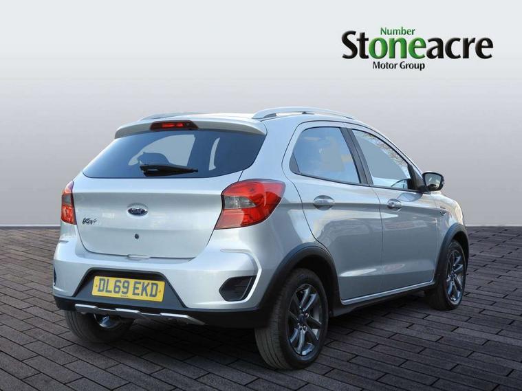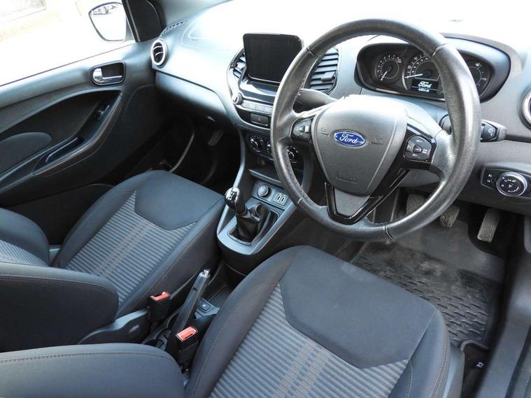 15" 4x2 spoke painted grey finish alloy wheels, Engine immobiliser, MyKey system, Perimeter alarm with remote central locking, Ford SYNC 3 DAB radio with 6.5" touch, emergency assistance, bluetooth, USB connectivity, applink, voice, steering wheel audio controls + 6 speakers, MP3 player, 3x3 point rear seatbelts, ABS, Curtain airbags, Deflation detection system, Driver and passenger airbags, Electronic Stability Programme (ESP), Front side airbags(head+thorax), Hill start assist, Passenger airbag + deactivate switch, TPMS (Tyre pressure monitoring system), Active logo front door threshold plates, Body colour door handles, Body coloured bumpers, Body coloured door mirrors, Electrically operated door mirrors with side indicators, Electrically operated front windows, Front fog lamps with day running lights, Privacy glass, Rear wiper, Rugged bodystyling kit with active front wing badges, Silver roof rails, Unique active design painted front grille, 3 rear head restraints, 60/40 split folding rear seat, All weather floormats, Cargo mats, Centre rear head restraint, Front head restraints, Height adjustable driver's seat, Isofix, Leather wrapped steering wheel, Rake adjustable steering column, Sienna cloth upholstery, Auto start and stop system, Cruise control, Ford easy fuel, PAS, Speed limiter, Trip computer, Rough Road Suspension,