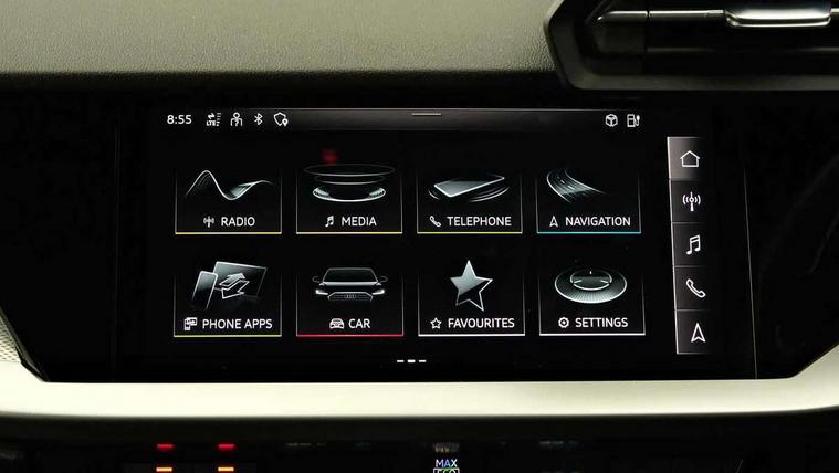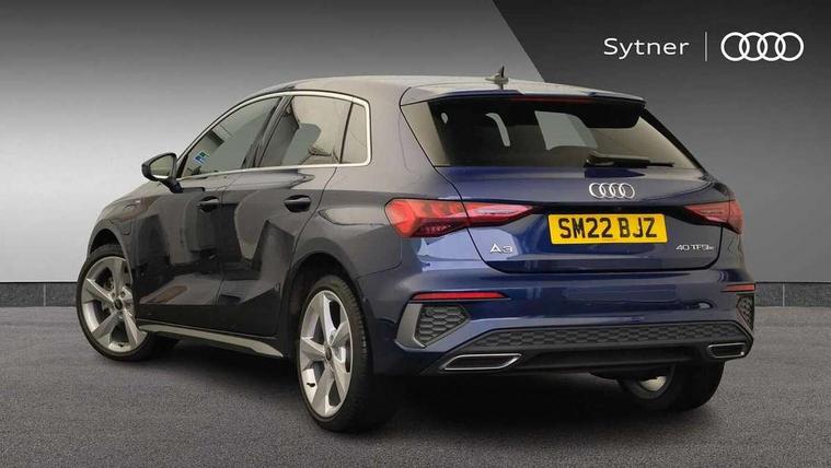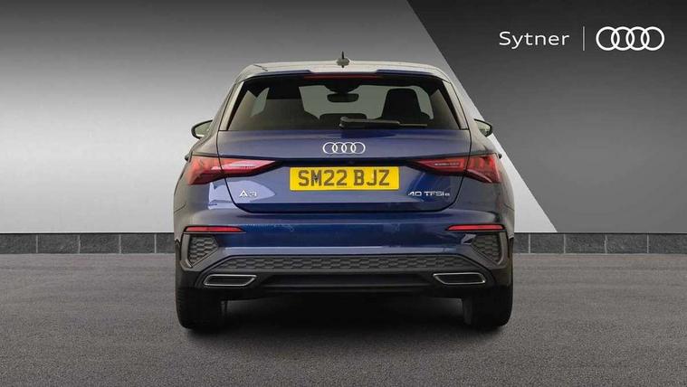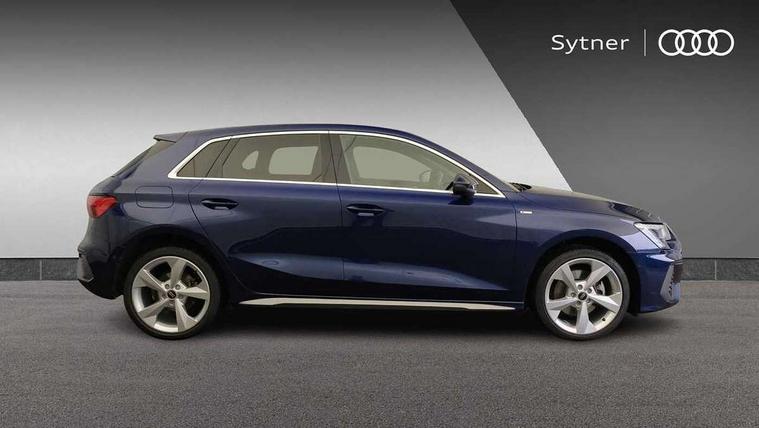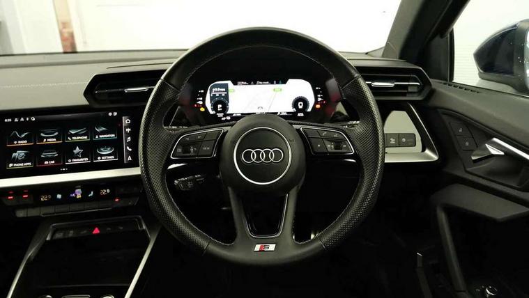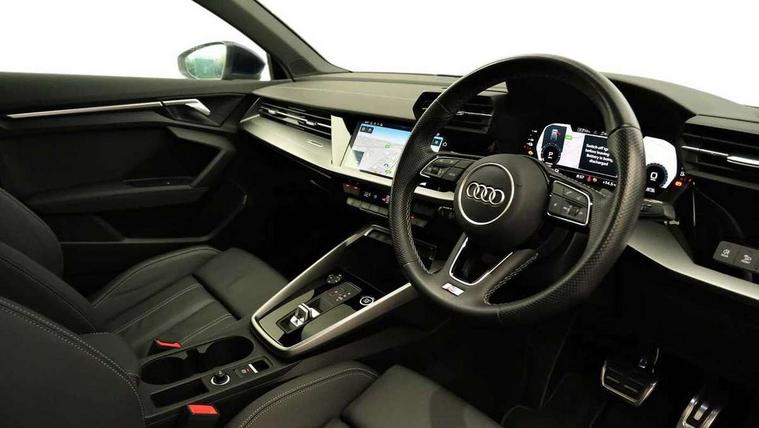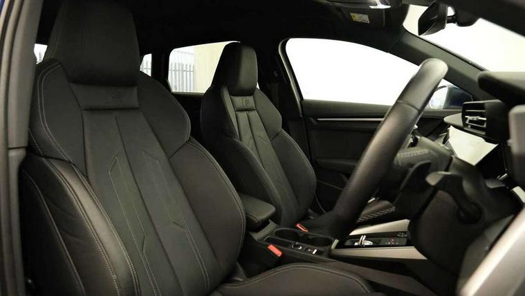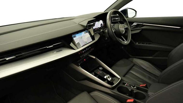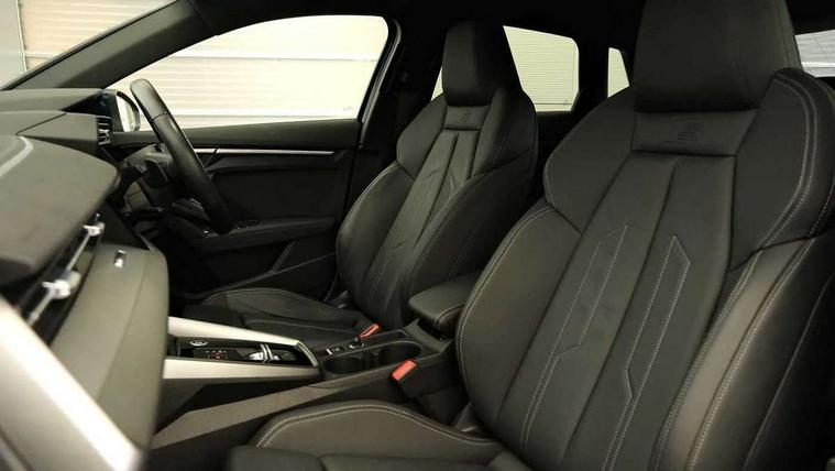 Accent surfaces in the dashboard and centre console in platinum grey silk effect paint finish, Dark spectrum aluminium inlays, Aluminium interior elements pack - A3 Sportback, S line styling pack - A3 Sportback, Tyre repair kit, Anti theft alarm, Anti-theft wheel bolts, Immobiliser, Manual child locks, Remote control central locking, 2xUSB-C connection with data and charging functions, 6 passive loudspeakers, DAB Digital radio, 3x3 point rear seat belts, Driver and front passenger airbag with passenger airbag deactivation, Electronic Stabilisation Control (ESC) including ABS, ASR and EDL, First aid kit with warning triangle and 2 safety vests, Front side airbags with head airbags and interaction airbag, Pre-sense front with pedestrian and cyclist detection, Seatbelt monitoring, Tyre pressure loss indicator, 3rd brake light, Acoustic glass windscreen, Aluminium window trim, Auto dimming frameless rear view mirror, Electrically adjustable/heated/folding/dimming door mirrors with kerb view includes integrated LED indications + kerb view function for passenger side, Front electric windows, Illuminated aluminium inserts front door sills with S logo, LED daytime running lights, LED headlights with LED rear lights and dynamic rear indicators, Light and rain sensors, Privacy glass - dark tinted rear window, rear door and side windows, Rear electric windows, Rear side air outlets in grained matt black, Rear side wing doors, Rear wiper, S line bumpers, S roof spoiler, 12V socket and storage compartment in front centre console, 3 seat bench in 2nd row, 40/20/40 split folding rear seat bench with cupholder, Black cloth headlining, Dual zone electronic climate control, Front and rear centre armrest in leather, Front and rear headrests, Front/rear floor mats, Height and reach adjustable steering wheel, Illuminated vanity mirror, Interior lighting - glove compartment light and right hand side, Luggage compartment floor covering, Manual boot compartment lid, Manually adjustable front seats, Seat side bolsters, Single front passenger seat, Stainless steel pedals and front footrest in black, Tool kit, Twin leather upholstery with front sports seats S embossed logo, Audi connect emergency call and service, Audi drive select (Auto, Comfort, Dynamic, Efficiency and Individual), Audi smartphone interface, Audi Virtual Cockpit - 10.25" digital and colour instrument cluster, Automatic start/stop system with recuperation, Bluetooth interface, Collision avoidance assistant, Electromechanical power speed sensitive steering, Lane departure warning system, MMI Navigation Plus with high resolution 10.1" colour touch screen display, Service indicator, Trip computer, Voice control system with natural language interaction, 3 pin 10 amp domestic charging cable, 3.6 kw On-board charger, Standard suspension, Type 2 mode 3 32 amp charging cable, Type 2 socket for AC charging,
