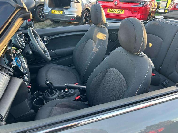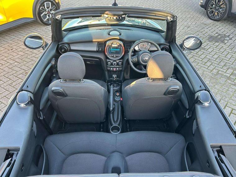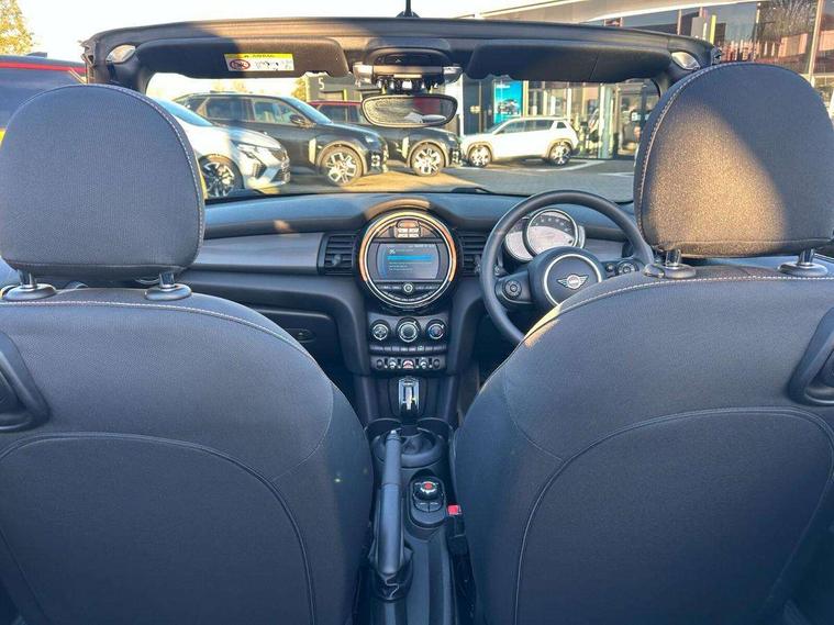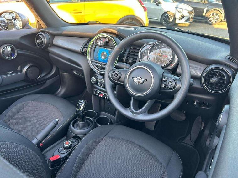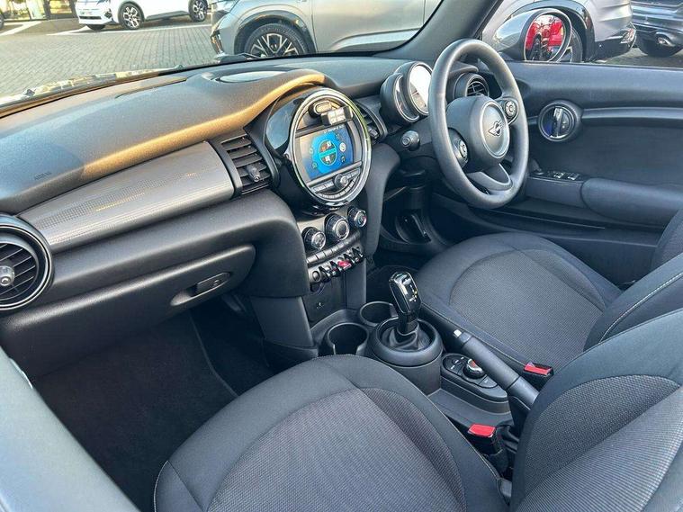 Alarm system with tilt sensor, monitoring doors, bonnet interior and tailgate, Electronic vehicle immobiliser, Keyless Go, 6.5" touchscreen with LED ring, FM tuner and DAB digital radio, 3 point seatbelts on all four seats, 6 Airbags - front, side and seat belt tensioners, Active rollover protection, Anti-lock braking system (ABS), DSC - Dynamic Stability Control, Front and rear disc brakes, Hill start assist, Single tone fanfare horn, Tyre pressure monitoring system, Automatic headlight activation switch, Body colour fuel filler cap, Chrome border high gloss black slats radiator grille, Dynamic brake lights, Electric windows, Heated rear window, Heated windscreen washer jets, LED headlight with closed ring and daytime driving lights, Left exhaust tailpipe with chrome finisher, Metal door sill strips with MINI imprint, Model logo Cooper on right of tailgate, Rain sensor window wipers, Rear fog lights, Rear LED lights with union jack design, Side scuttle panel with integrated indicator, Sun/heat protection glass, White indicator lenses, 12V Accessory socket in centre console, 4 lashing eyes in luggage compartment, 50/50 split folding rear seats, Chrome interior highlights, Colour line - Carbon black, Cupholders, Easy Load boot handles, Front and rear isofix with front passenger airbag deactivation, Glove compartment, Height and length steering column adjustment, Interior lighting with 12 basic colours selectable via toggle switch in roof, Leather gearshift lever and handbrake gaiters, LED reading lights, vanity mirror lights, front foot well light and spotlight on front seats, Manual air conditioning, Mechanical seat adjustment, driver seat height adjust, forward/back and front seats backrest, Mini logo projection on floor from drivers exterior mirror, Multifunction steering wheel, Storage compartments in doors, Sunvisors with vanity mirrors, Tool kit, Automatic start/stop function with brake energy recuperation, Compatible mobile phone bluetooth with audio streaming, Electro-mechanical speed dependant steering assistance, Instrument cluster, Mini E-call, MINI TeleServices, On board computer, Rear park distance control, Service interval indicator, Double Vanos system, Fully variable valve control, High precision injection, Steptronic transmission with double clutch,