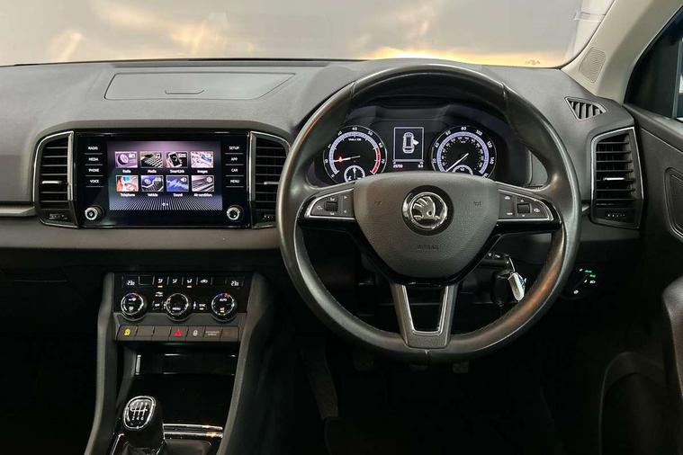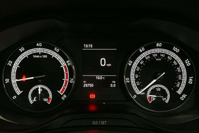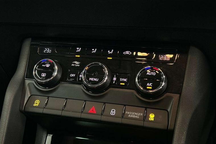 Chrome framed air vents, Storage on wheel cover, Alarm with interior monitoring, back up horn and tilt sensor with safe function, Electronic engine immobiliser, Remote central locking with 2 remote folding keys, DAB radio with Bluetooth, SD card slot, USB connection, Airbags - Front side, head, knee and curtain, Automatic door unlocking in case of crash, Automatic fuel cut off in case of crash, Driver airbag, Electronic parking brake with auto hold function, Emergency rear braking signal, ESC including ABS, MSR, ASR, EDS, HBA, DSR, RBS, MKB and traction control, Front assist radar scanning of the space in front of the car with automatic braking, Hill hold control, Passenger airbag with switch-off function, Pedestrian monitor, Seatbelt reminder signalisation and pretensioner for all seats, Three point seatbelts rear, Two tone horn, Tyre pressure display, Tyre pressure monitor, Acoustic glass, Aero front windscreen wipers with intermittent function, Automatic headlight control system, Body colour door mirrors and handles, Body coloured bumpers, Electrically adjustable heated folding and auto dimming door mirrors with boarding spots, Heated rear windscreen, LED rear lights with high functionality, Light assistant (coming/leaving home/tunnel light), Privacy glass, Safety reflectors on front doors, Third brake light, 1.5 litre bottle holders in driver and front passenger door panels, 12V socket in boot, 12v socket in front centre armrest with storage compartment and rear air vents, 2 Folding hooks and nets in boot, 2 Front readings lights for driver and passenger, 3 rear height adjustable headrests, 4 foldable roof handles with rear coat hooks, 4 lashing points on luggage floor, Backrest release, Cargo elements in boot, Chrome inner door handles, Driver and passenger seats height adjust, Dual zone climate control, Folding tables on the front seat backrests, Front seat and rear pockets, Height adjustable front three point seats belts with tensioners, Height/reach adjust steering wheel, Ice scraper, Illuminated and cooled glovebox, Illuminated luggage compartment, Isofix child seat preparation outer rear, Manual lumbar support for front seats, Net programme in boot, Pen holder, Pollen filter, Rear boot cover, Rear reading lights, Rear seats fixed folding and divided 60:40, Removable LED torch in the boot, Safety vest holder, Storage box in upper central dashboard closed, Storage net on centre console passenger side, Sunglasses storage compartment, Sunvisors with illuminated vanity mirrors, Umbrella under passenger seat, Driver alert system, Driver fatigue sensor, Driver profile selection, Electro-mechanical PAS, Outside temperature gauge, Service interval indicator, Start/stop system with regenerative braking,