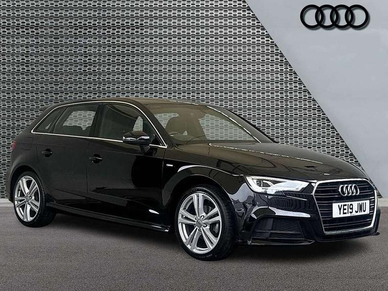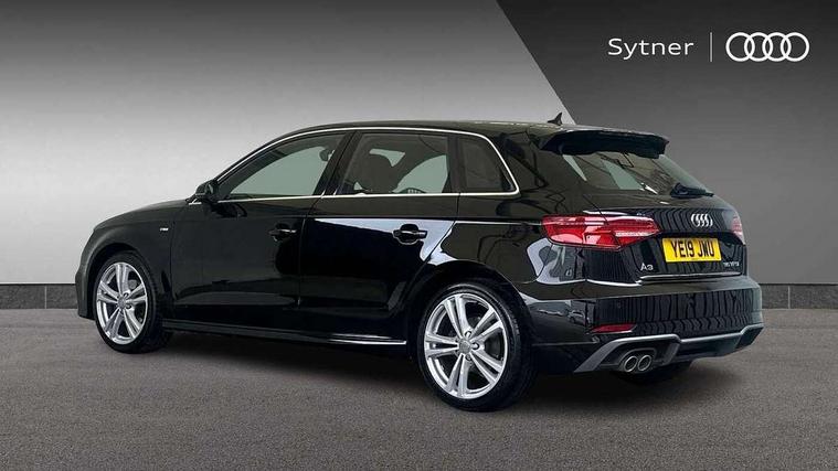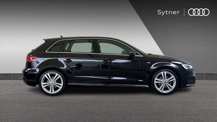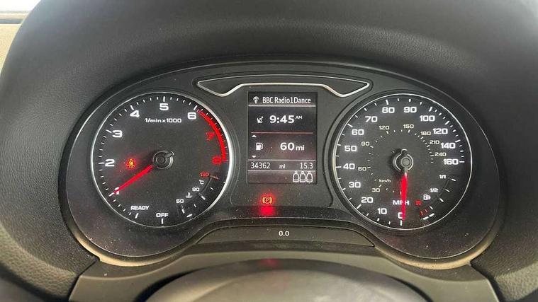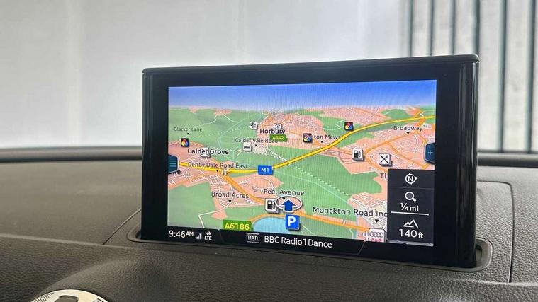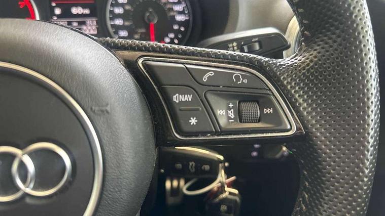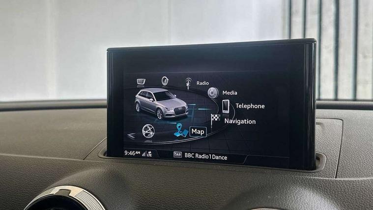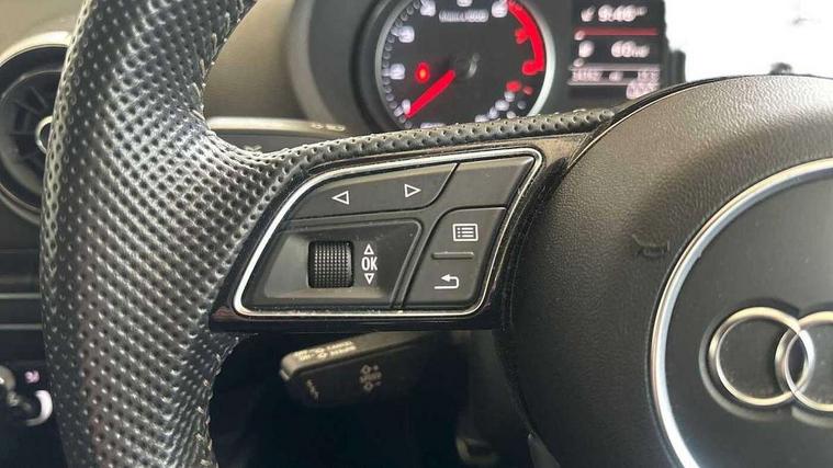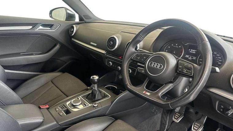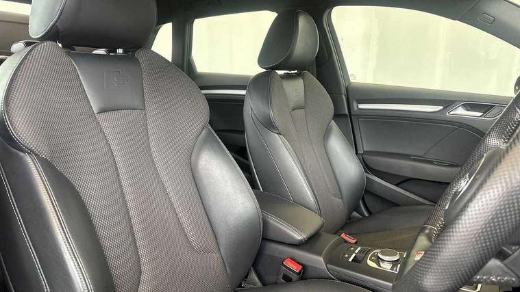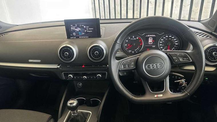 Audi connect, Audi drive select, Audi smartphone interface, Automatic start/stop system, Colour driver's information system display, Electro - mechanical power assisted steering, Mobile telephone preparation - bluetooth interface, SD card based satellite navigation system, Service interval indicator, Speed limit display, Voice control system, Voice recognition for navigation system, 2 USB interfaces and Aux-In jack, Audi music interface, CD player, DAB Digital radio, MMI radio plus with 7" colour MMI screen and MMI controller, Aluminium window trim, Auto dimming rear view mirror with light and rain sensors, Body colour door mirrors, Chrome exhaust tailpipes, Electric front windows, Electric rear windows, Electrically adjustable and heated door mirrors with integrated LED side indicators, Heated windscreen washer jets, LED daytime running lights, Matt black radiator grille, Rear wiper, S line badges on front wings, S Line body styling with front & rear bumpers and side skirts, radiator grille and rear diffuser insert, roof spoiler, Sport specific side air inlet grille and diffuser insert, 3 adjustable rear headrests, 3 spoke flat bottomed multi-function leather sport steering wheel, 4 lashing points to secure luggage, Adjustable front centre armrest, Black cloth headlining, Dual zone electronic climate control, Front and rear interior lights with delay, Front/rear floor mats, Glovebox light, Height and reach adjustable steering wheel, Illuminated door sill trims with S logo, Isofix child seat preparation for front passenger/outer rear seats inc passenger airbag deactivation, Stainless steel pedals, Storage compartments in doors side trims, centre console and under front drivers seat, Tool kit, LED interior light pack - A3/RS3, Non smoking pack - A3, Storage and luggage pack - A3/RS3, 3 point seatbelts on all seats, ABS/EBD, Active bonnet, Active front headrests, Airbags - front driver/passenger, front & rear side, curtain, drivers knee, ASR, EDL, Electromechanical parking brake, ESC - Electronic Stability Control + traction control, Front passenger airbag deactivation, Hill hold assist, Manual rear child locks, Multi-Collision braking, Seatbelt warning, Tyre pressure warning, Warning triangle and first aid kit, Anti theft alarm, Anti-theft wheel bolts, Remote control central locking, Thatcham category 1 alarm + immobiliser, Aluminium air vent surrounds, Aluminium trim elements, Matt brushed aluminium inlays, Tyre repair kit,