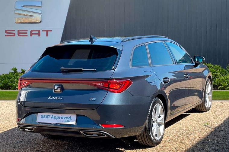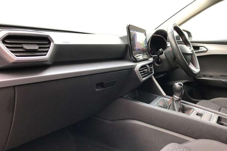 Chrome interior detailing, Media system plus with navigation - Leon, 17" Dynamic Bi-spoke alloy wheels with 91W tyres, Anti theft alarm system with interior monitoring in cab, backup horn and towing protection, KESSY Go (Keyless start), Locking wheel bolts, Wireless phone charging, 7 speakers, Auxiliary input socket, 3 point seatbelts on all rear seats, ABS, Brake control system - ESC and brake booster, Child proof door locks, Driver and front passenger airbags with front passenger airbag de-activation, front side and curtain airbags, Electronic parking brake, Extended safety system - seat belt tensioner, window closure and hazard lights, Hill hold control, Rear disc brakes, Seat belt reminder for front and rear seats, Tiredness recognition system, driver alert system, Tyre pressure monitoring system, Auto dimming rear view mirror, Body colour door handles, Body coloured bumpers, Cosmo grey exterior mirrors with integrated LED indicators, Dark tinted rear windows, Electric front/rear windows, Electrically adjustable, heated and folding door mirrors, FR sports bumper, Illuminated front door sill, LED front fog lamps with cornering function, LED headlights and tail lights with dynamic turn signals, welcome light silhouette from exterior mirrors and dynamic headlight range control, LED rear fog lamp, Matt black roof rails, Rain sensing wipers, Rear wash/wipe, Separate daytime running light with automatic headlight control and coming home feature, 12V Accessory socket in the load area, 12v power point in centre console, 60/40 split rear bench seat with armrest, Ambient lighting with glovebox, footwell and single monocolour, Cloth upholstery, Driver/passenger manual seat height adjustment, Dust/pollen filter, Flat bottomed perforated leather steering wheel with red stitching and FR logo and leather gear stick, Front and rear height adjustable headrests, Front and rear reading lights X 4, Front centre armrest, Front seatback storage pockets, Height/reach adjust steering wheel, ISOFIX points in outer rear seats with top tether anchorage points, Luggage tie-down hooks, Lumbar adjustment for front seats, Sliding boot cover, Sunvisors with covered illuminated mirror, Three zone climate control, Tool kit, Digital cockpit, Four x USB Type C ports, Front assist with forward collision warning braking reaction to vehicles, pedestrians and cyclists, Full link smartphone integration with Mirror Link, wireless Apple CarPlay and wired Google Android Auto, Lane assist, Lockable tailgate, Park assist (inc front/rear parking sensors), Power assisted speed sensitive electro-mechanical steering, RPM, trip computer, outside temp gauge, instrument light brightness, low fuel warning light, lights on reminder, gearshift indicator, SEAT drive profile with 4 modes (Eco/Normal/Sport/Individual), throttle response, Service interval indicator, Start/stop system with regenerative braking, Sports suspension, XDS electronic differential lock and dynamic traction support,