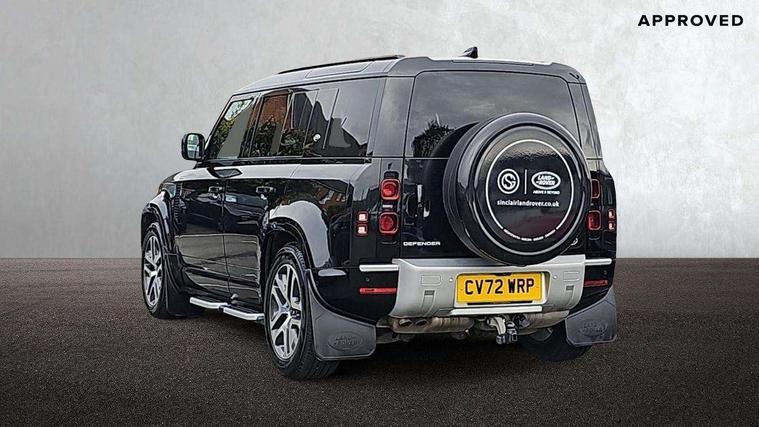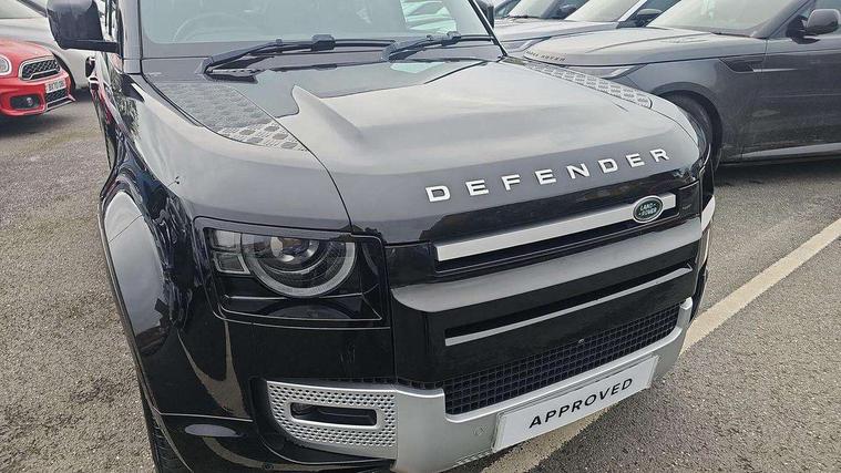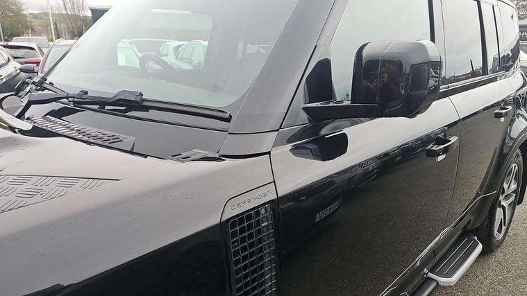 Online pack with data plan - Defender, XS Edition exterior pack - Defender, Alarm, Immobiliser, Intrusion sensor, Keyless entry, Locking wheel nuts, DAB Radio (Digital Audio Broadcasting), Meridian 400w sound audio system with 11 speakers and subwoofer, Pivi pro connected, 5 x 3 point seatbelts, ABS, Brake hold function, Cornering brake control (CBC), Cross car beam in light grey powder coat brushed finish, Customer configurable autolock, DSC - Dynamic Stability Control, EBD - Electronic brakeforce distribution, Electric parking brake (EPB), Emergency brake assist, Emergency braking, ESP + traction control, Front airbags with passenger seat occupant detector, HDC - Hill descent control, Hill launch assist, Low traction launch, Power operated child locks, Remote for (e-Call, Optimised assistance call, InControl app, Climate, beep and flash and door), RSC - Roll stability control, Seat belt reminder, TPMS (Tyre pressure monitoring system), Automatic headlight levelling, Automatic headlights, Body coloured roof, Centre high mounted stop light, ClearSight interior rear view mirror, Electric heated/power fold door mirrors with approach lights and auto dimming driver side, Electric windows with one touch open/close and anti-trap, Follow me home lighting, Front fog lights, Heated rear window with timer, Heated windscreen, Illuminated metal tread plates with brand name script, LED tail lights, Matrix LED headlights with signature DRL, Privacy glass, Puddle lights, Rain sensing windscreen wipers, Rear fog lights, Rear side wing doors, Rear wiper, Side hinged tailgate, Signature graphic (with interior storage), Sliding panoramic roof, Trailer stability assist, 12 way heated and cooled electric memory front seats with 2 way manual headrests, 12V power socket in loadspace, 3 seat bench in 2nd row, 40:20:40 folding rear seats with centre armrest, Alpine lights, Durable rubber cabin flooring, Durable rubber loadspace flooring, Electric cabin pre conditioning, Electric reach + rake adjustable steering column, Footwell lights, Front centre console refrigerator compartment, Front passenger isofix child seat attachment, Grained Leather upholstery, Heated steering wheel, Leather gearshift, Light oyster morzine headlining, Loadspace cover, Loadspace Hook, Multifunction steering wheel, Overhead stowage for sunglasses, Premium cabin lighting, Rear headrests, Rear ISOFIX, Rear reading lights, Single front passenger seat, Standard interior, Standard leather steering wheel, Standard seat configuration, Storage glovebox, Sunvisors with illuminated vanity mirrors, Twin front cupholders with cover, 360 degree parking aid, 3D Surround Camera with 360 View, 180 Rear View, Front Traffic Detection, Forward Vehicle Guidance, Tow Hitch Assist and clear sight Ground View, Android Auto, Apple CarPlay, Assisted tailgate with soft close, Blind spot assist, Bluetooth system, Brake pad wear indicator, Clear exit monitor, Connected navigation pro, Cruise control + speed limiter, Driver condition monitor, Electric power assisted steering (EPAS), Lane keep assist, Push button start, Rear traffic monitor, Traffic sign recognition with adaptive speed limiter, Trip computer, Wade Sensing, Wireless device charging with phone signal booster, 8 speed automatic transmission, Adaptive dynamics, All wheel drive system, Twin speed transfer box,