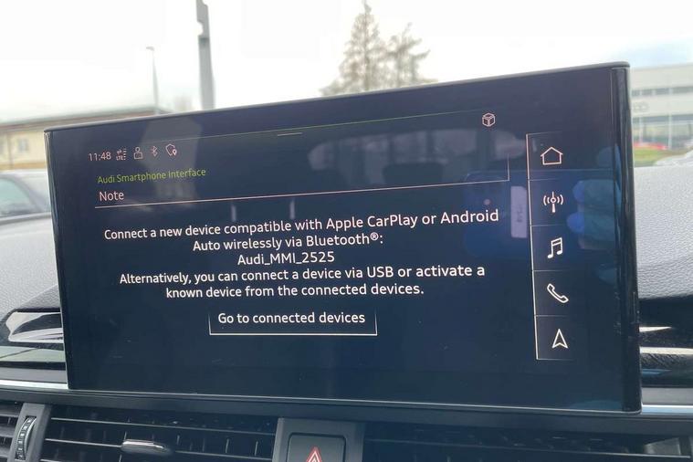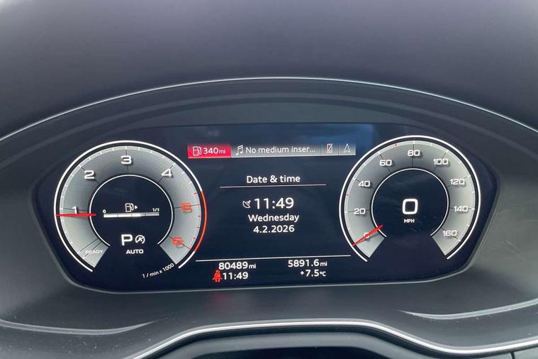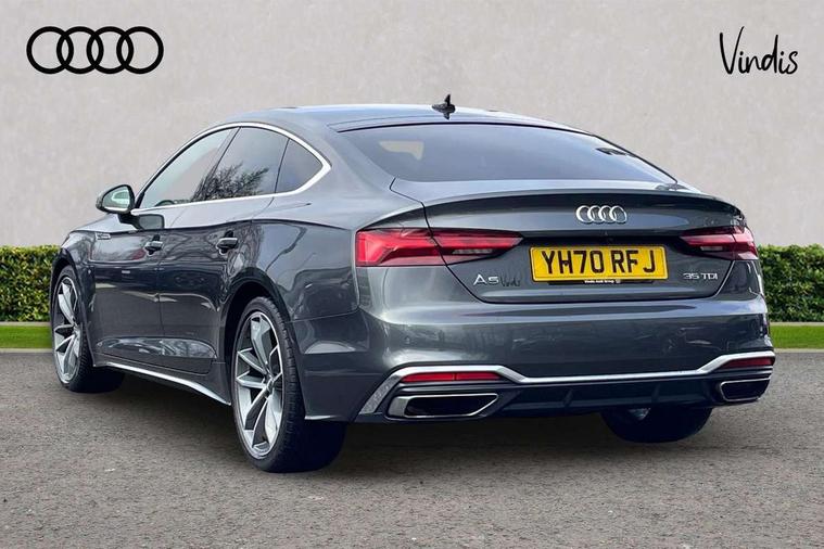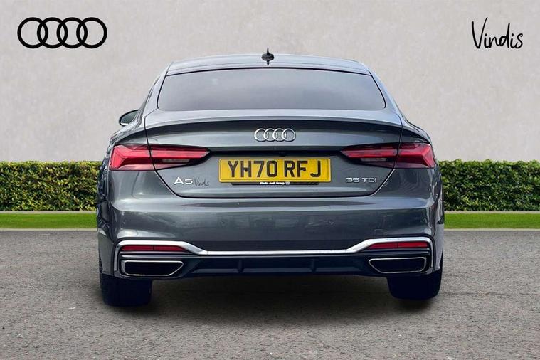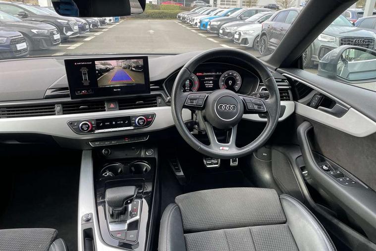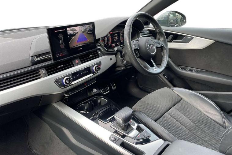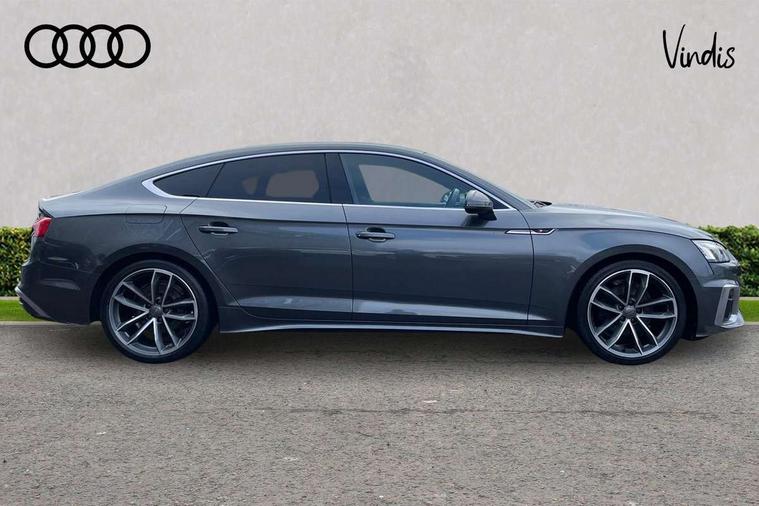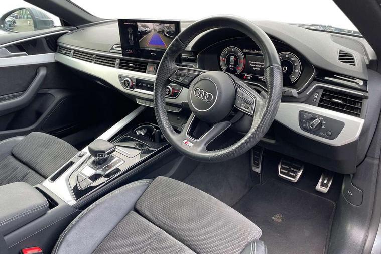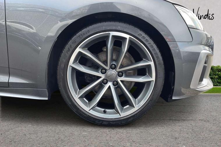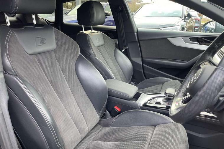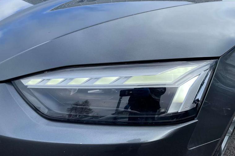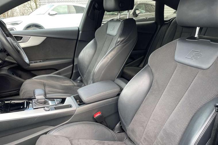 Matt brushed aluminium inlays, LED interior light pack - A5/RS5, Tyre repair kit, Anti theft alarm system, Anti theft wheel bolts, Immobiliser, Keyless Go, Remote central locking, 8 passive loudspeakers, CD player, DAB digital radio reception, Two additional USB ports for rear passenger in rear centre console, Two SDXC card slots, 3x3 point rear seatbelts, 6 airbags - Driver, front passenger, curtain and side airbags, Electromechanical parking brake, Electronic Stabilisation Control (ESC) including ABS, ASR and EDL, Front passenger airbag deactivation, Height adjustable front seatbelts, Hill hold assist, Multi collision brake assist, Pop-up bonnet for pedestrian protection, Seatbelt monitoring, Tyre pressure warning, Variable restraint system, Warning triangle and first aid kit, Audi matrix LED headlights with LED rear lights + dynamic front and rear indicators, Auto dimming rear view mirror, Body colour bumpers, Body colour door handles, Body colour front spoiler lip, Body colour side sill trim, Body coloured door mirrors, Electric adjustable heated door mirrors, Electric folding door mirrors, Electric front windows, Front fog lights, Honeycomb structure radiator grille in grained matt black, Matt aluminium silver tailpipe trim, Privacy glass, Rain and light sensors, S line badges on front wings, S line front and rear bumpers with side skirts, S Line rear diffuser in matt titanium black with trim strip in matt aluminium silver, Side air inlets in grained matt black with matt aluminium silver inlay, Towbar preparation, Windscreen with acoustic glazing, 4 way electric lumbar support for driver and front passenger, 40/20/40 split folding 3 seater rear bench seat, Adjustable steering column, Black cloth headlining, Black perforated leather gearknob, Contrast stitching on seats, steering wheel and gear lever gaiter, Deluxe 3 zone electronic climate control, Front centre armrest, Front head restraints, Front/rear floor mats, Heated front seats, Illuminated door sill trim with S logo, ISOFIX child seat mounting and top tether, Luggage compartment mat, Manual seat adjustment, Rear headrests, Stainless steel pedals, Sunvisors with vanity mirrors, Tool kit, Audi connect safety and service (e-call), Audi drive select (Auto, Comfort, Dynamic, Efficiency and Individual), Audi parking system plus with front and rear sensors, Audi phone box with wireless charging, Audi smartphone interface, Audi virtual cockpit - 12.3" full colour digital instrument cluster, vehicle/engine speed, Radio/media information+Driver assistance systems, Automatic start-stop system with coasting functionality and efficiency programme, Bluetooth interface, Electro-mechanical power steering, Email, calendar and text messages displayed via MMI, MMI nav+ with MMI touch - 10.1" high resolution MMI display, touch sensitive, 3D map, route/country info, dynamic route guide, personal route assist, Power operated tailgate, Rear view camera, Service interval indicator, Voice control system, Diesel particulate filter, Sports suspension lowered by 23mm,